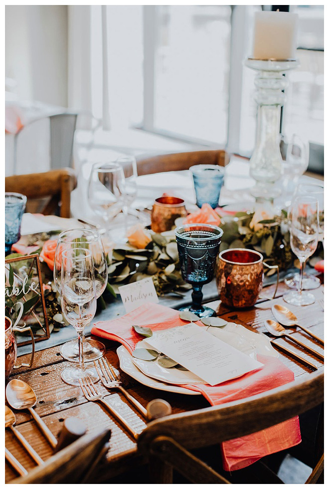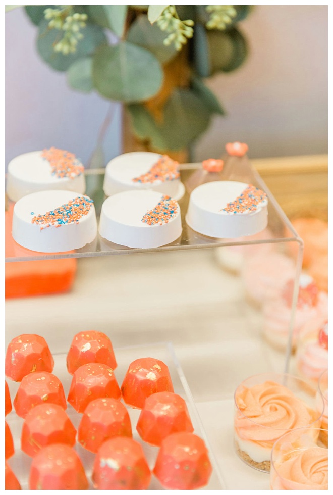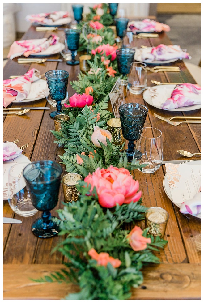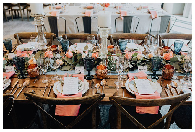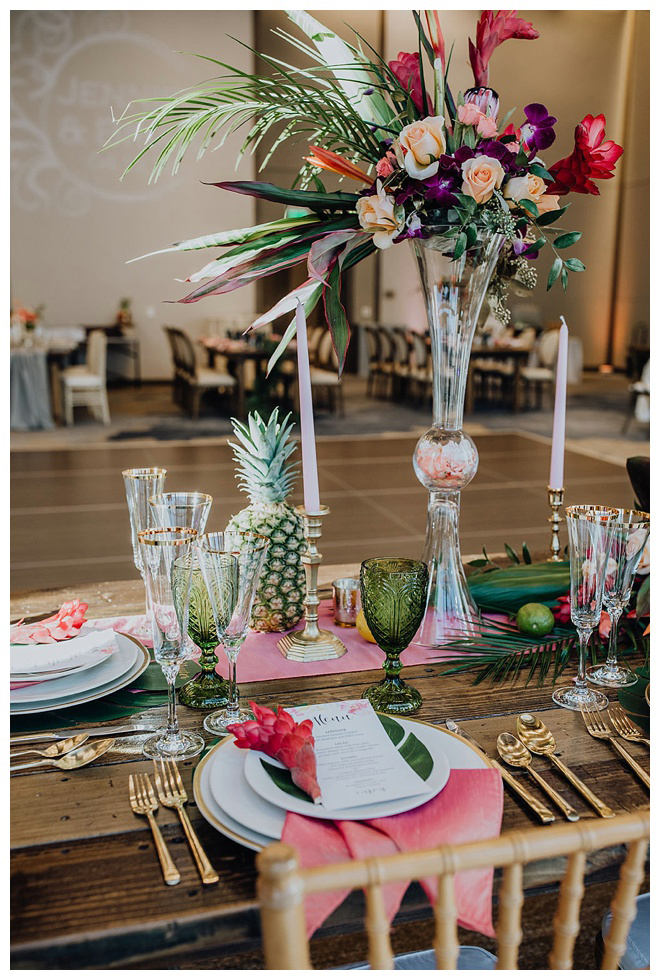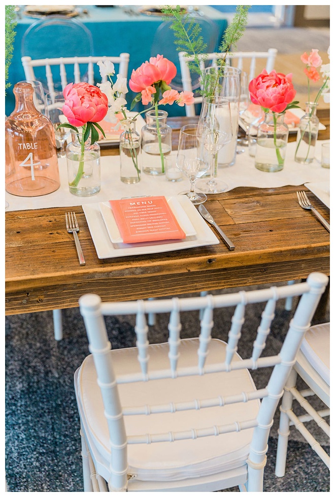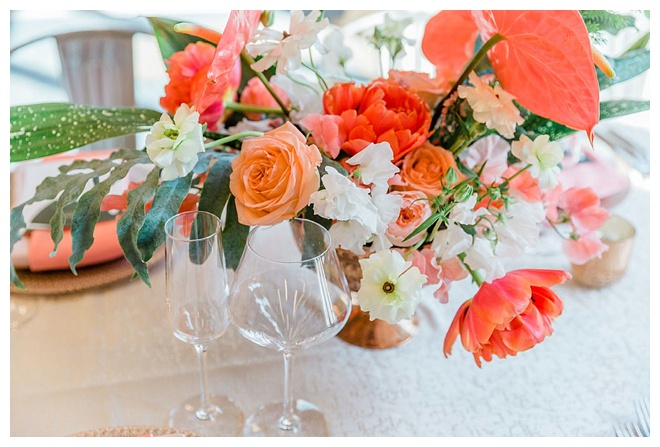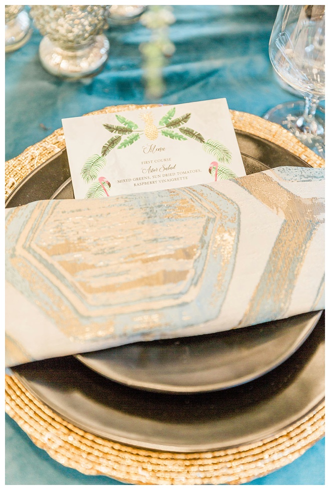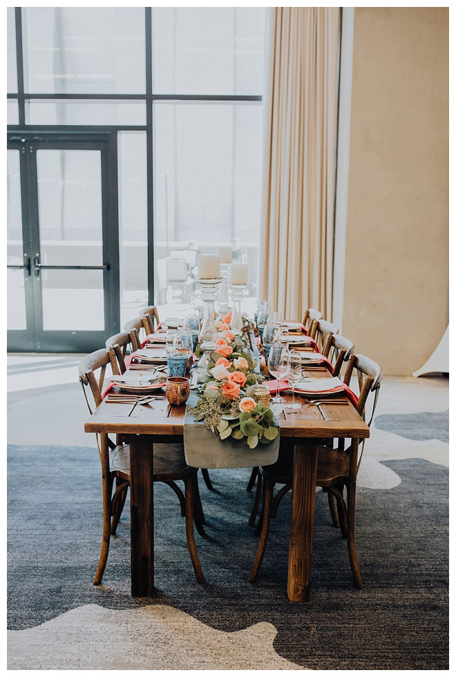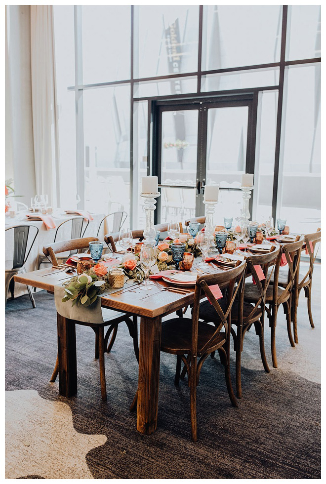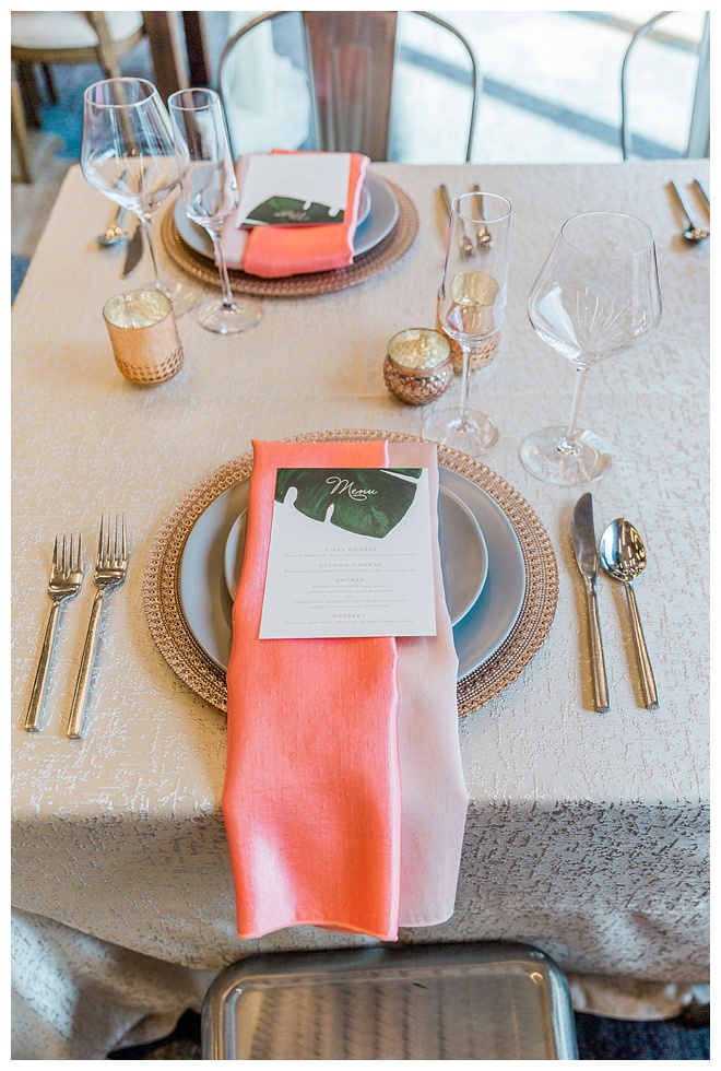 The show producer says, “We challenged our vendors to use the energizing colors found in nature to wow our guests. Think of it as a modern take on land, sky, and sea. Spoiler alert: they killed it. Between the balloon installation, rose gold dress and the blown sugar glass cakes, we couldn’t possibly pick a favorite detail. If Pantone had a Color of the Year party, this would be it.”