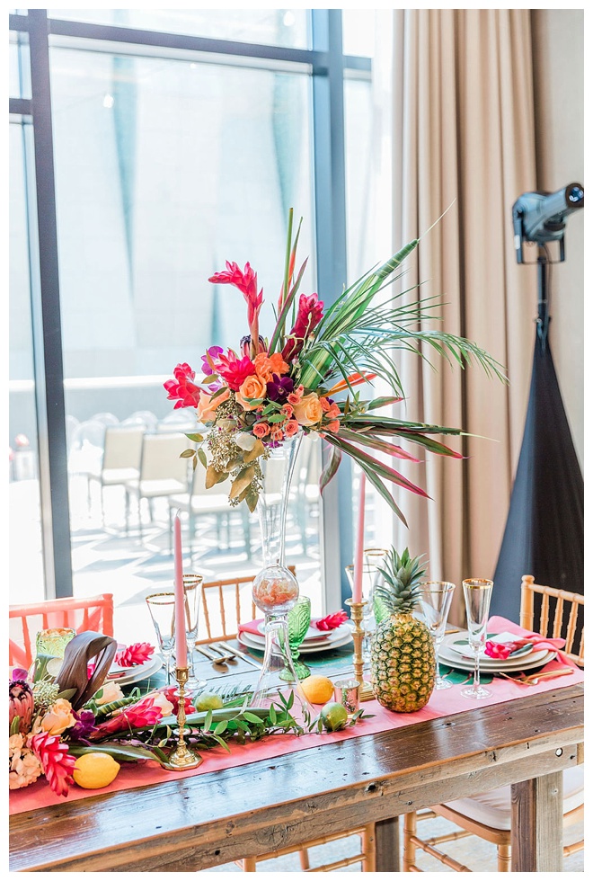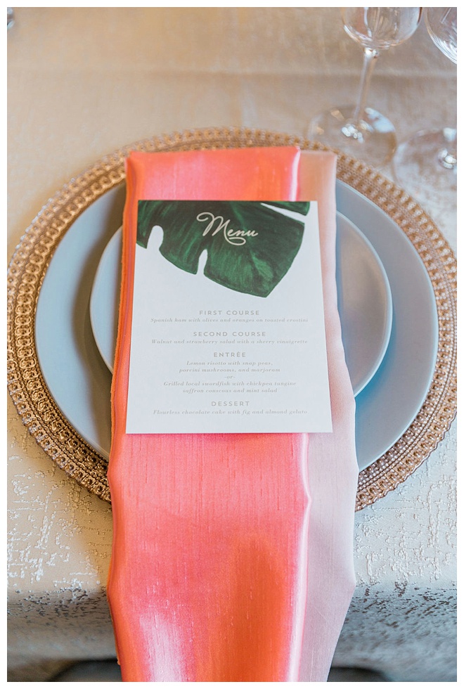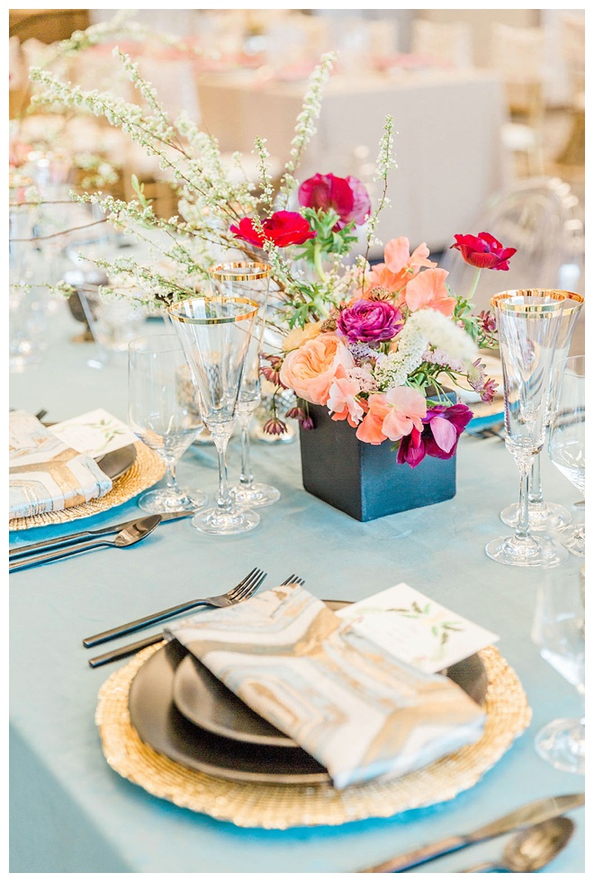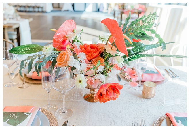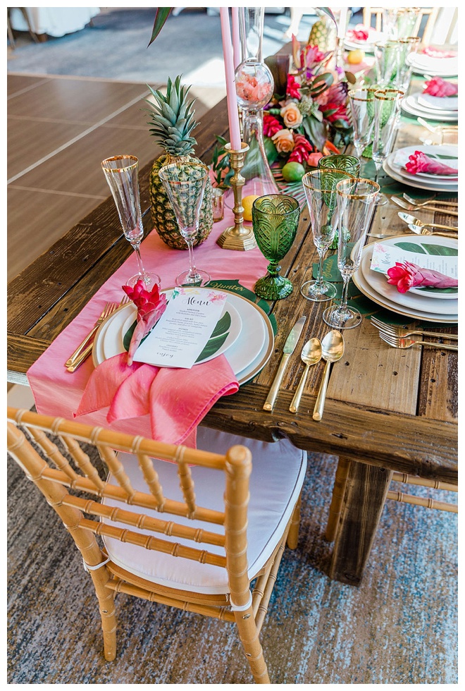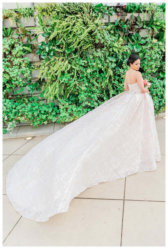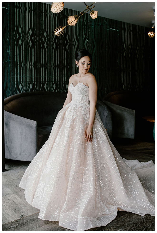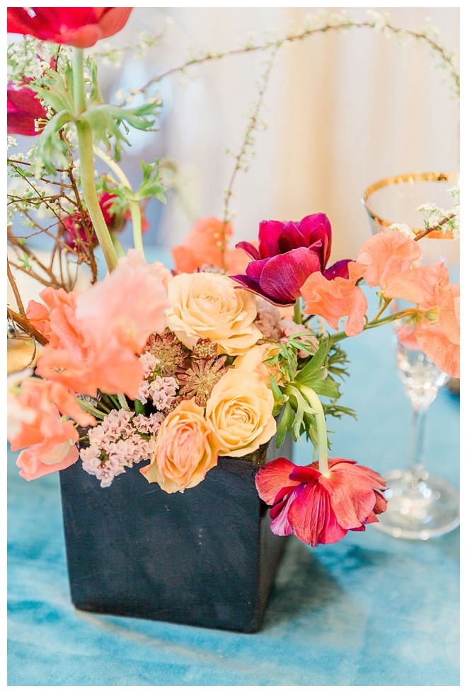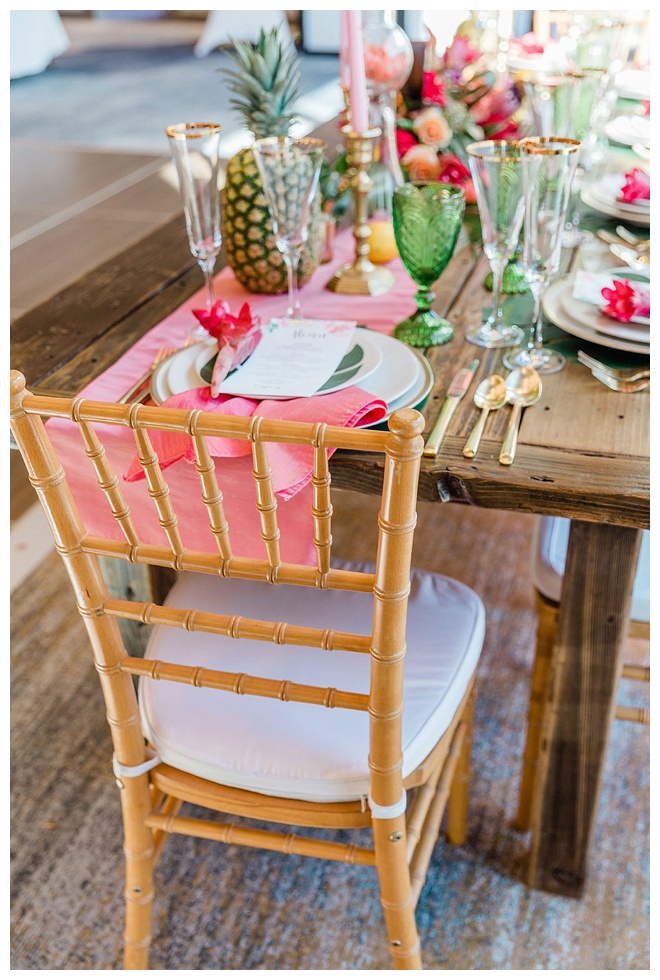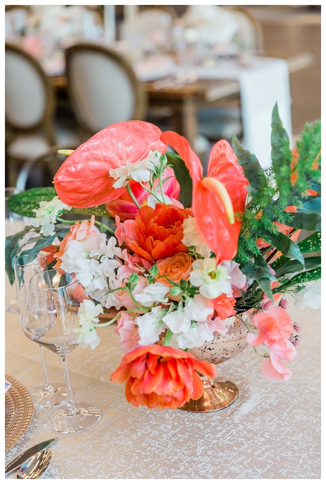 The show producer says, “We challenged our vendors to use the energizing colors found in nature to wow our guests. Think of it as a modern take on land, sky, and sea. Spoiler alert: they killed it. Between the balloon installation, rose gold dress and the blown sugar glass cakes, we couldn’t possibly pick a favorite detail. If Pantone had a Color of the Year party, this would be it.”