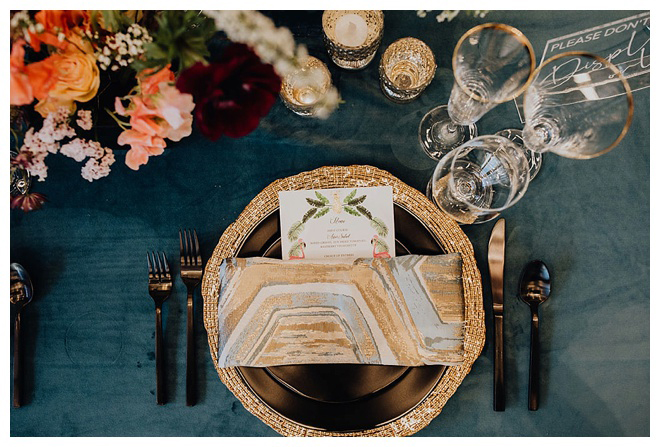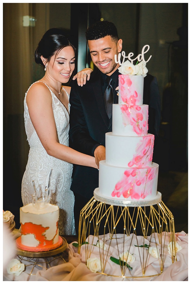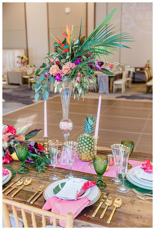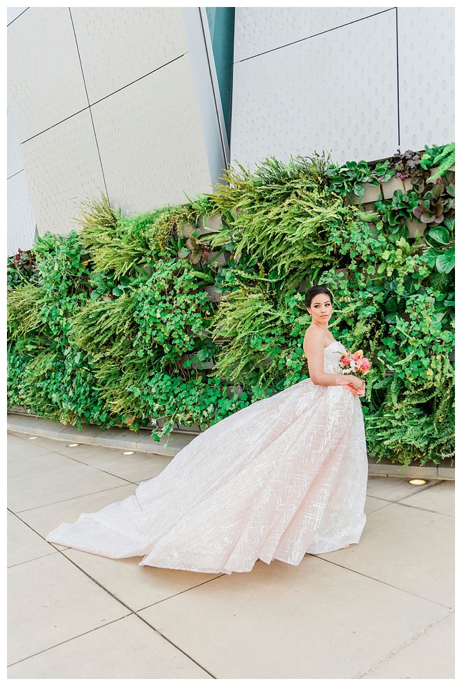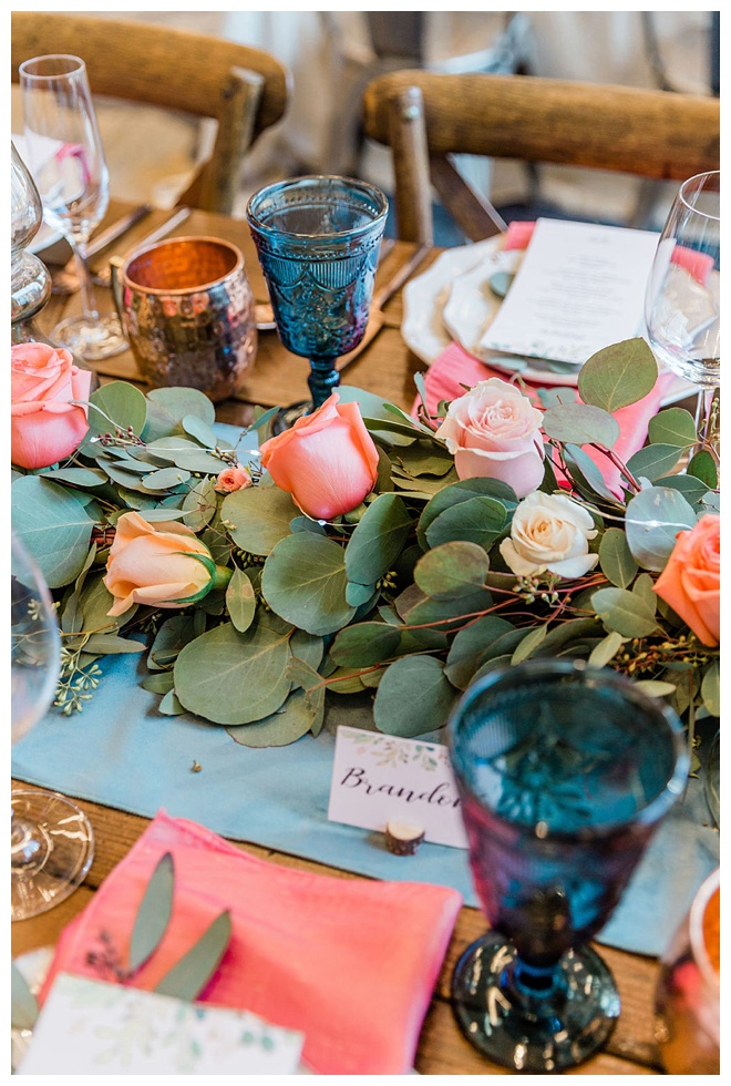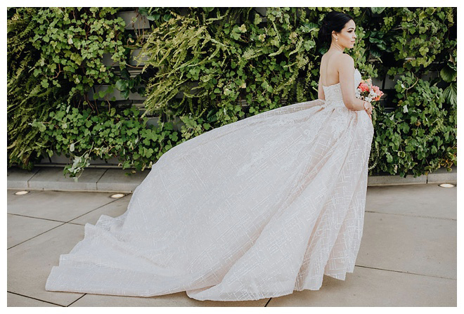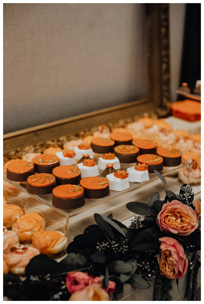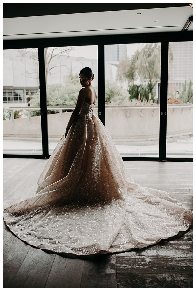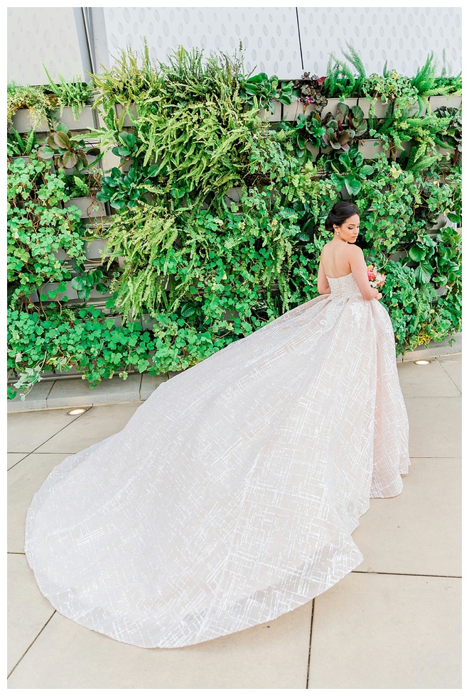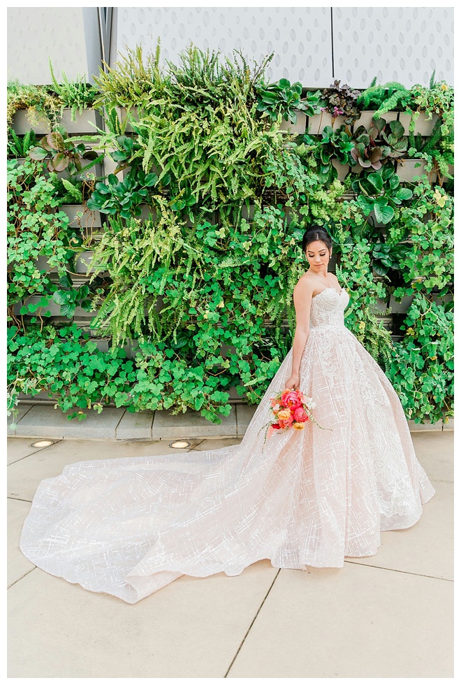 The show producer says, “We challenged our vendors to use the energizing colors found in nature to wow our guests. Think of it as a modern take on land, sky, and sea. Spoiler alert: they killed it. Between the balloon installation, rose gold dress and the blown sugar glass cakes, we couldn’t possibly pick a favorite detail. If Pantone had a Color of the Year party, this would be it.”
