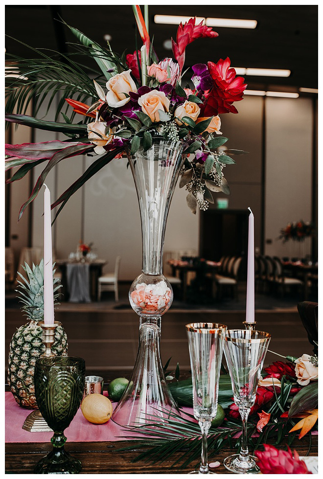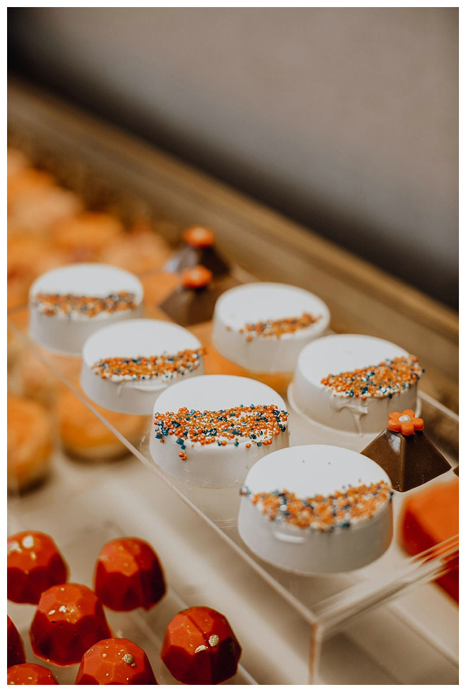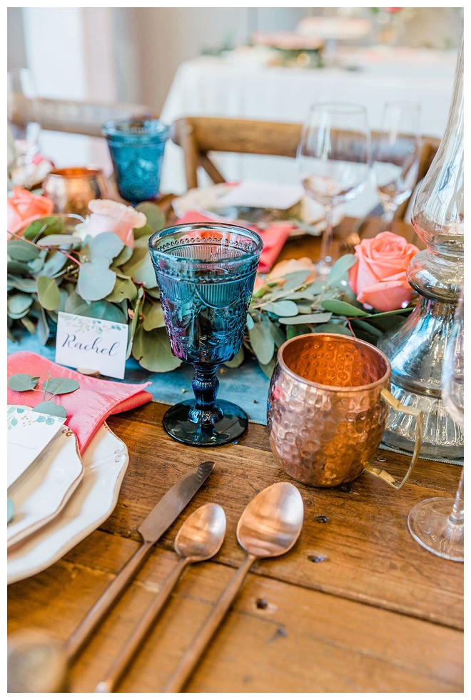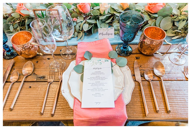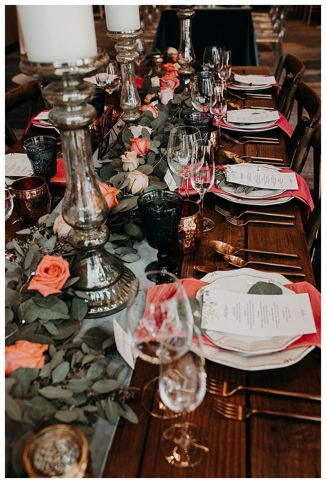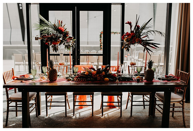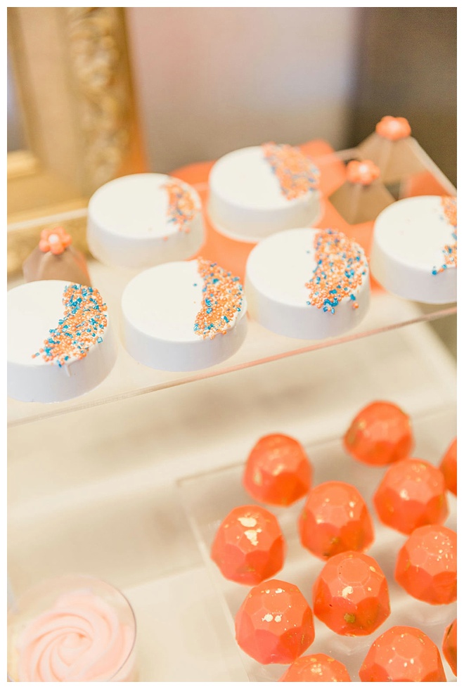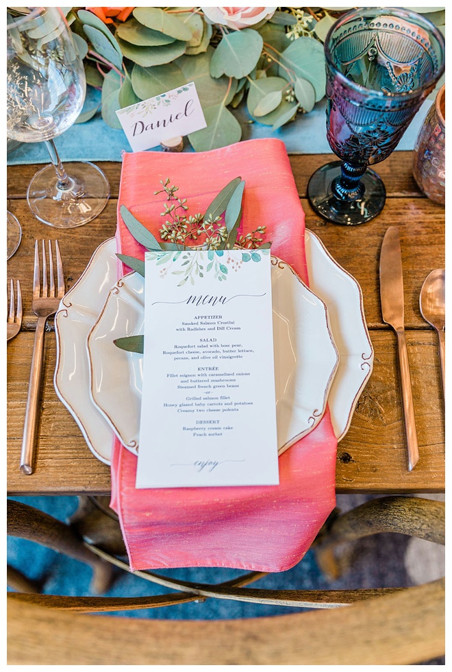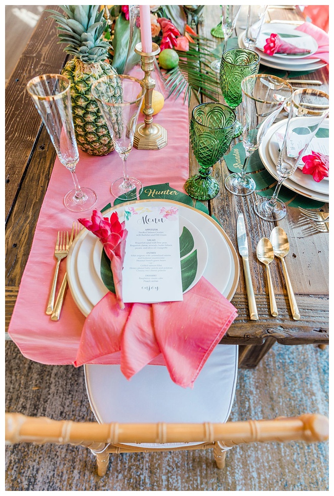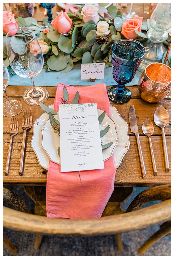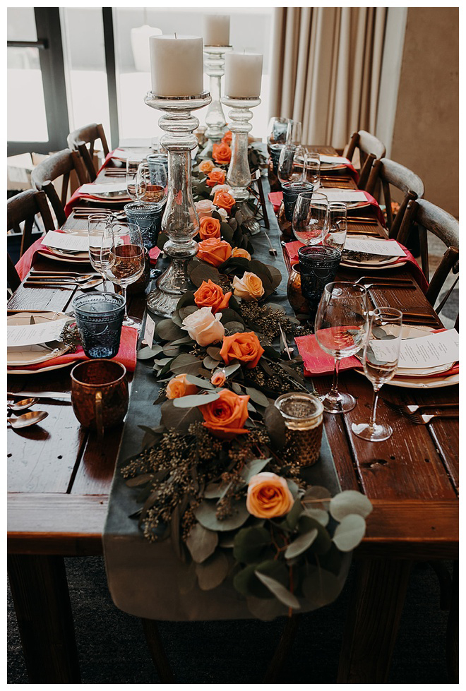 The show producer says, “We challenged our vendors to use the energizing colors found in nature to wow our guests. Think of it as a modern take on land, sky, and sea. Spoiler alert: they killed it. Between the balloon installation, rose gold dress and the blown sugar glass cakes, we couldn’t possibly pick a favorite detail. If Pantone had a Color of the Year party, this would be it.”