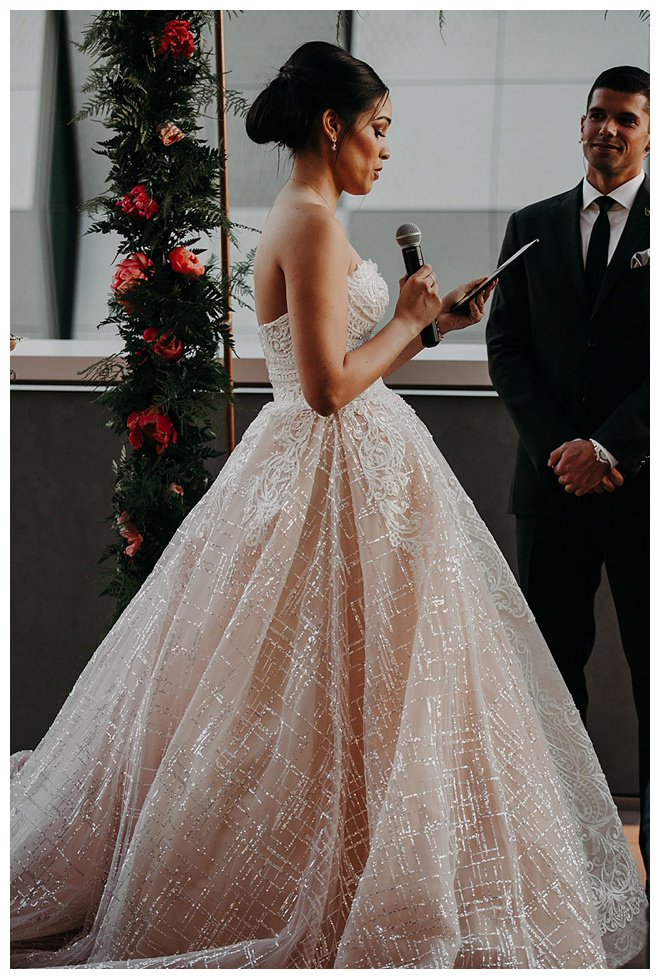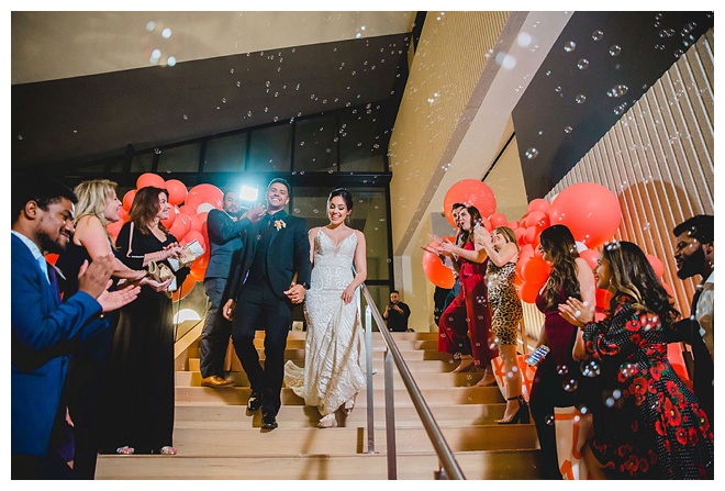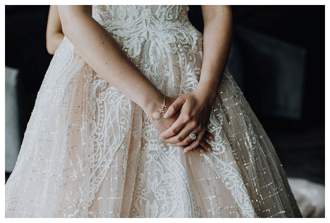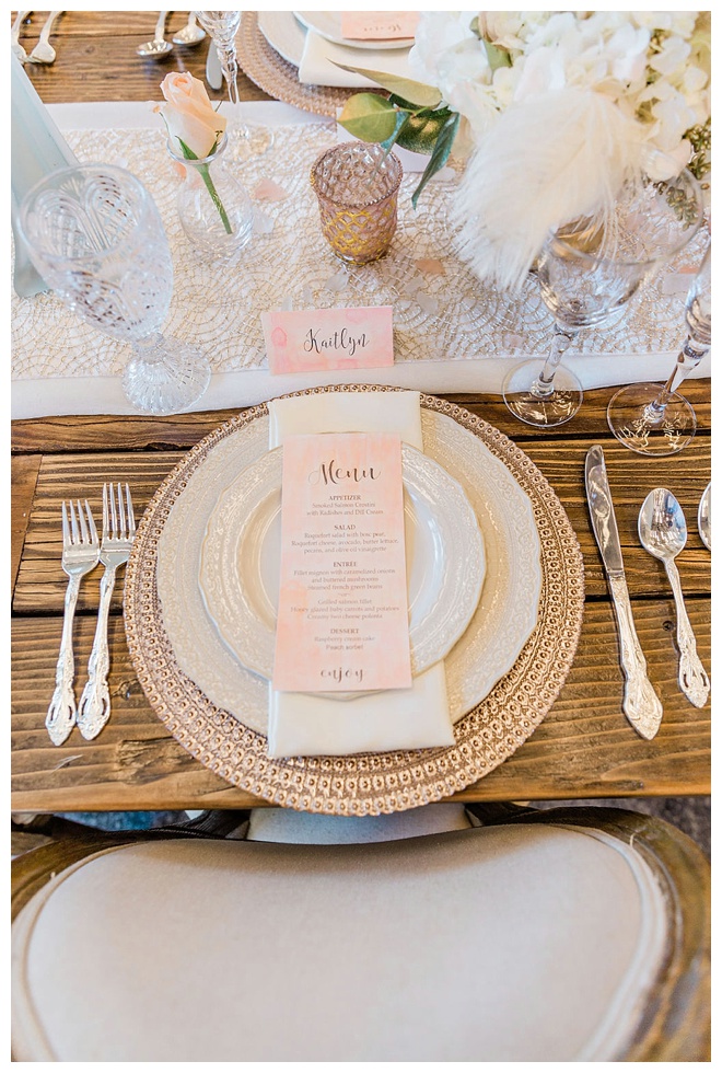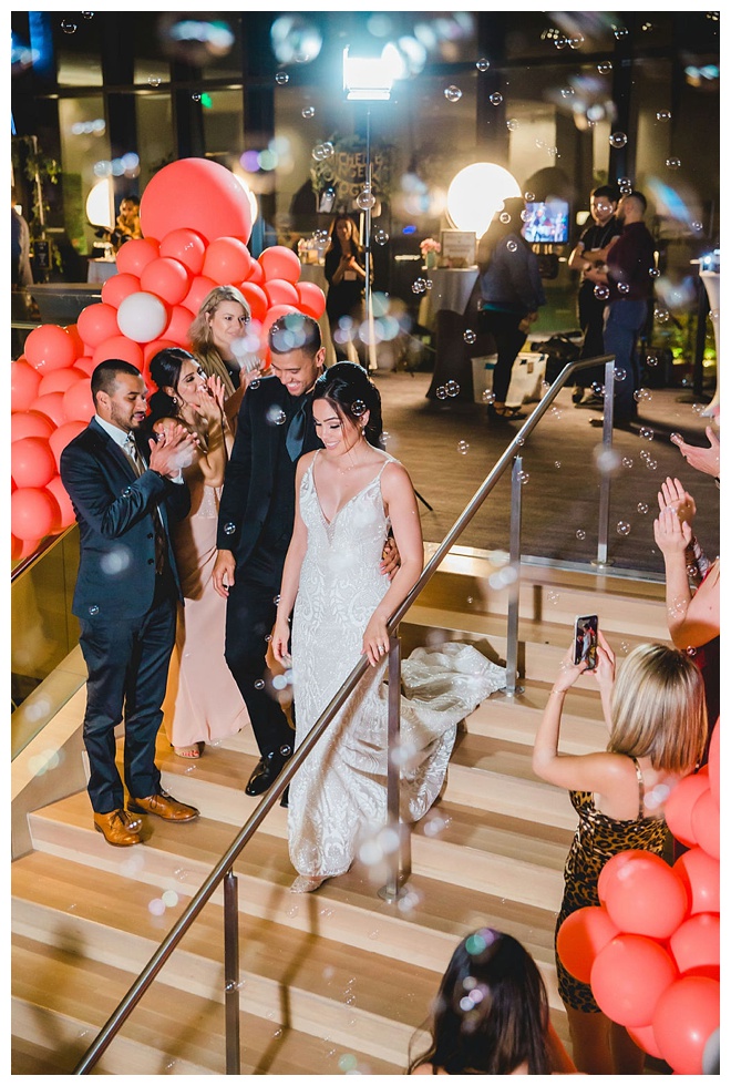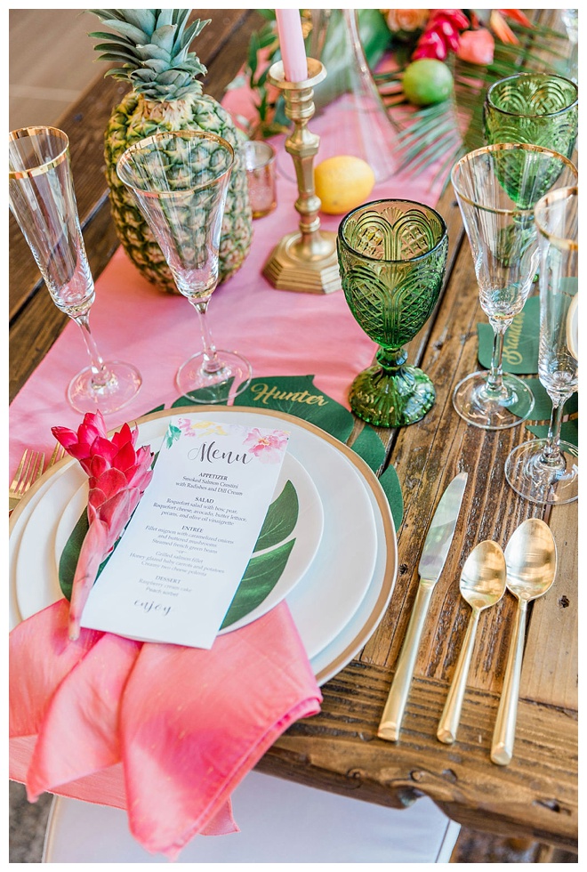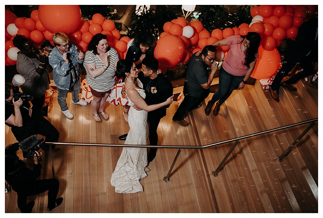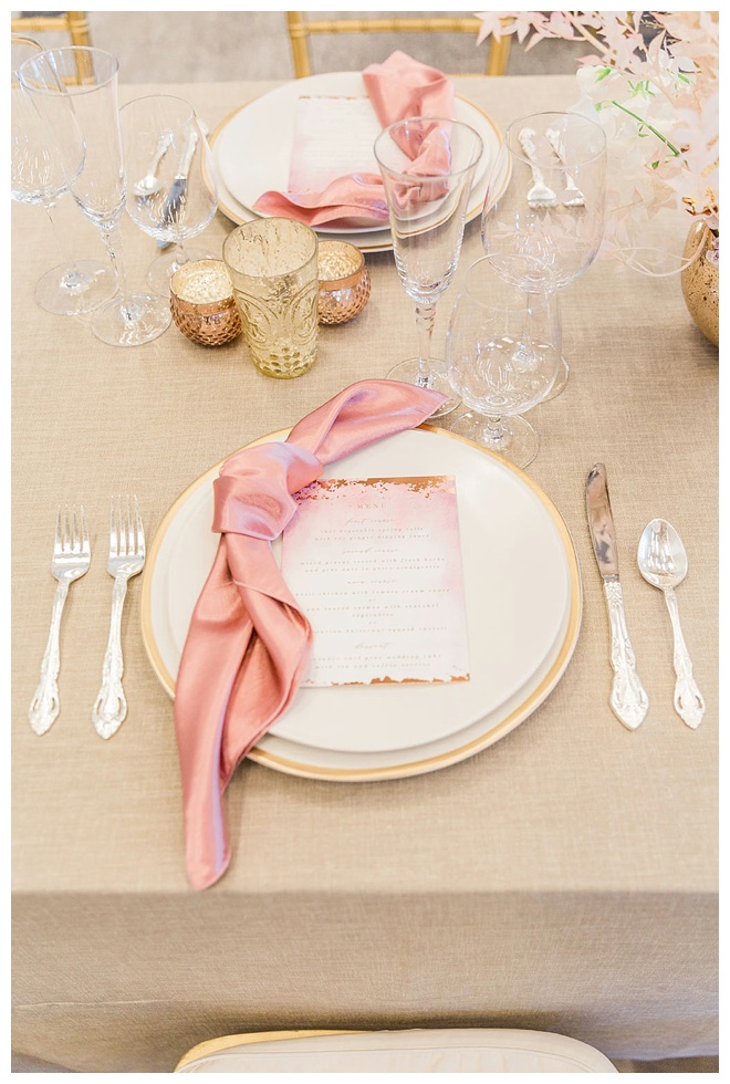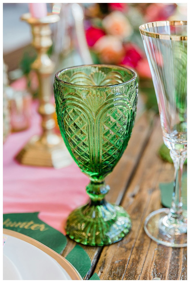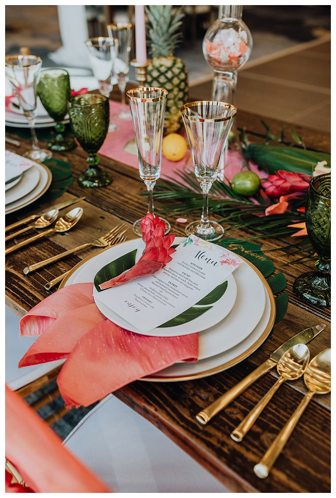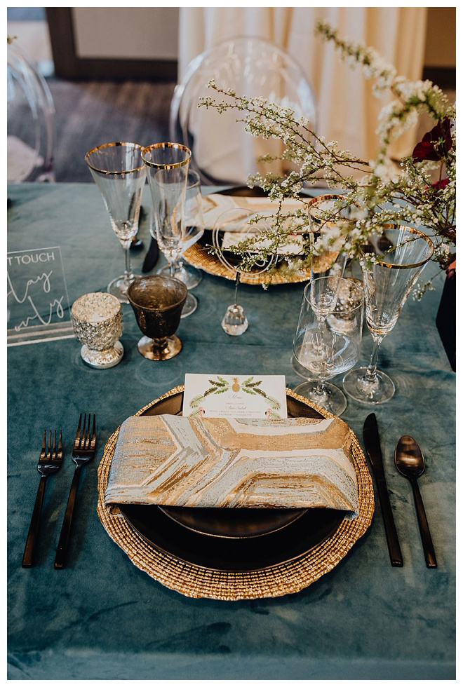 The show producer says, “We challenged our vendors to use the energizing colors found in nature to wow our guests. Think of it as a modern take on land, sky, and sea. Spoiler alert: they killed it. Between the balloon installation, rose gold dress and the blown sugar glass cakes, we couldn’t possibly pick a favorite detail. If Pantone had a Color of the Year party, this would be it.”