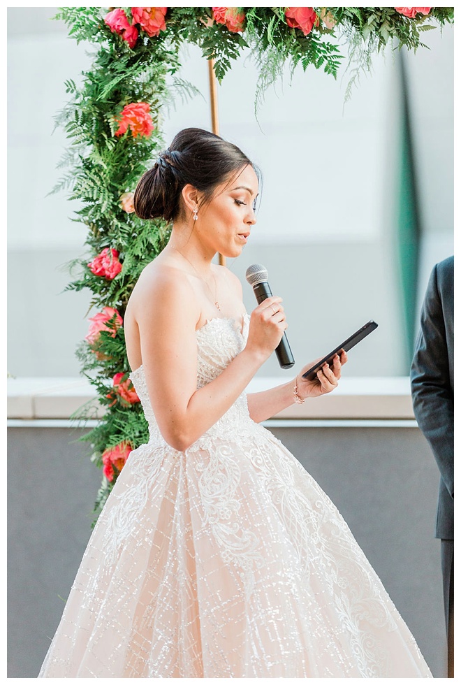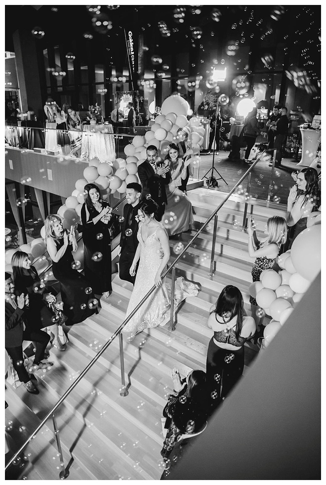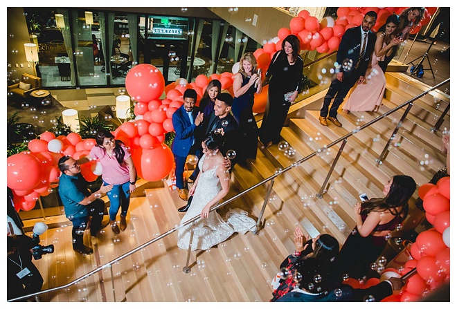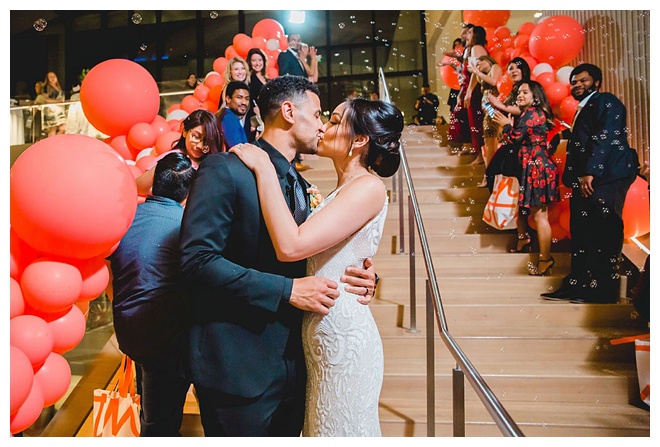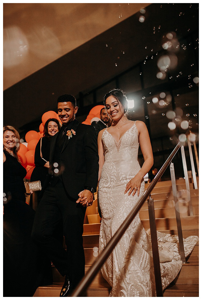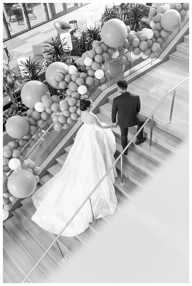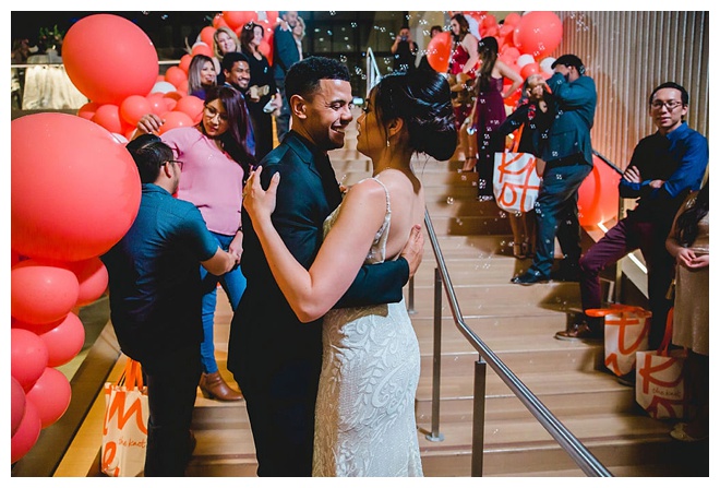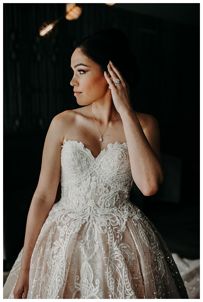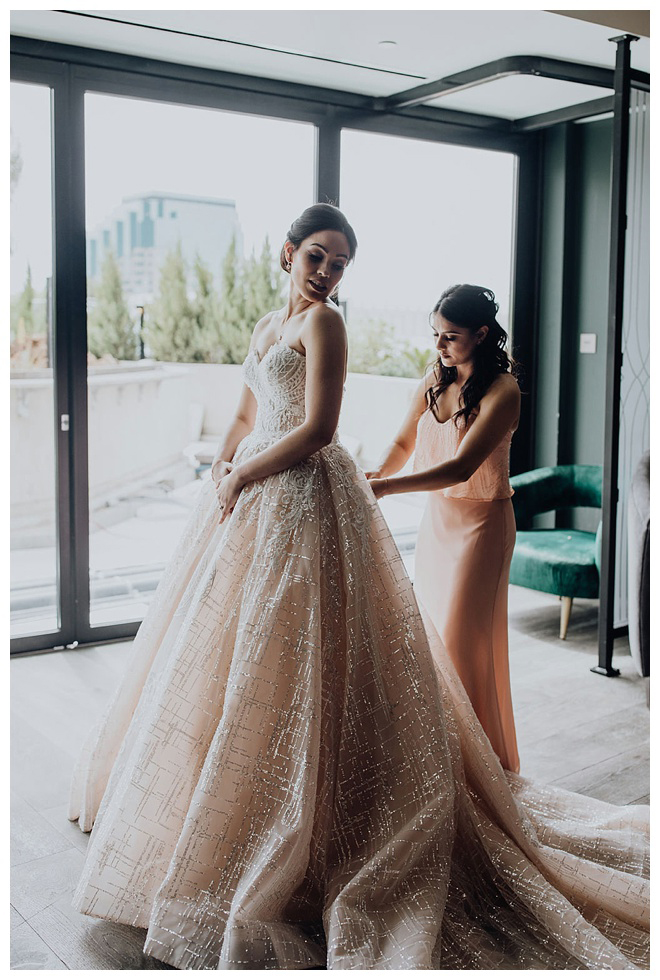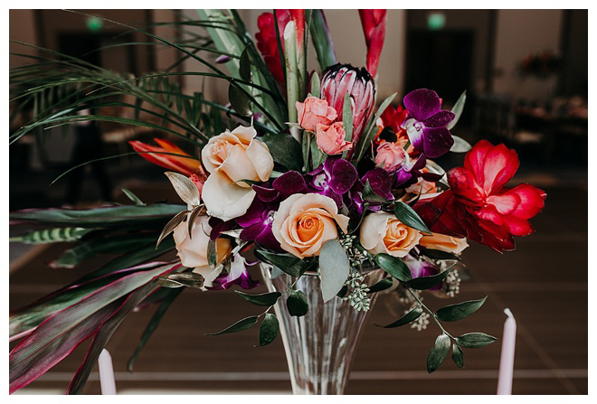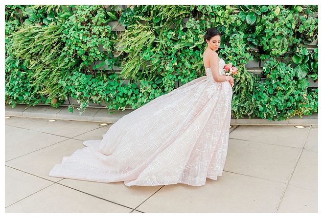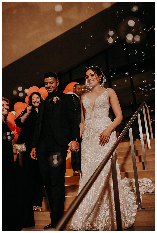 The show producer says, “We challenged our vendors to use the energizing colors found in nature to wow our guests. Think of it as a modern take on land, sky, and sea. Spoiler alert: they killed it. Between the balloon installation, rose gold dress and the blown sugar glass cakes, we couldn’t possibly pick a favorite detail. If Pantone had a Color of the Year party, this would be it.”