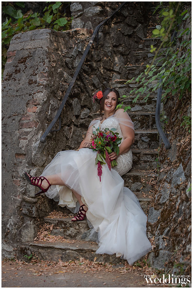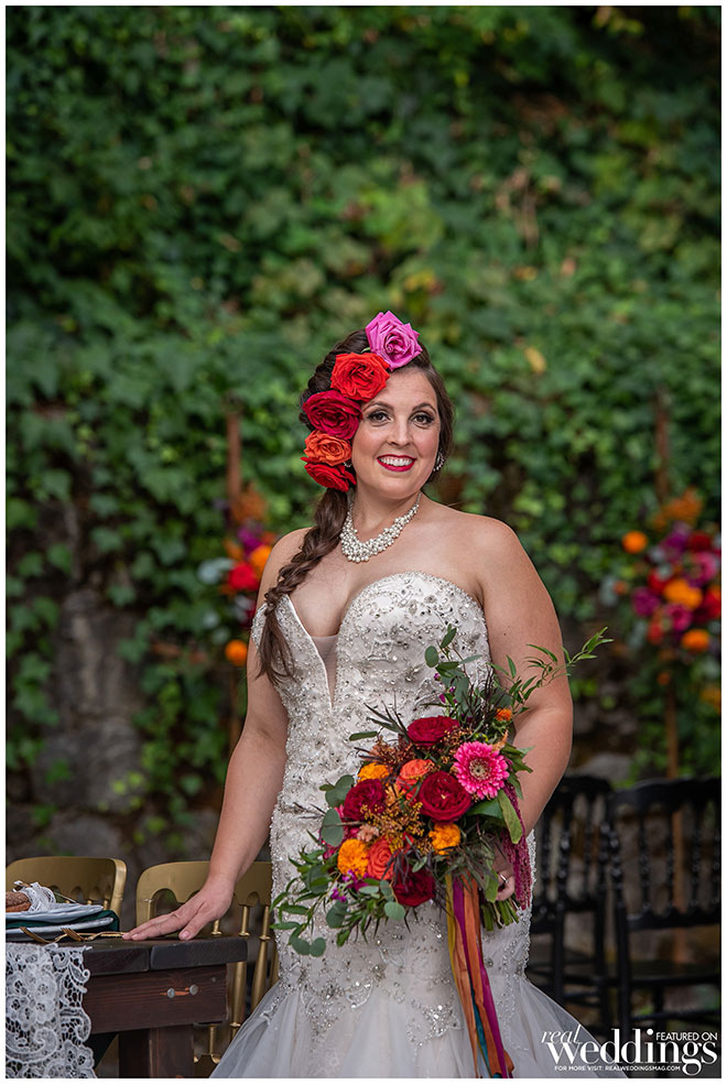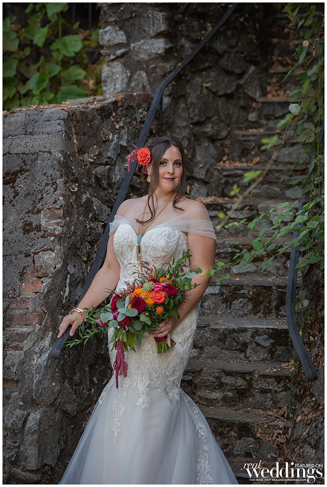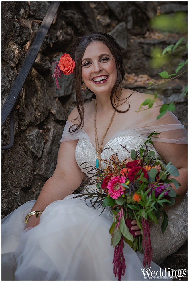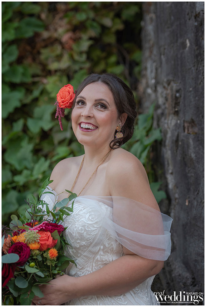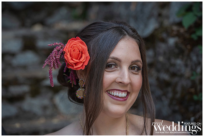 Real Bride Model Nicole was so easy to work with! She was game for anything including multiple flowers in her hair and our team tossing leaves in front of the camera in an attempt for the perfect photo (seriously, just look at her smile in those photos!). Read on to her about her love story and experience modeling.