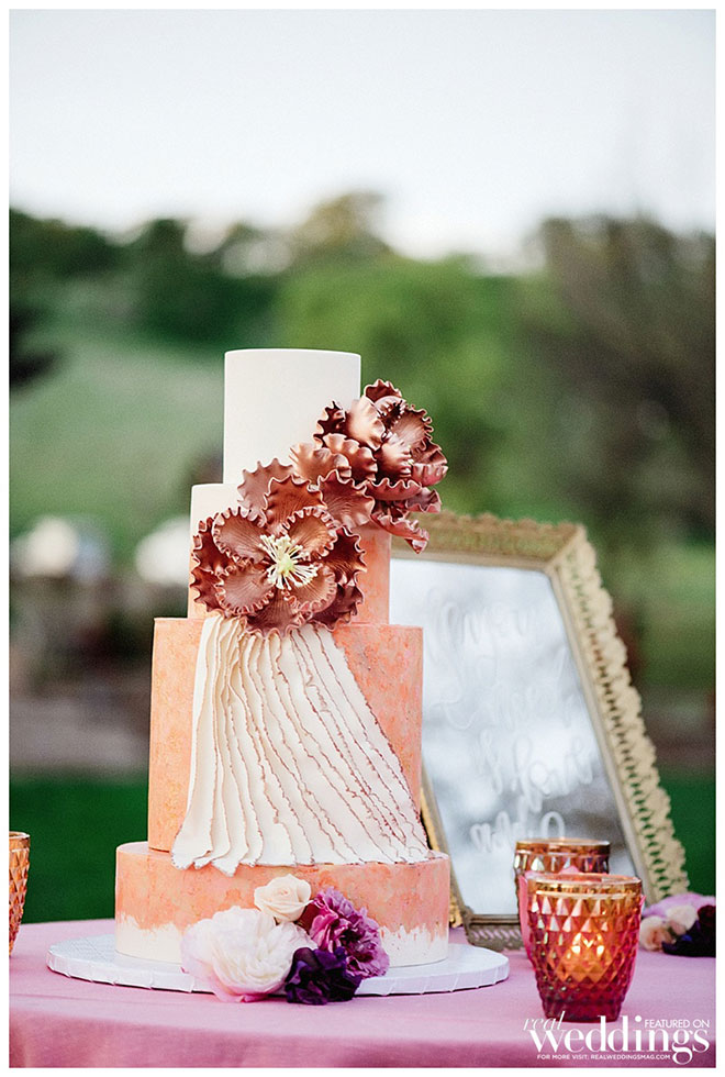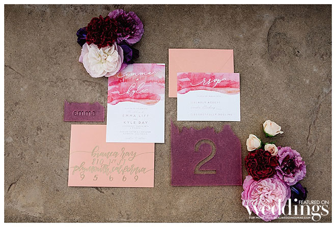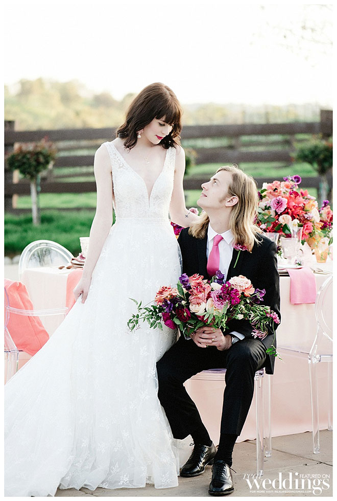 Our third styled shoot from our Summer/Fall 2018 issue, had us “California Dreaming.” Inspired by California sunsets, Kate Whelan Events designed this elegant styled shoot with help from Above and Beyond Cakes, BGorgeous, Celebrations! Party Rentals & Tents, Flourish, and shot by Sarah Maren Photography on location at Rancho Victoria Vineyard featuring real couple models, Emma and Kyle. Even though we’re lucky to be in the great state of California, we’ll still be dreaming about the gorgeous sunset on this even more gorgeous styled shoot.