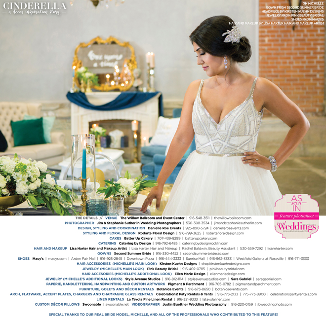 Special thanks to our real bride model, Michelle, and all of the professionals who contributed to this feature!