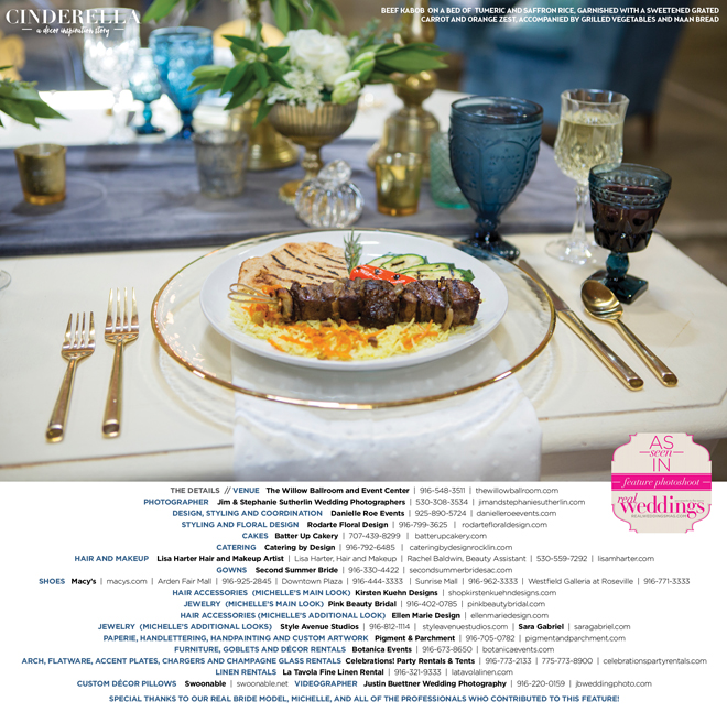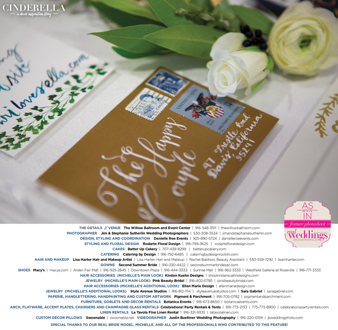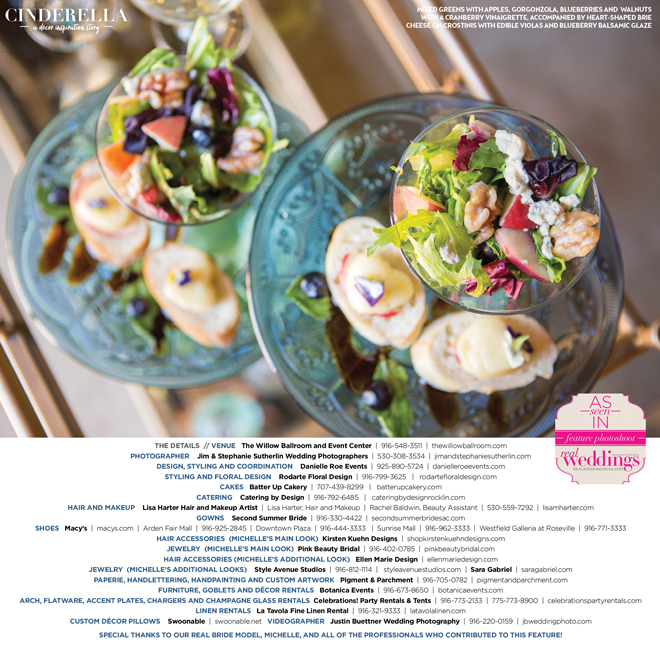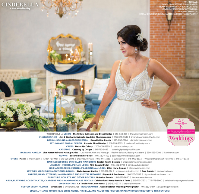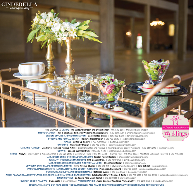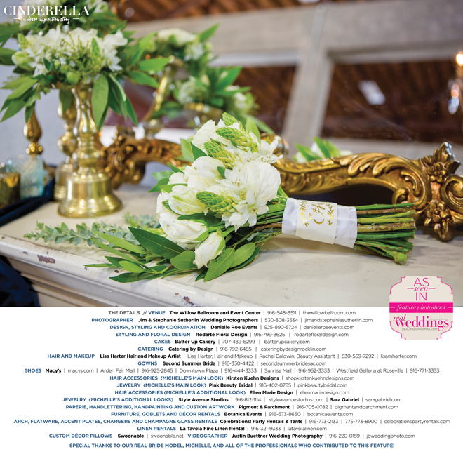 Special thanks to our real bride model, Michelle, and all of the professionals who contributed to this feature!