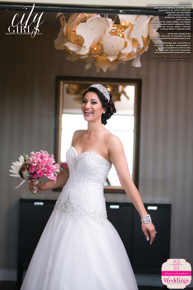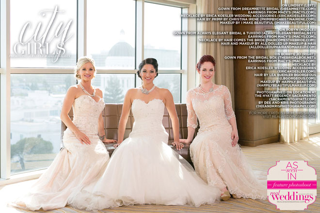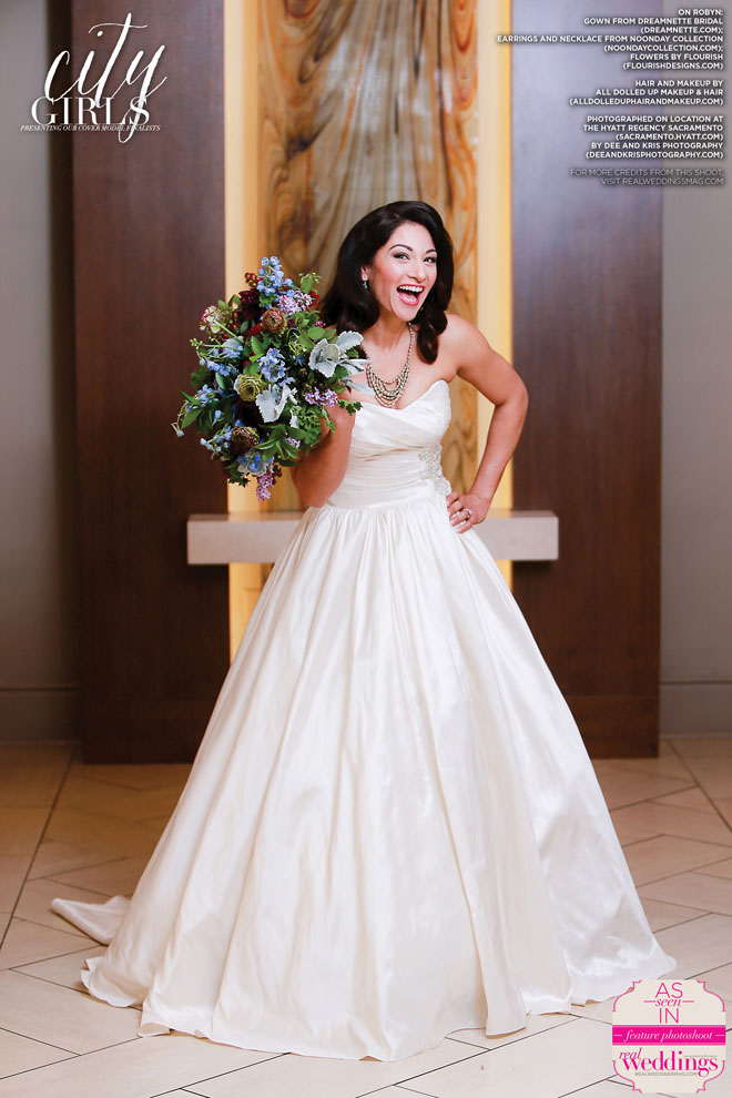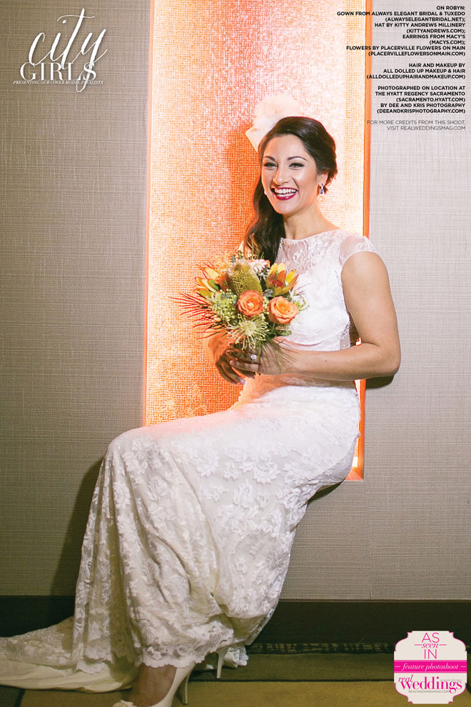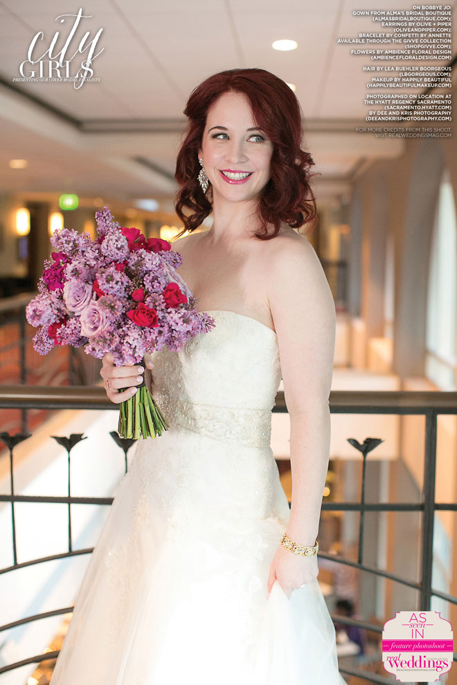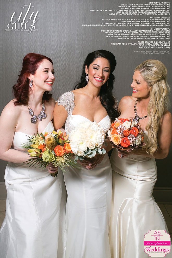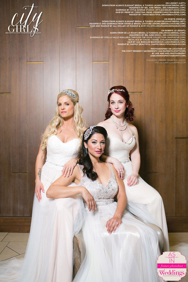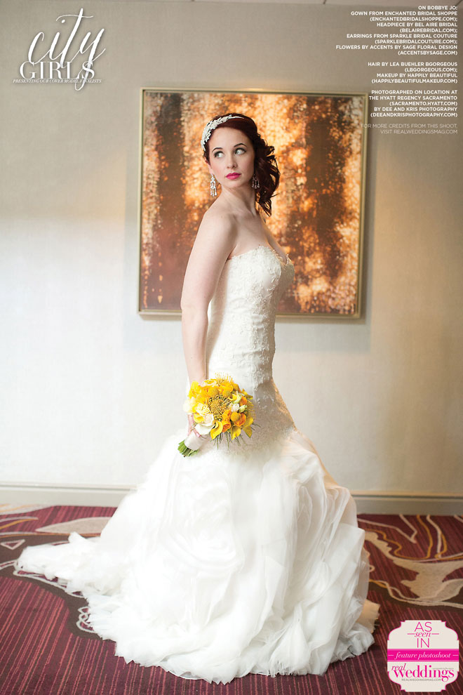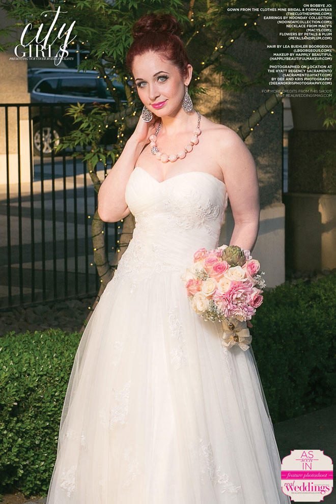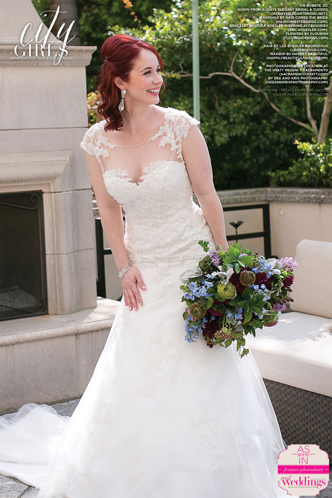 We absolutely love our real bride cover model finalists and this issue’s three are no exception! This past March, Bobbye Jo, Lindsey and Robyn got to play dress up with us at our all day cover model contest finalist photo shoot―from the local bridal gowns, bridal bouquets and accessories, to the hair and makeup teams, the venue and our photographer, everything was stunning…in short, it was an extraordinary day!