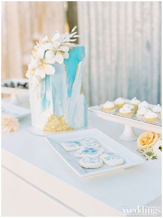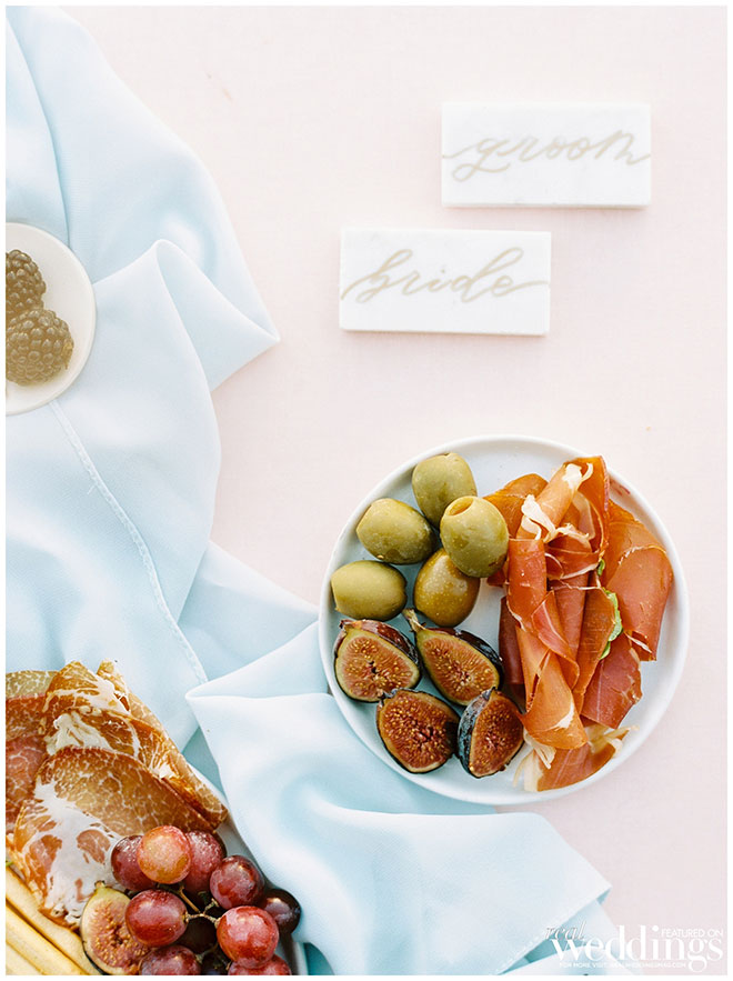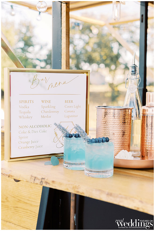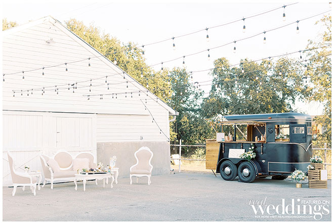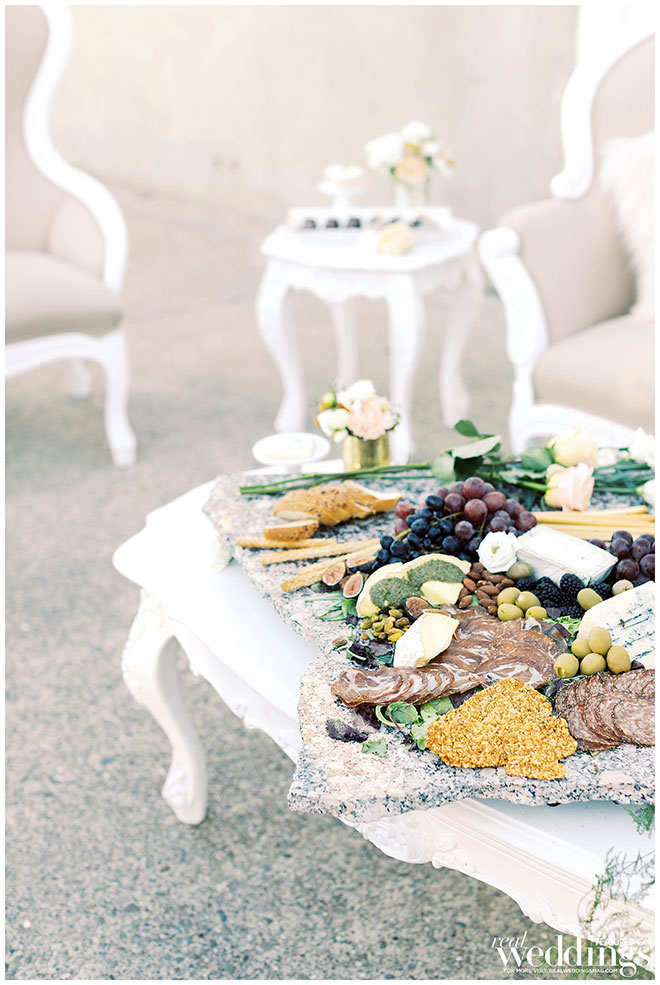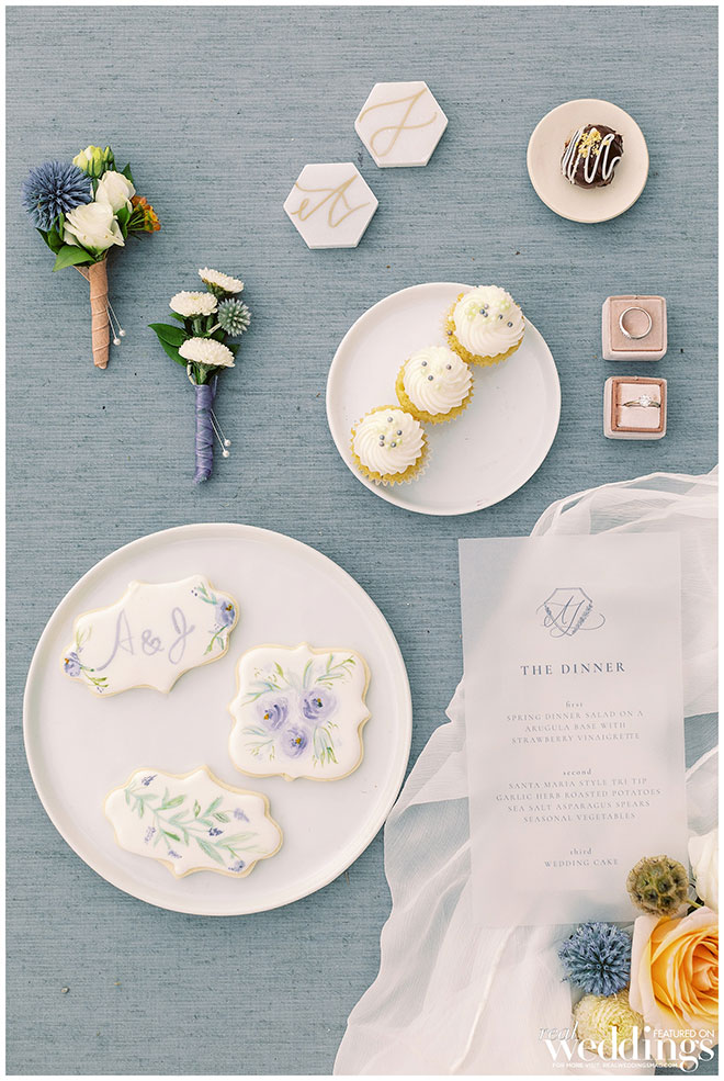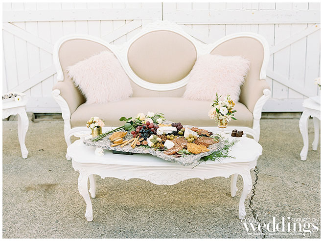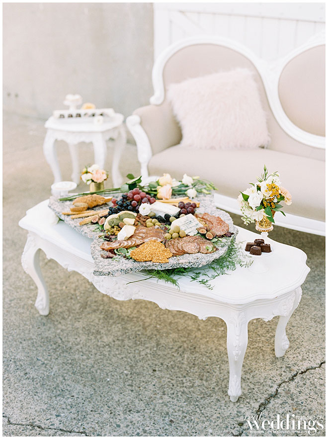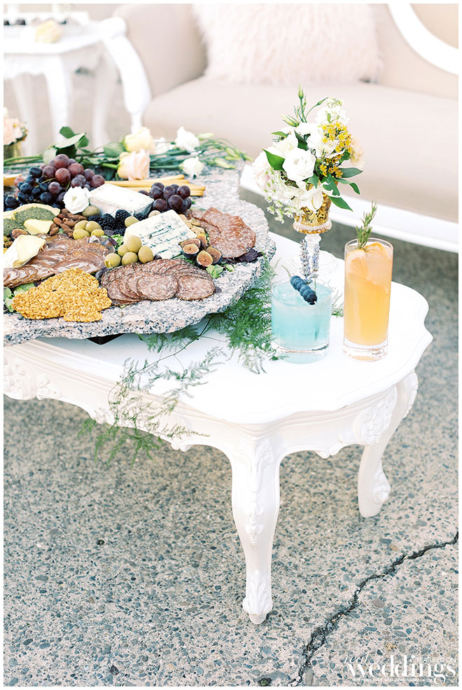 These elegant details from our “Country Charm” styled shoot are certainly swoon-worthy. From the modern cake and delicate cookies to the custom cocktails (not to mention the mobile bar!) and the full charcuterie board, we’re sitting her admiring every detail…including the non-edible ones!
