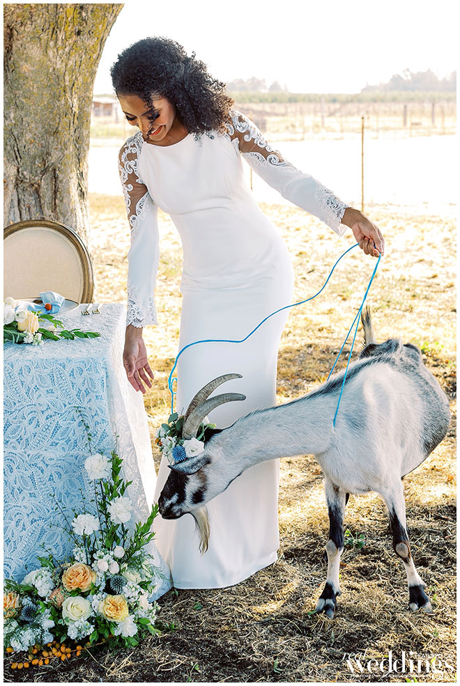 We traveled to the country for this glamorous photo shoot putting an elegant spotlight on a charming and rustic space. Plus, goats. Yeah, really. We had goats.
