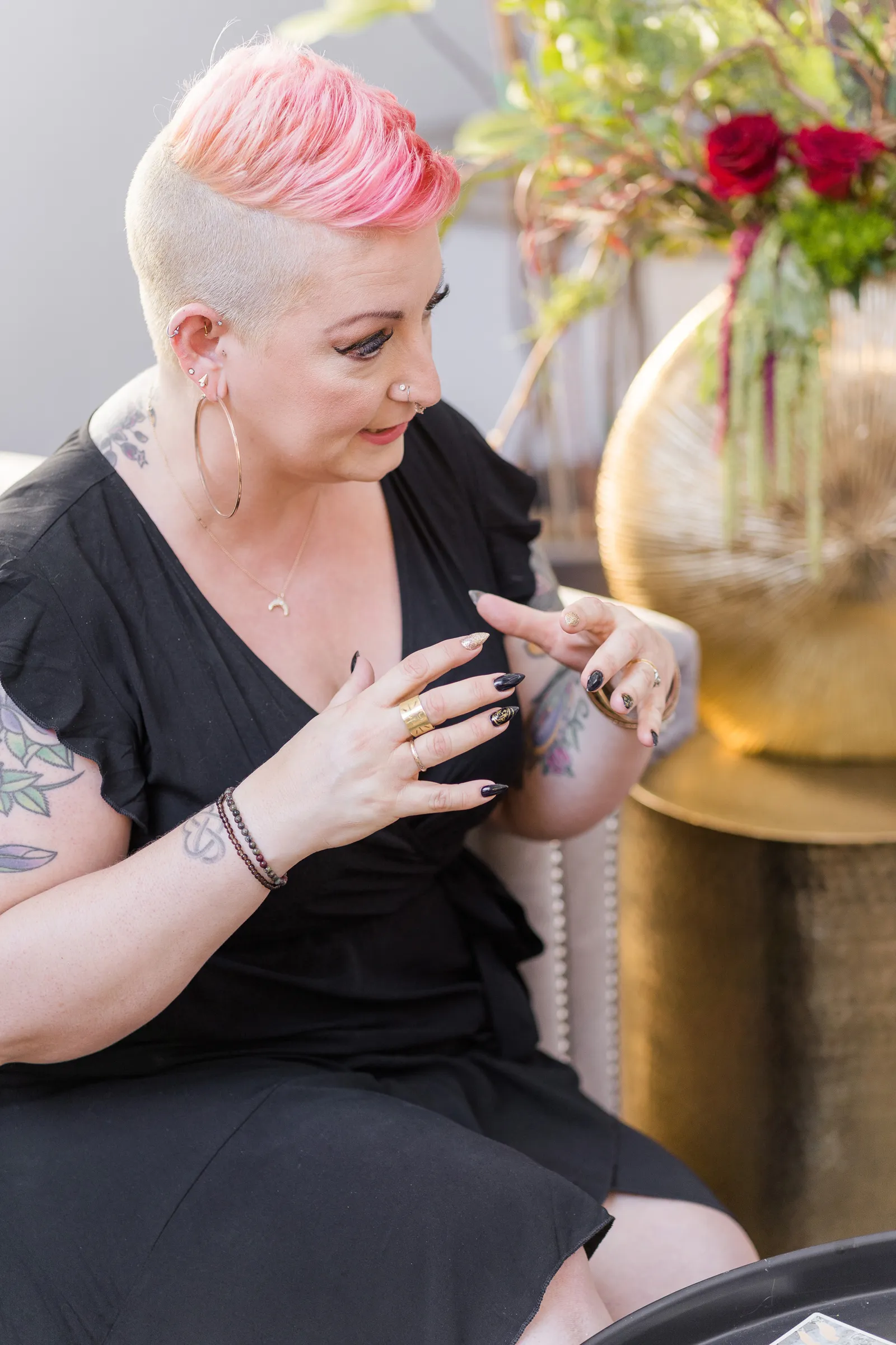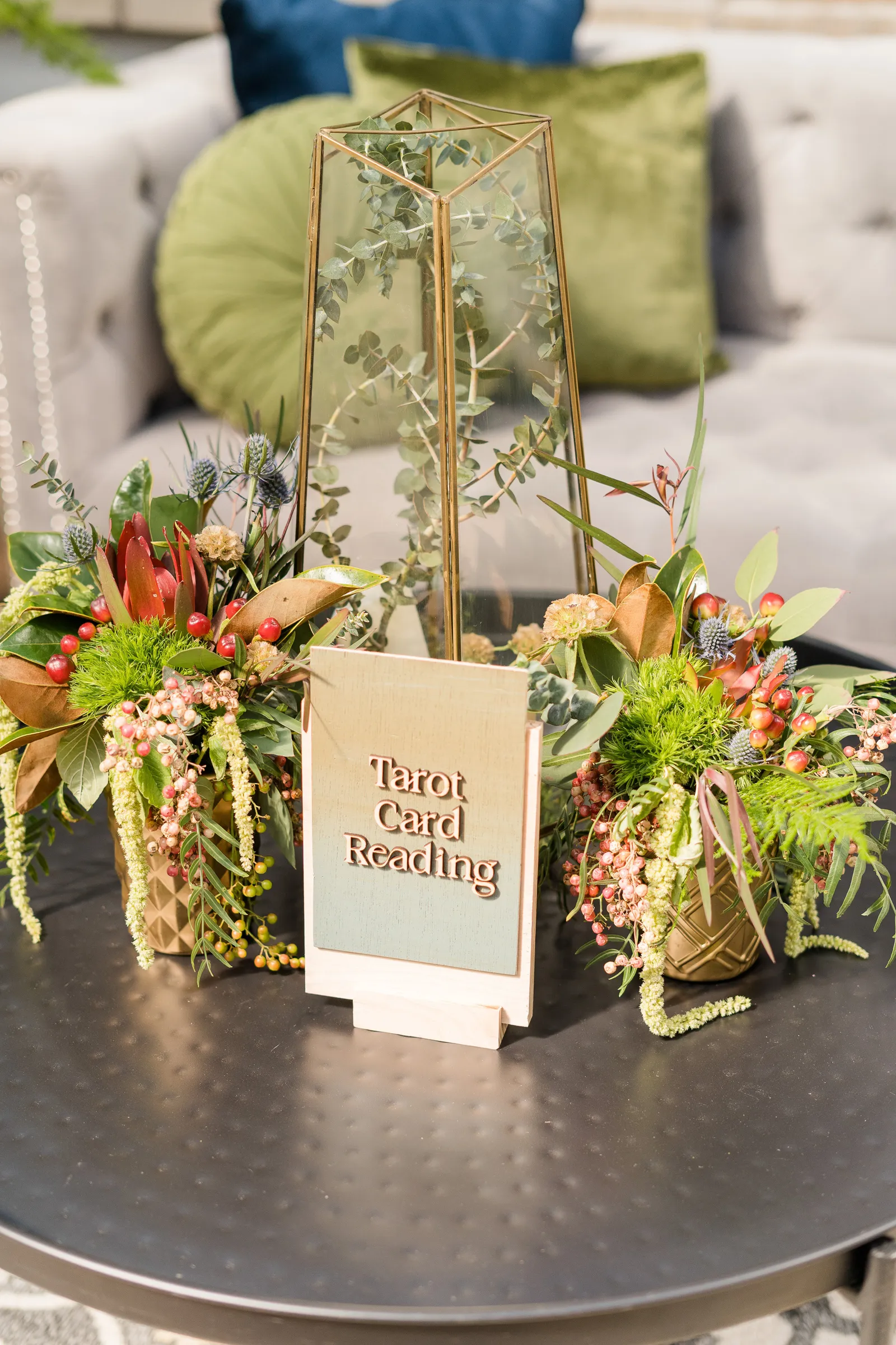 Enter Tara Harbert with The Tender Hearted Healer.…this amazing human is an Intuitive Healer, Self-Love Coach (you have to follow her on insta @the_tender_hearted_healer..if you’re having a bad day, her videos will INSTANTLY change your attitude!), and Tarot Reader. And as an added bonus, she has been a part of our Real Weddings shoot and events team for years, and is a former real bride model (along with her now-husband Harpo) in our styled shoot, “In the Mood For Love.” When I asked her if she would be game to be part of our shoot and do a live Tarot Reading she was totally down with it! (Cue happy dance by Wendy!)