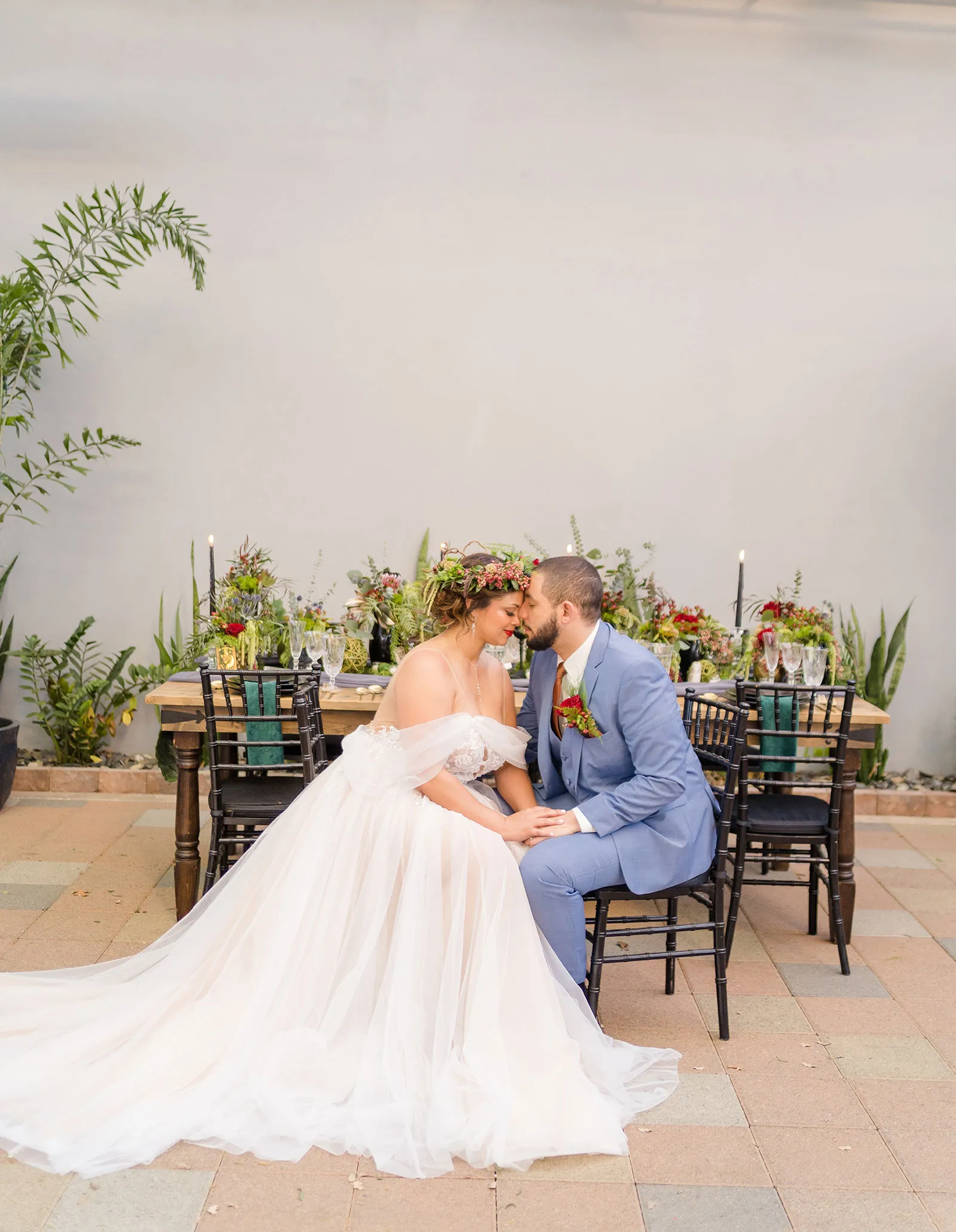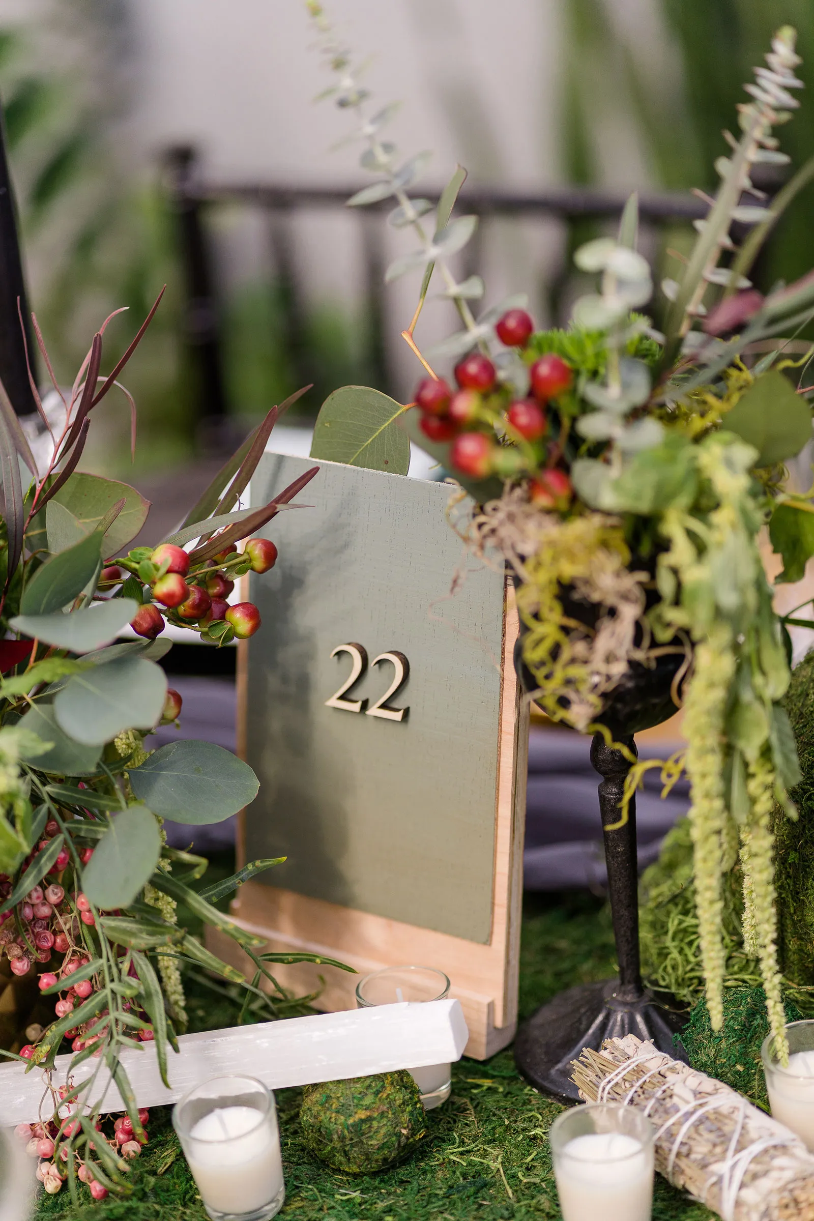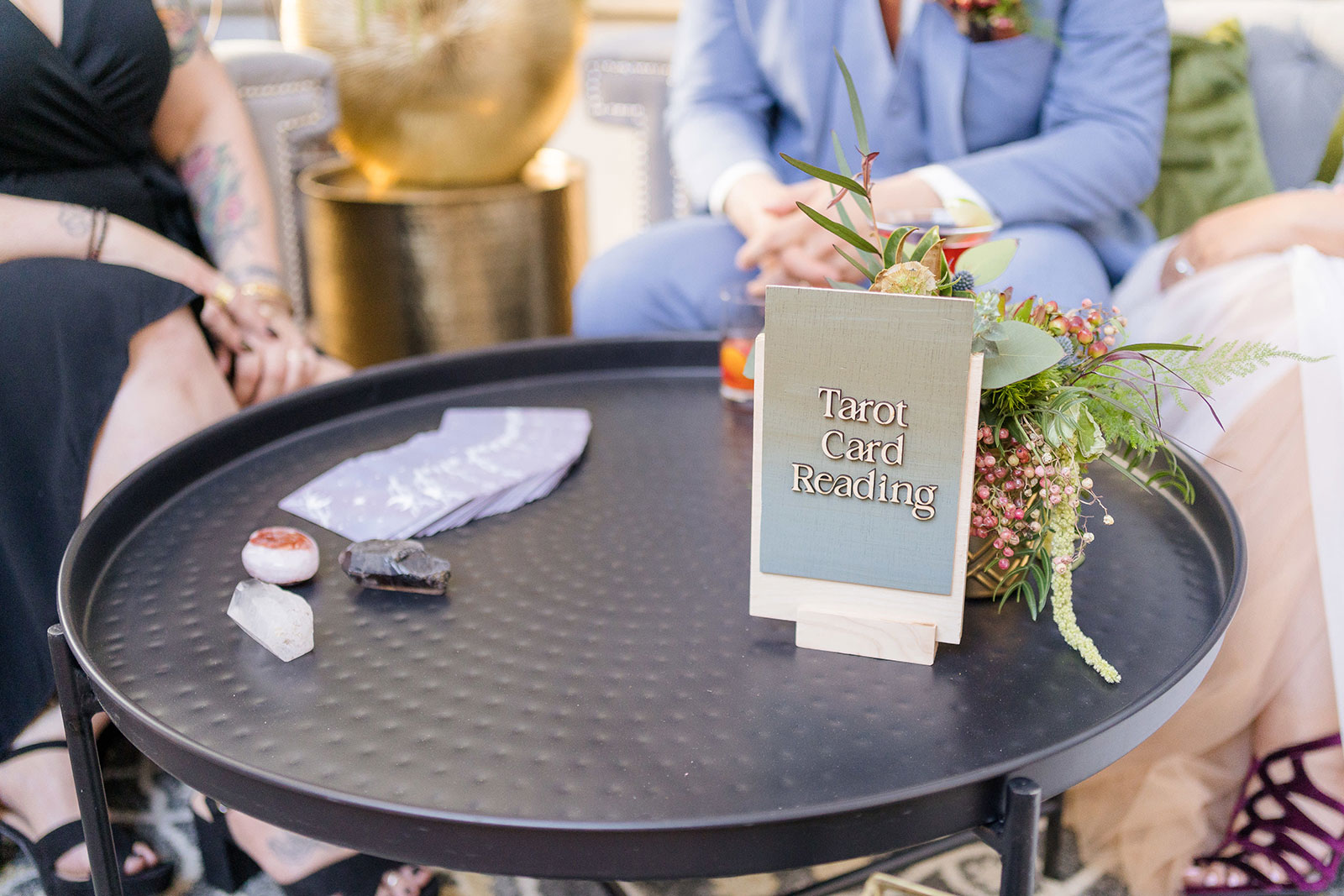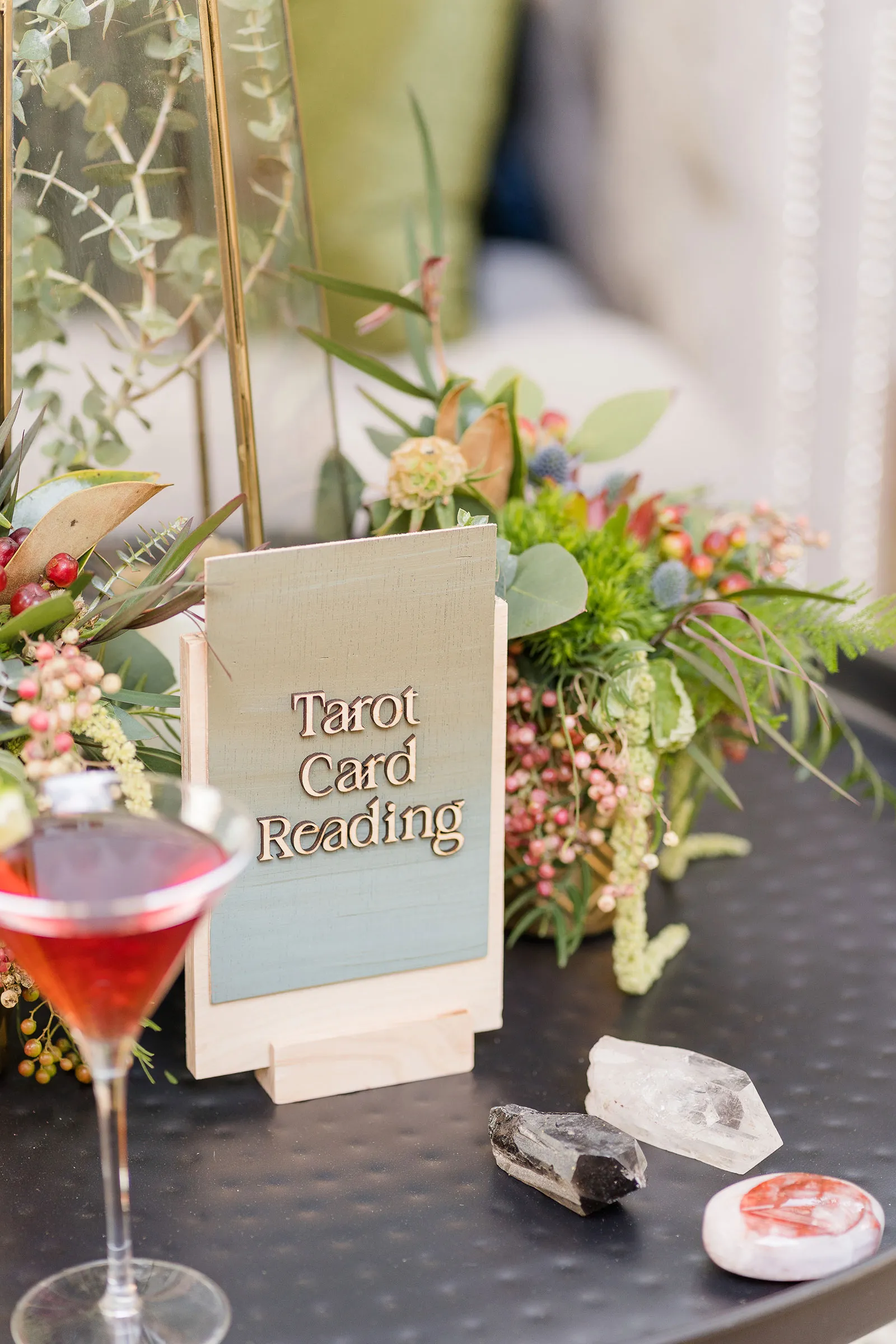 Is there anything more enchanting than vining flowers? Or deep hues of purple and green? Or a truly insightful tarot card reading? Nope! And lucky for you we have all those things (and more!) wrapped up into our “Enchanted Love” styled shoot! The vendor team was so into making this a magical experience for our real couple models, and they walked away feeling connected as newlyweds. Our job is done! Check out the layout from this gorgeous shoot.