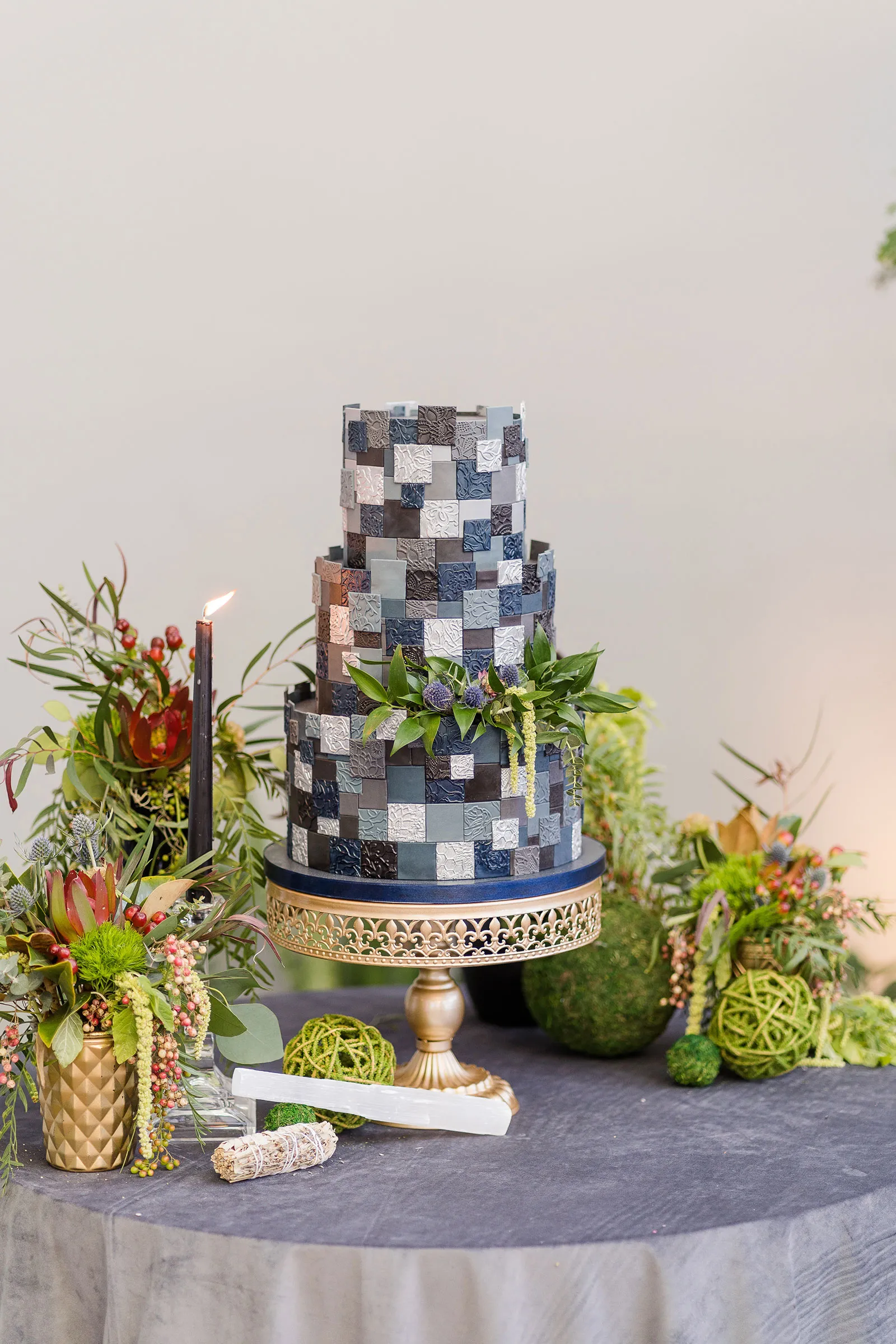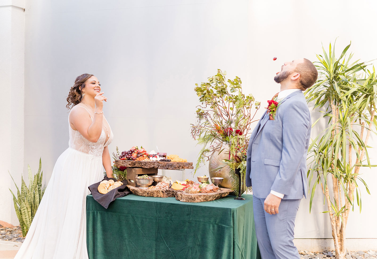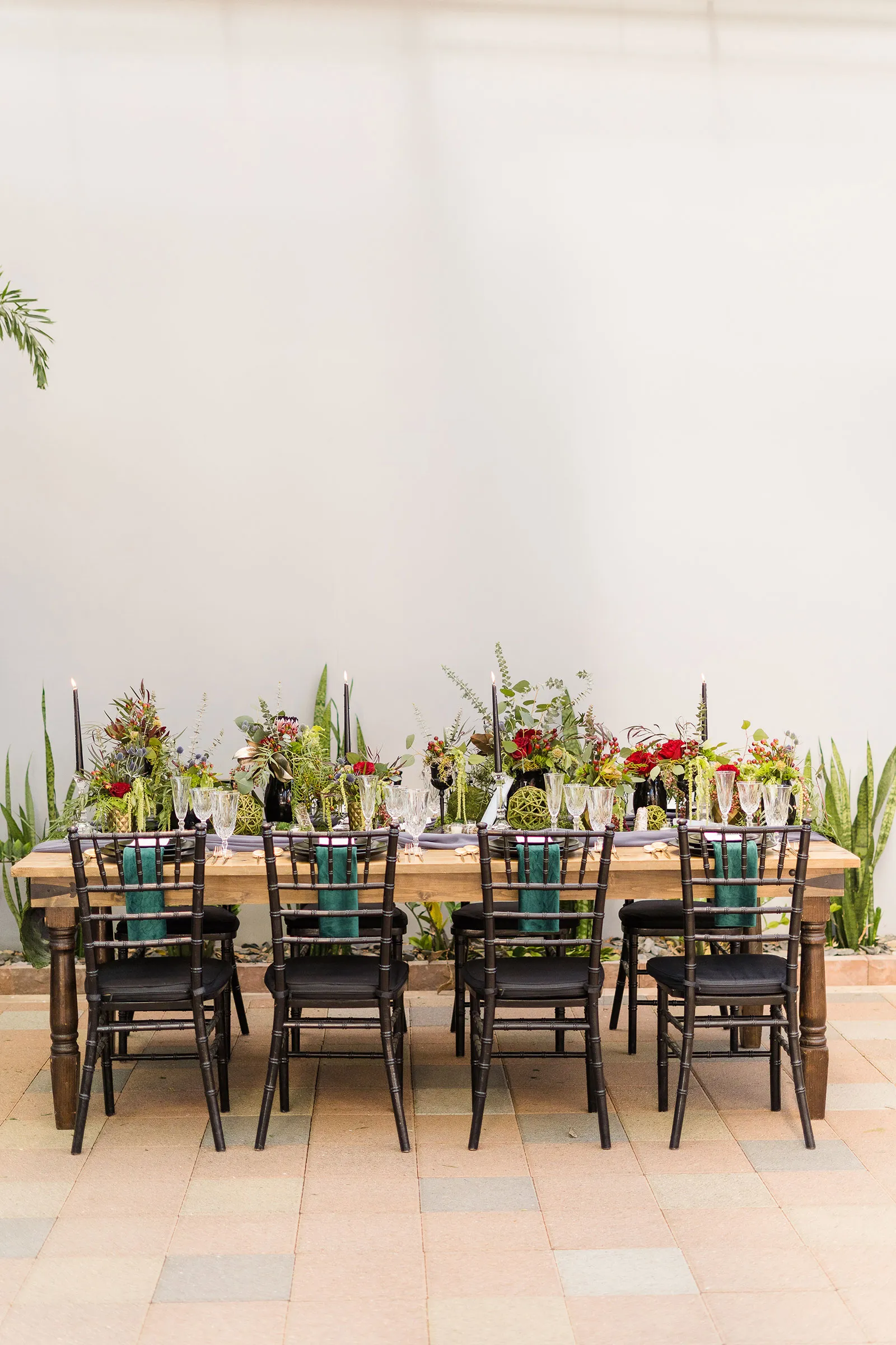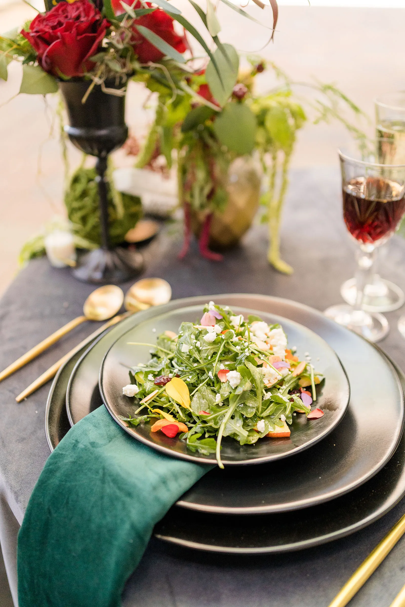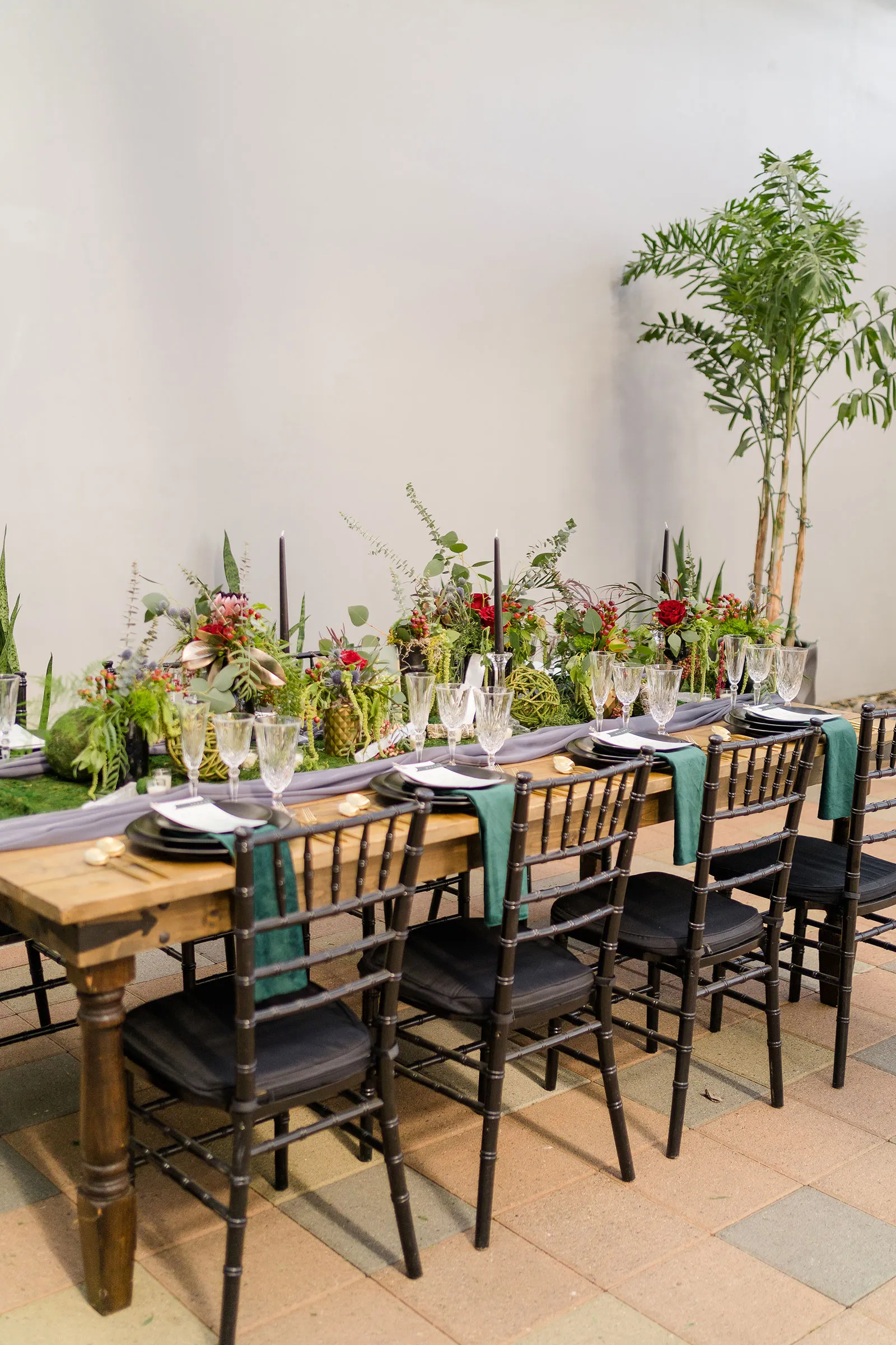 Is there anything more enchanting than vining flowers? Or deep hues of purple and green? Or a truly insightful tarot card reading? Nope! And lucky for you we have all those things (and more!) wrapped up into our “Enchanted Love” styled shoot! The vendor team was so into making this a magical experience for our real couple models, and they walked away feeling connected as newlyweds. Our job is done! Check out the layout from this gorgeous shoot.