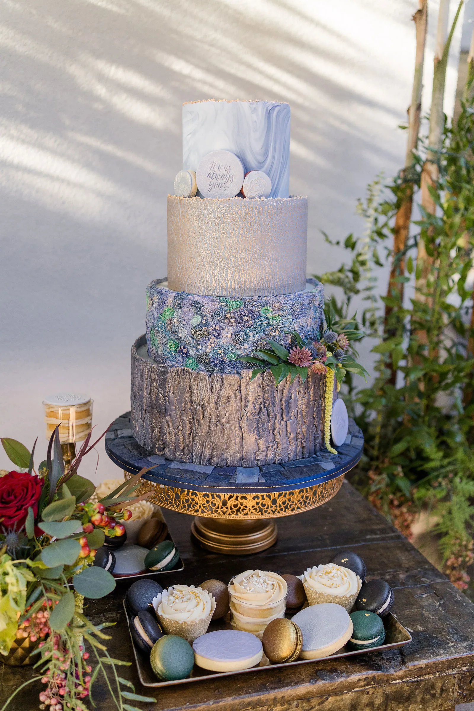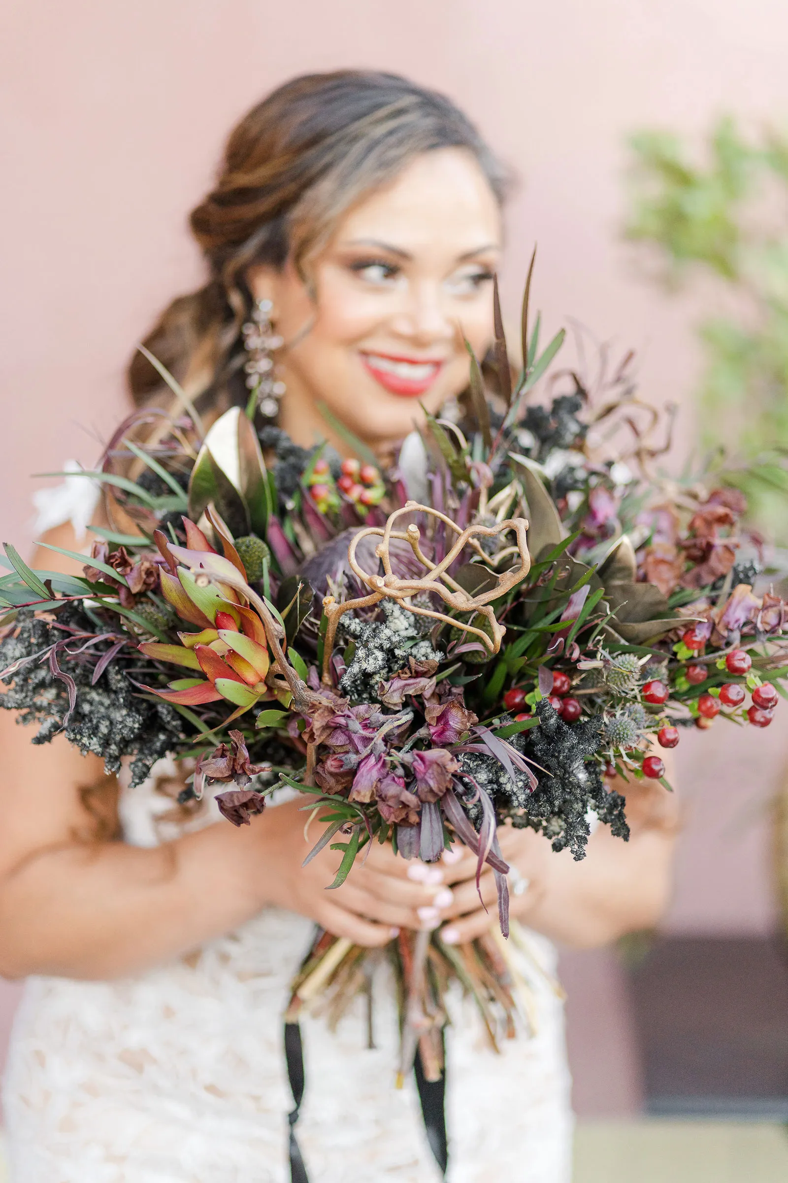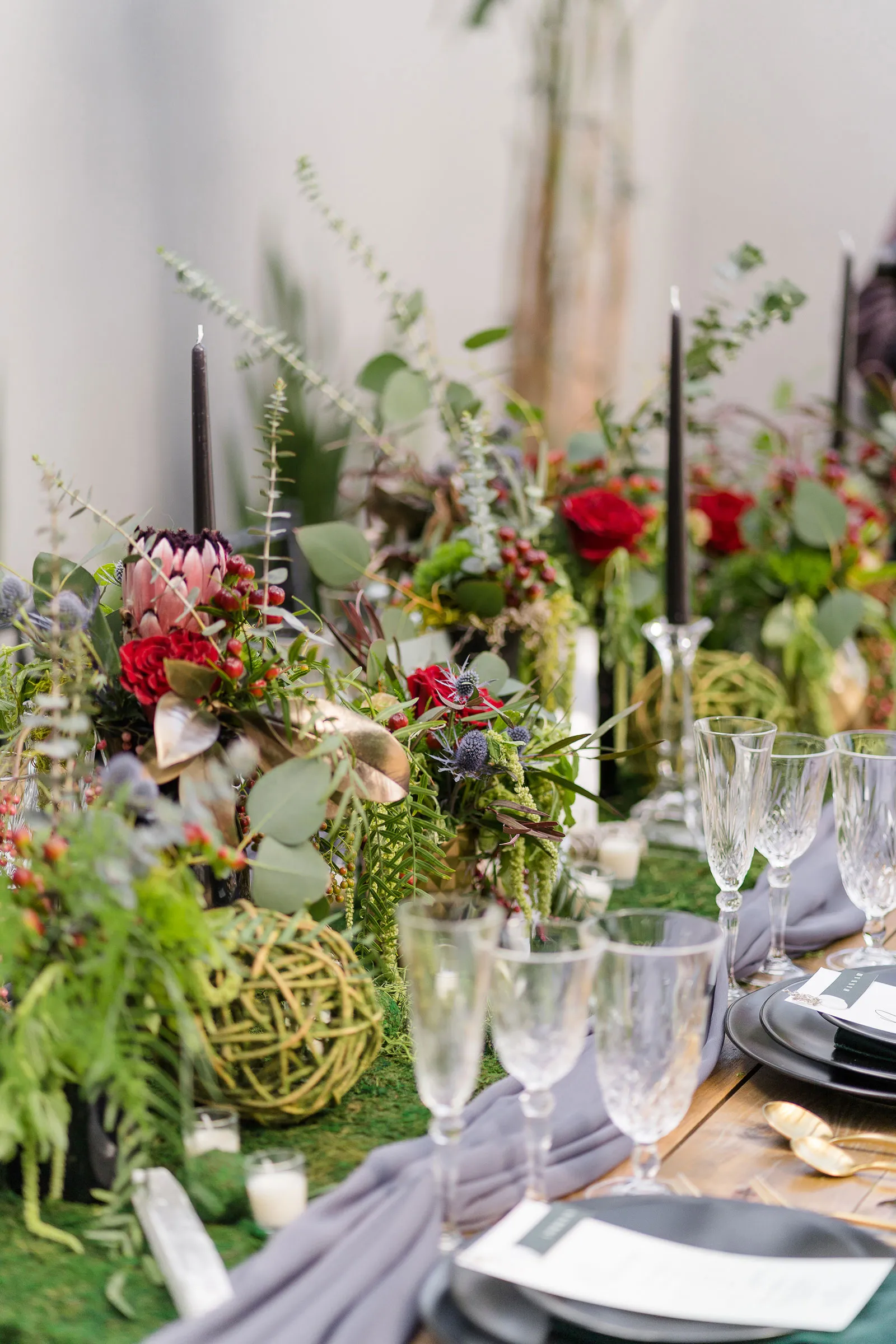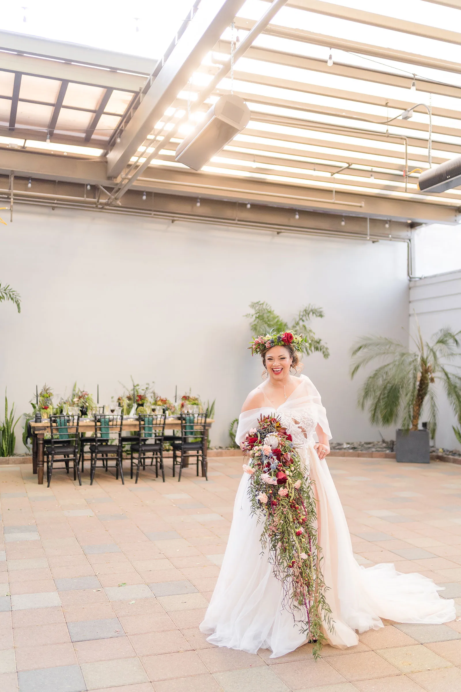 Is there anything more enchanting than vining flowers? Or deep hues of purple and green? Or a truly insightful tarot card reading? Nope! And lucky for you we have all those things (and more!) wrapped up into our “Enchanted Love” styled shoot! The vendor team was so into making this a magical experience for our real couple models, and they walked away feeling connected as newlyweds. Our job is done! Check out the layout from this gorgeous shoot.