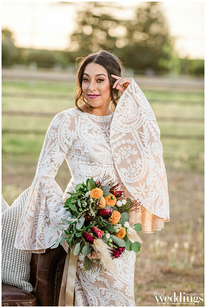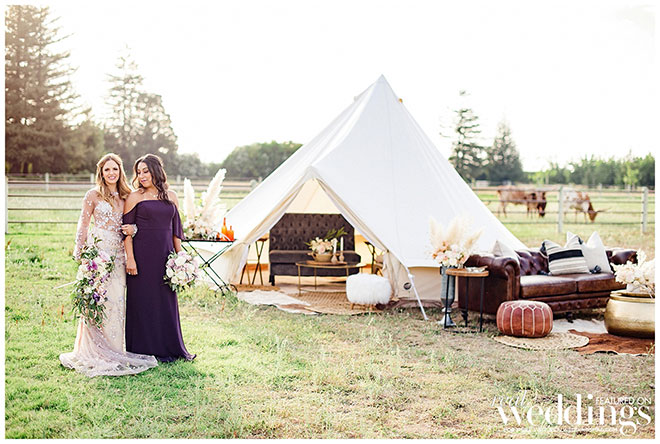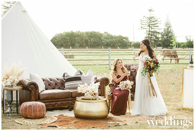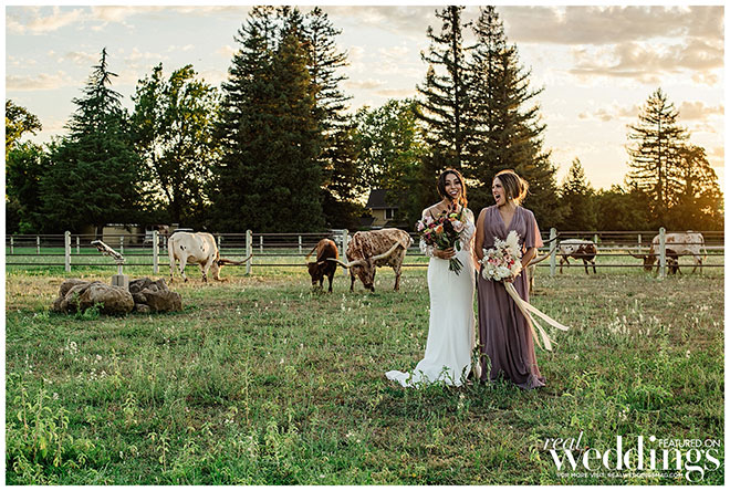 Ready for more?! We’ve got The Layout from our second Cover Model Finalist Photo Shoot where real bride models Katie and Lexi brought the heat to this with stunning looks and a chill vibe…and they got to play with the resident longhorns.