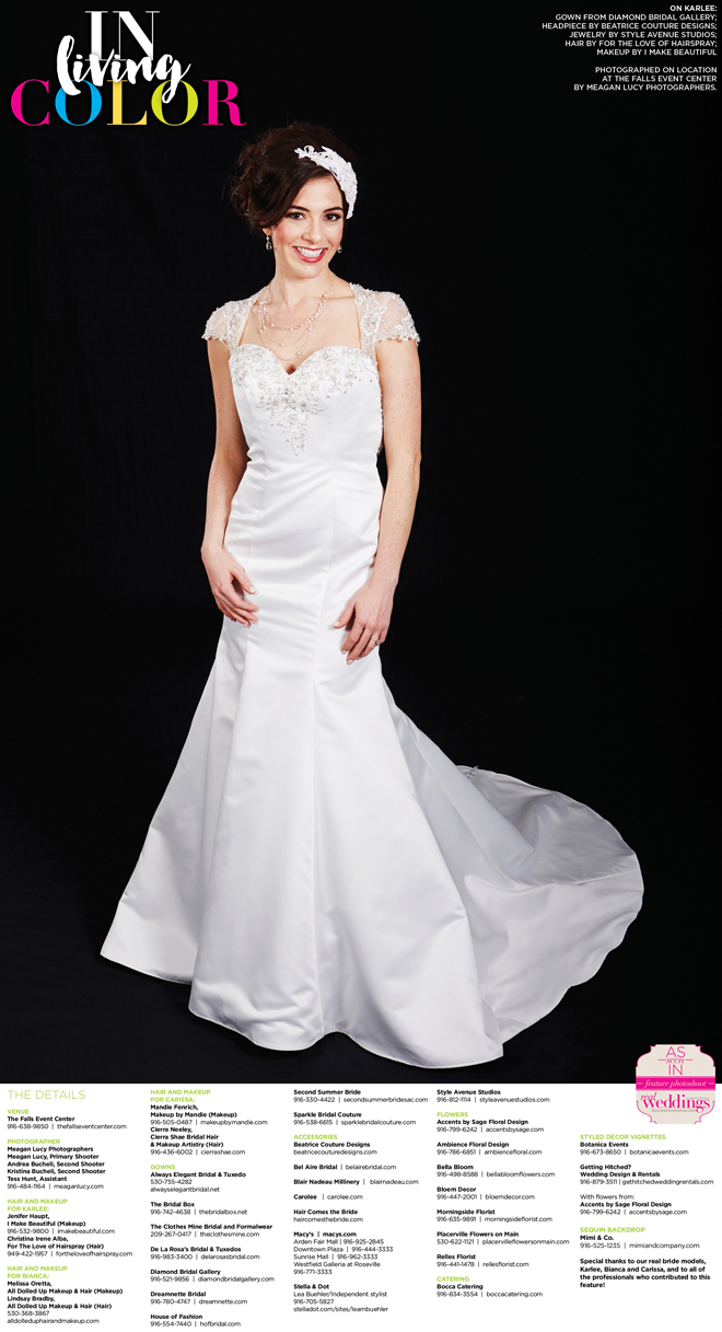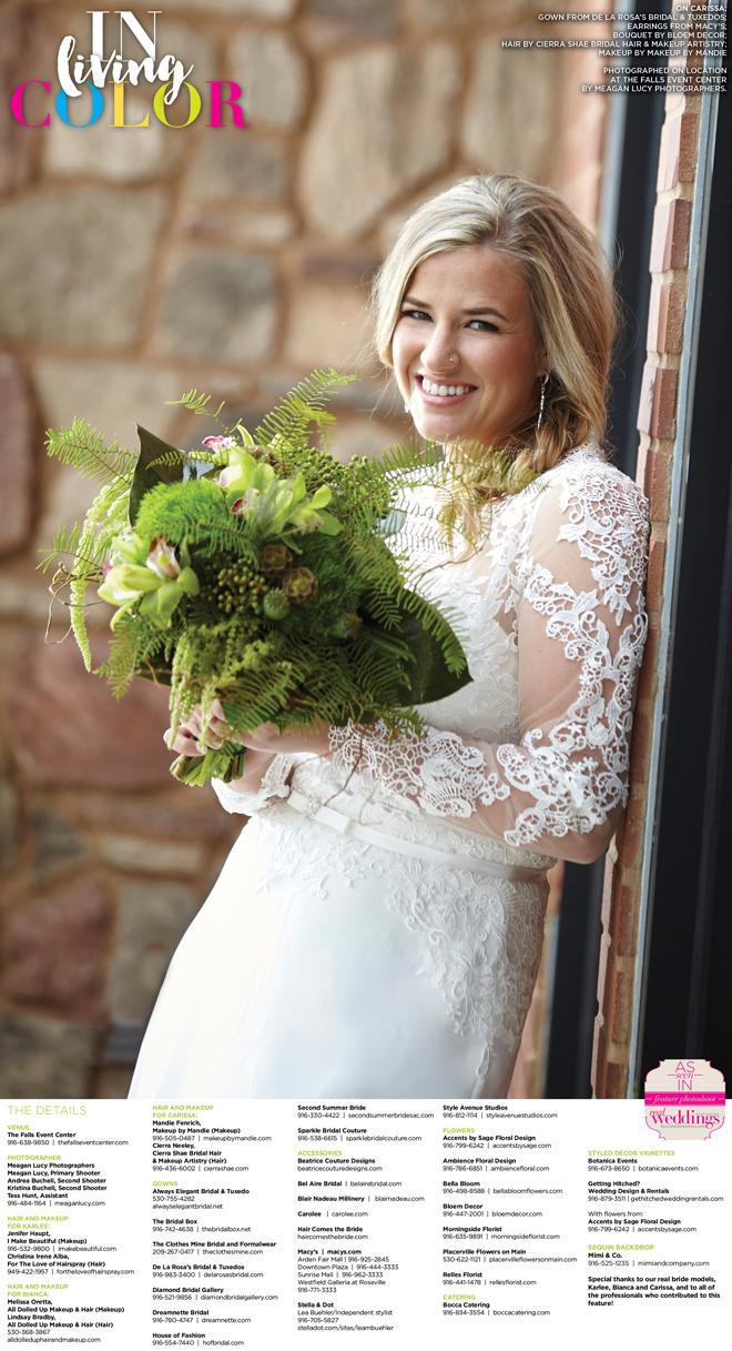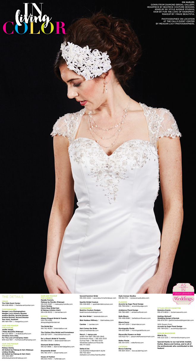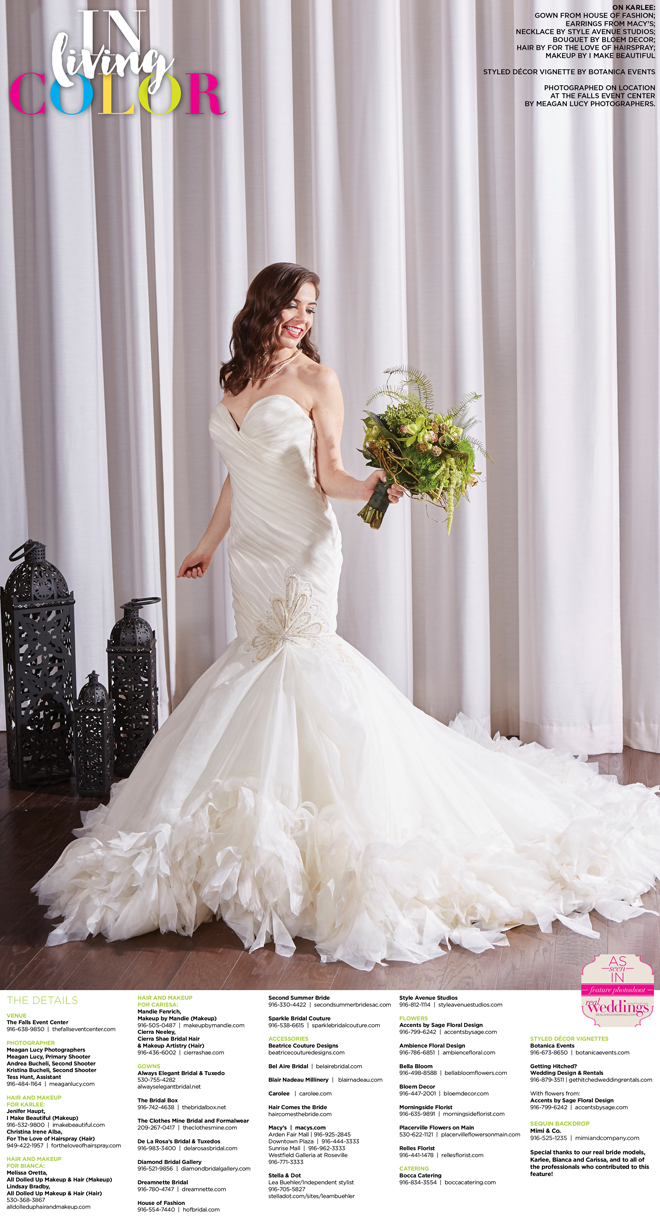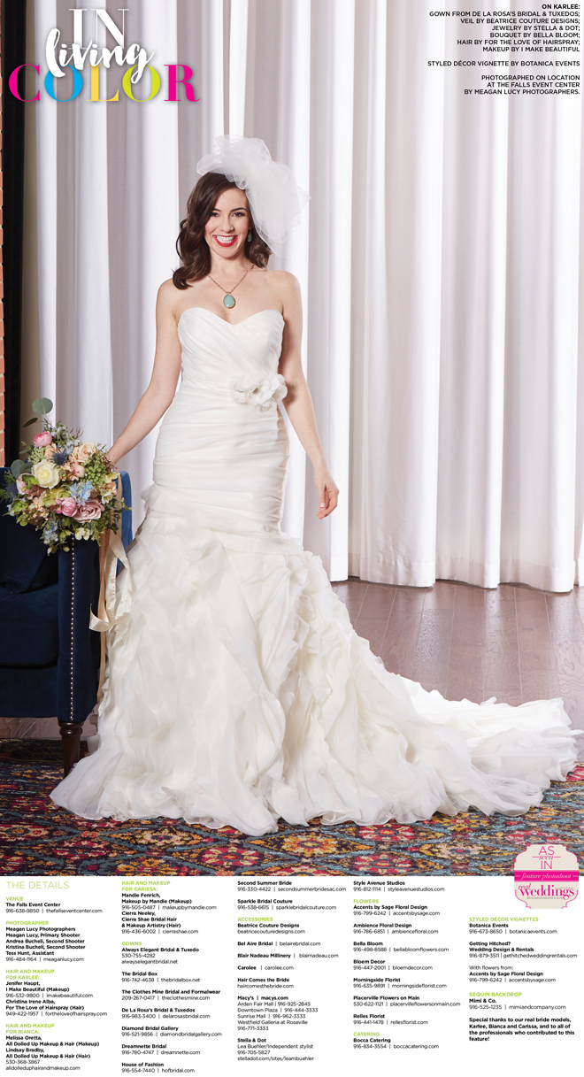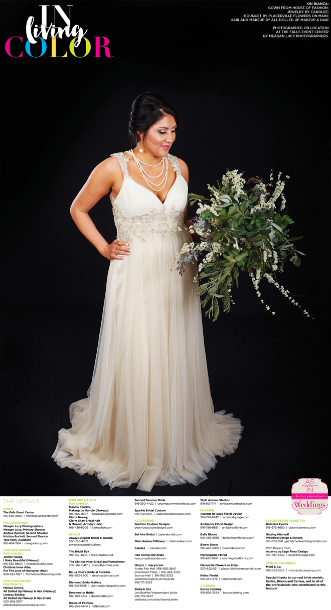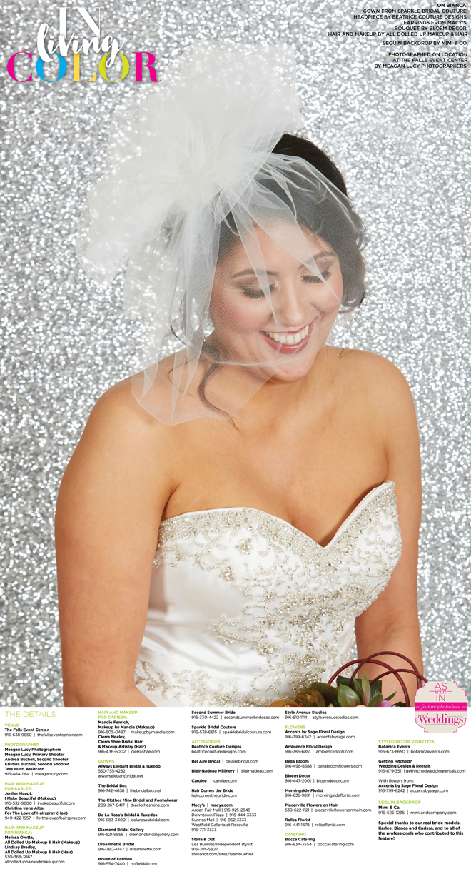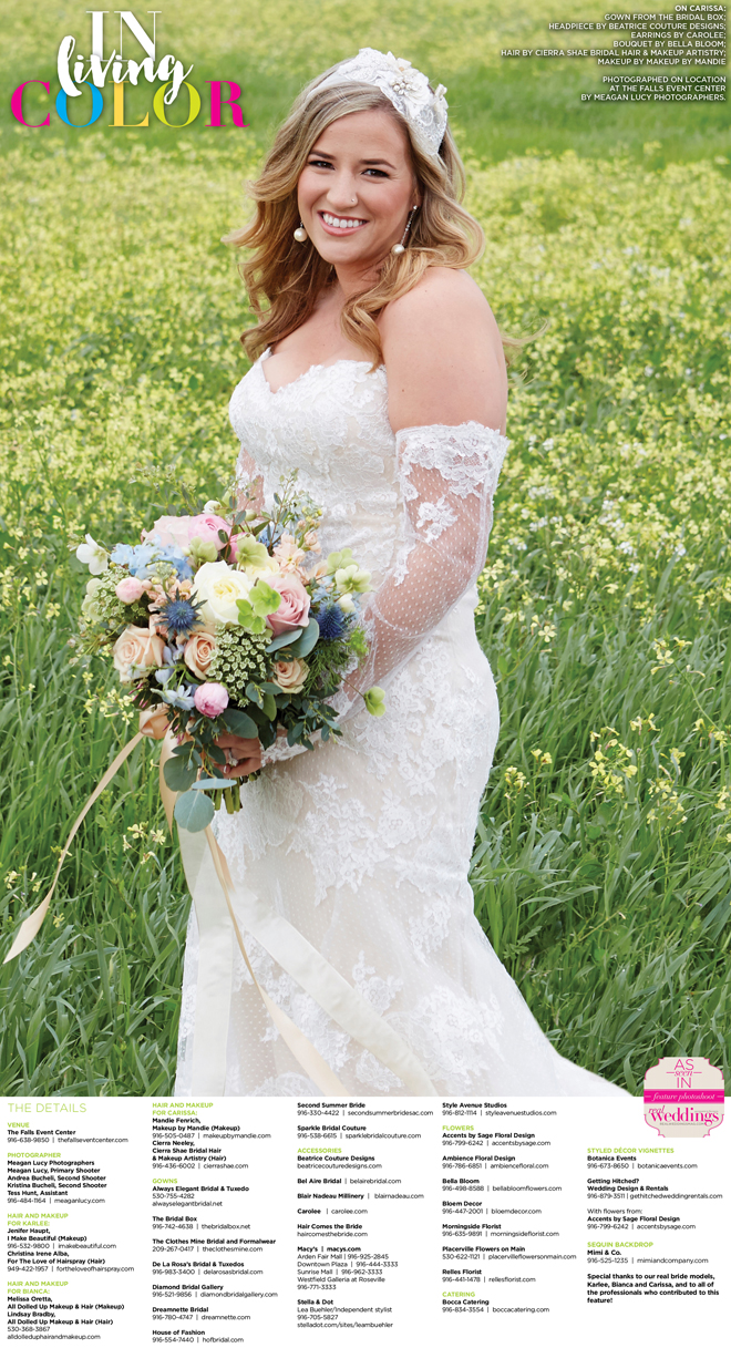 The cover model finalist contest photo shoot Real Weddings Magazine team members who produced this editorial feature include: produced by Susie Baggett, Simran Dhami, Cait Herrera, Tatiana Jitari, Nathalia Kallan, Rachel Meeker, Desiree Patterson, Emily Peter, Aaron Roseli, Wendy Sipple, Leah Sisto and Megan Wiskus.