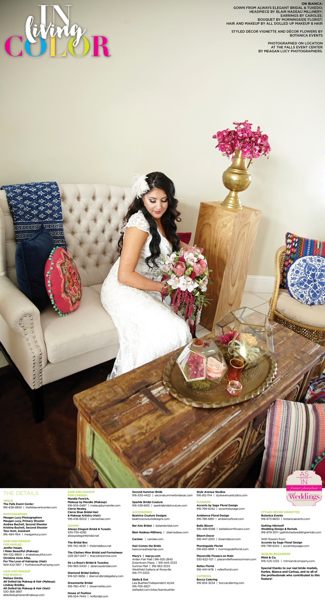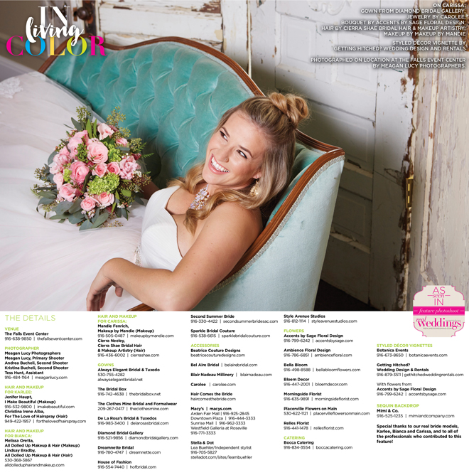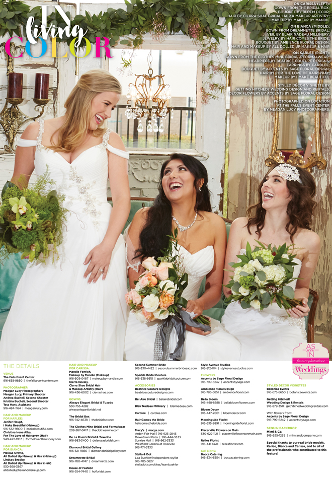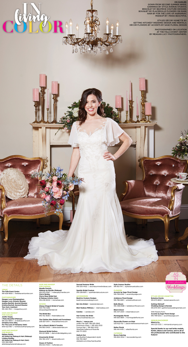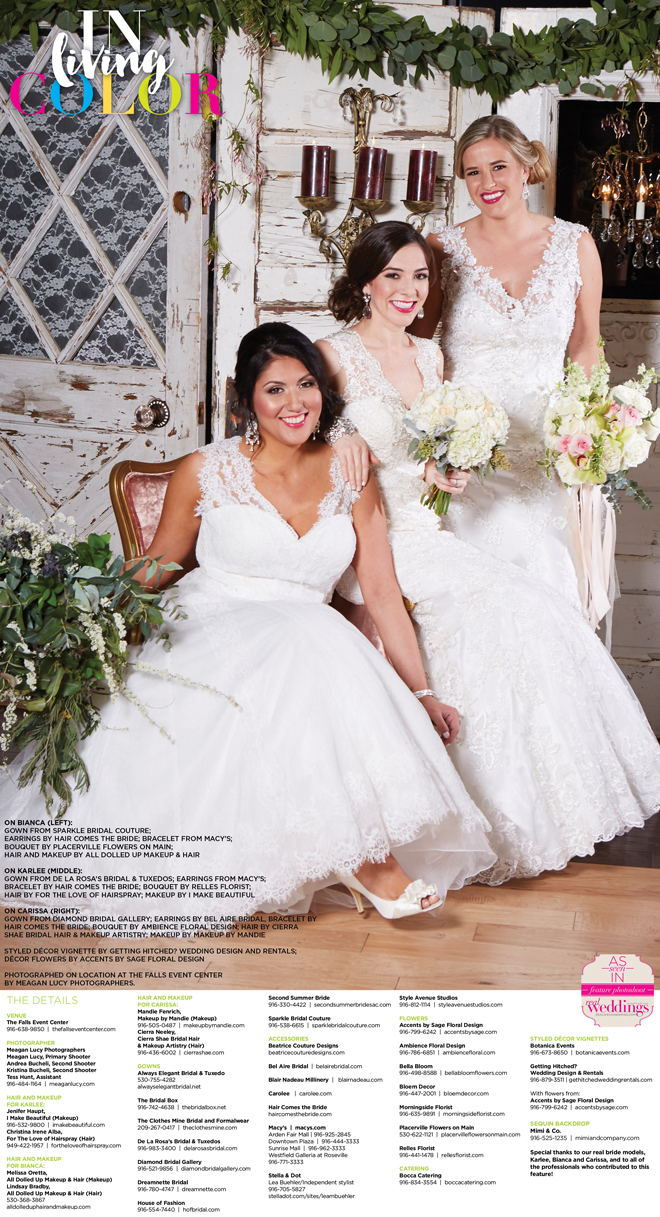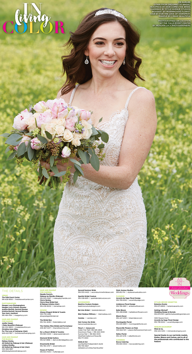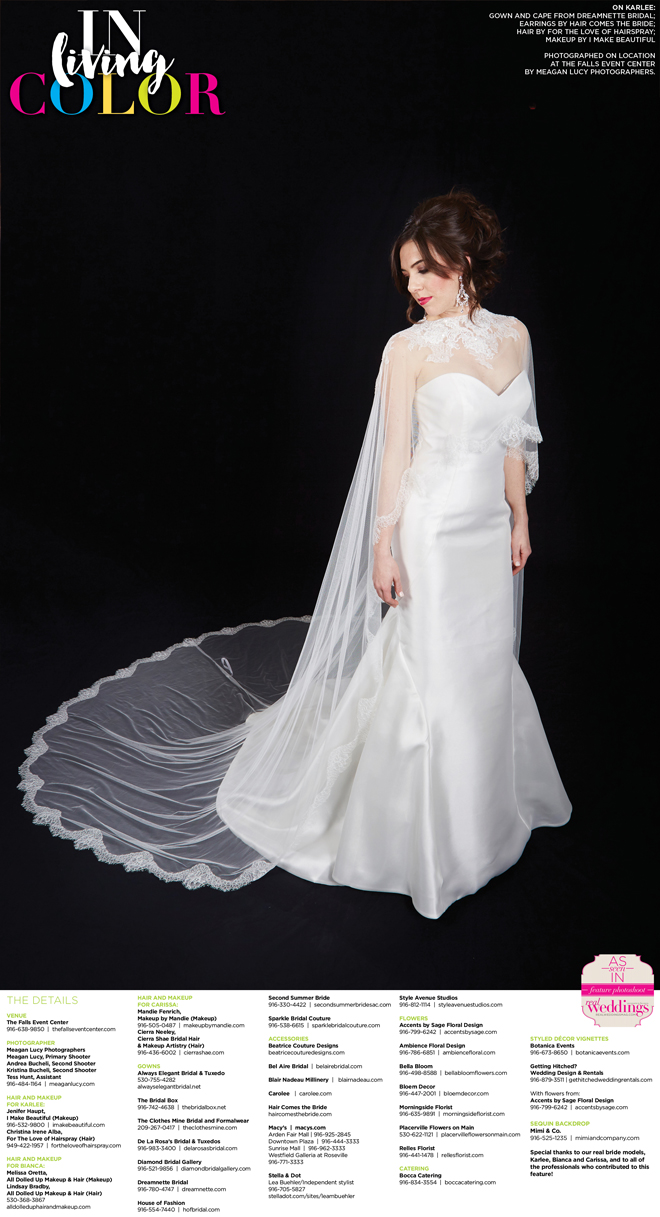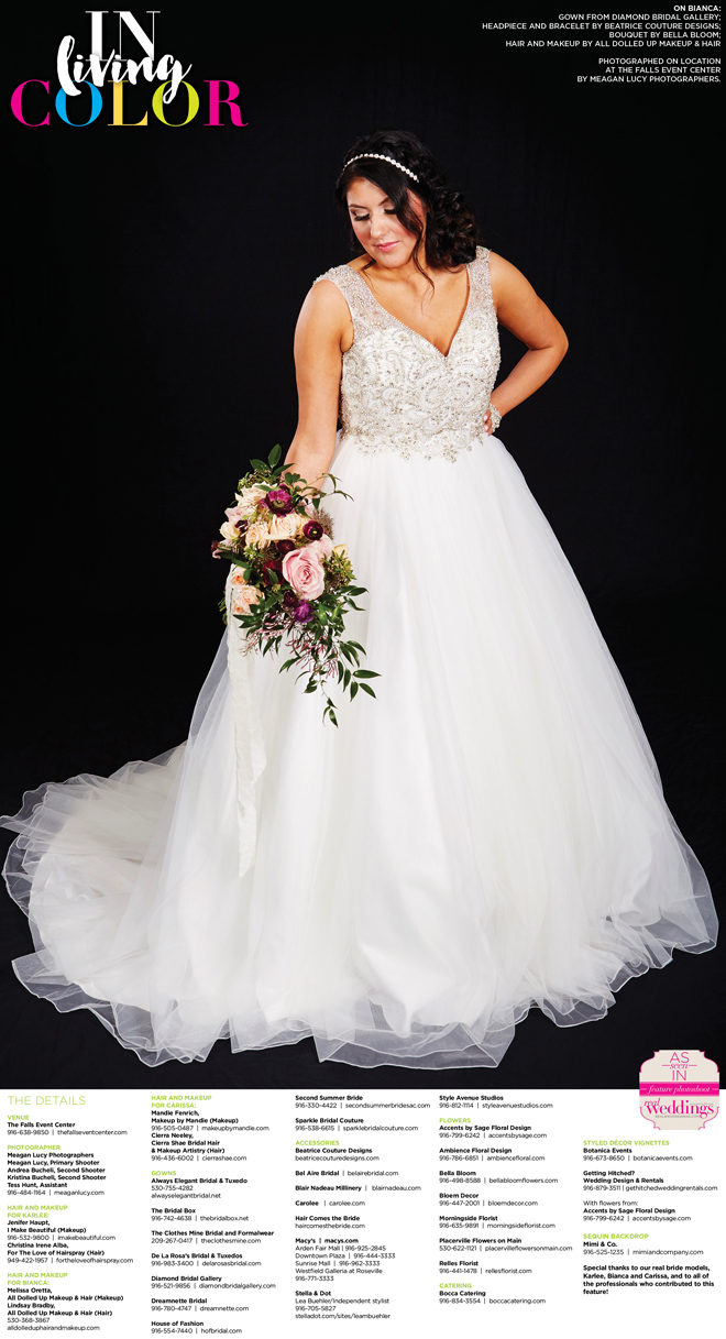 The cover model finalist contest photo shoot Real Weddings Magazine team members who produced this editorial feature include: produced by Susie Baggett, Simran Dhami, Cait Herrera, Tatiana Jitari, Nathalia Kallan, Rachel Meeker, Desiree Patterson, Emily Peter, Aaron Roseli, Wendy Sipple, Leah Sisto and Megan Wiskus.