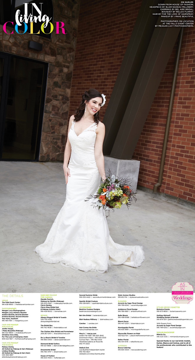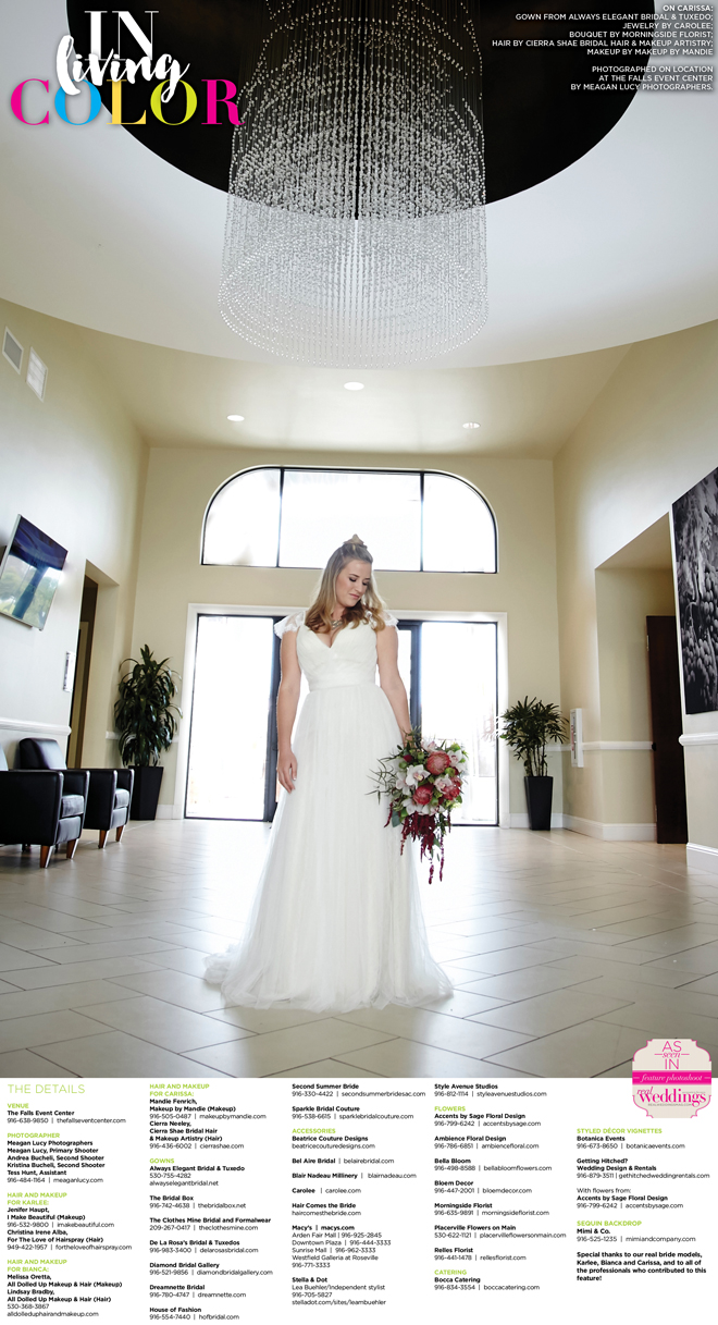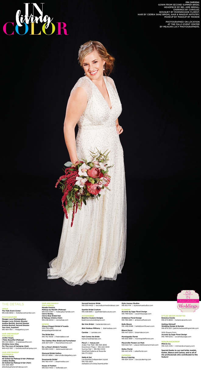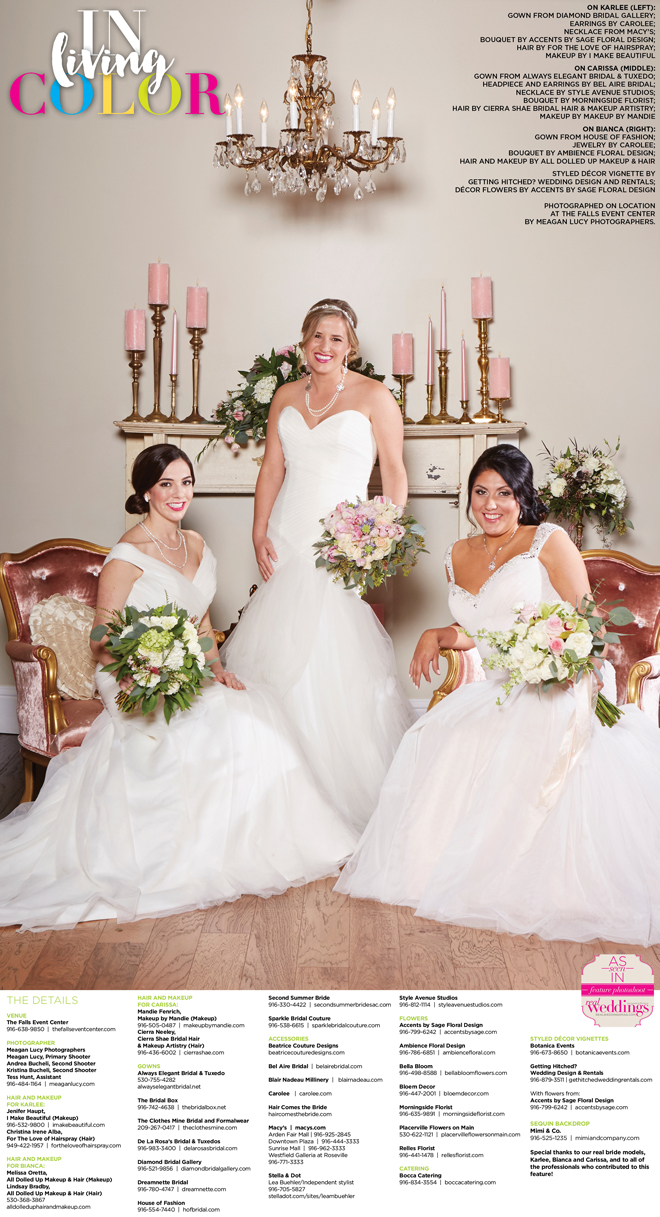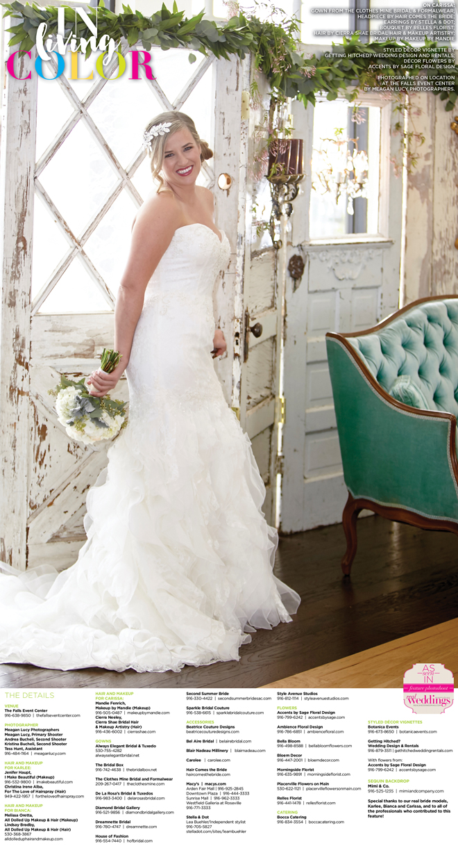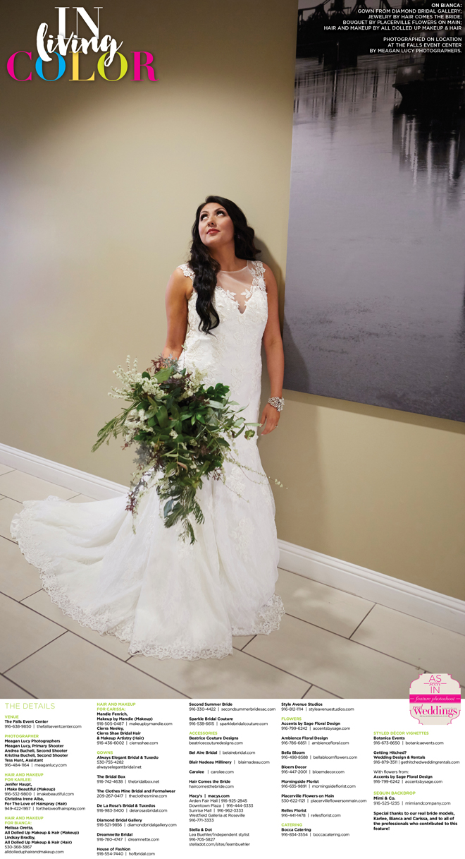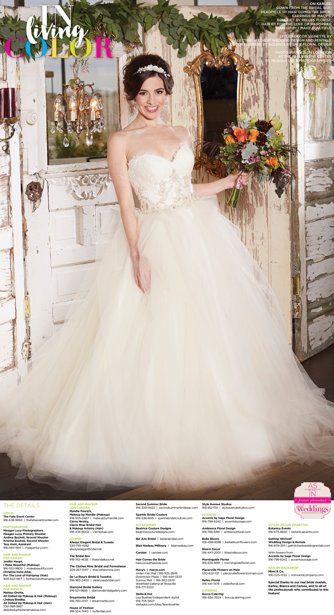 Stay tuned…in the coming weeks, you’ll get to see all of the gorgeous gowns, the amazing locale, the beautiful bouquets, the fabulous hair and makeup, and all of the wonderful accessories all caught by Meagan Lucy Photographers, in our upcoming blog post series, “In Living Color.”