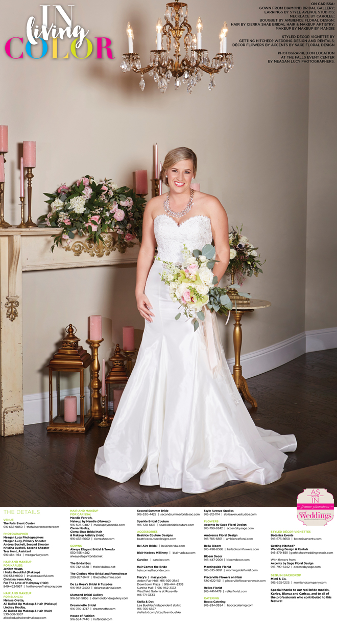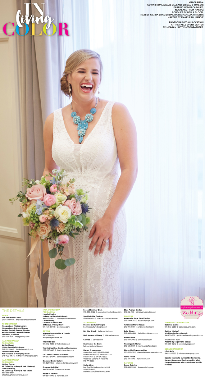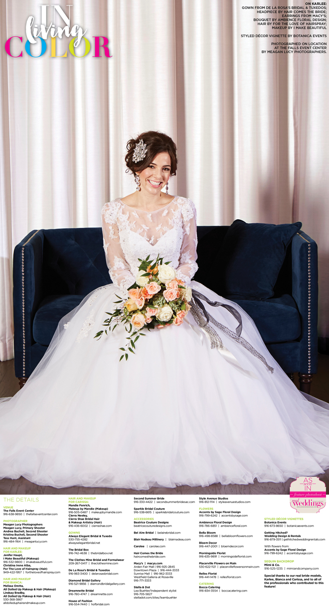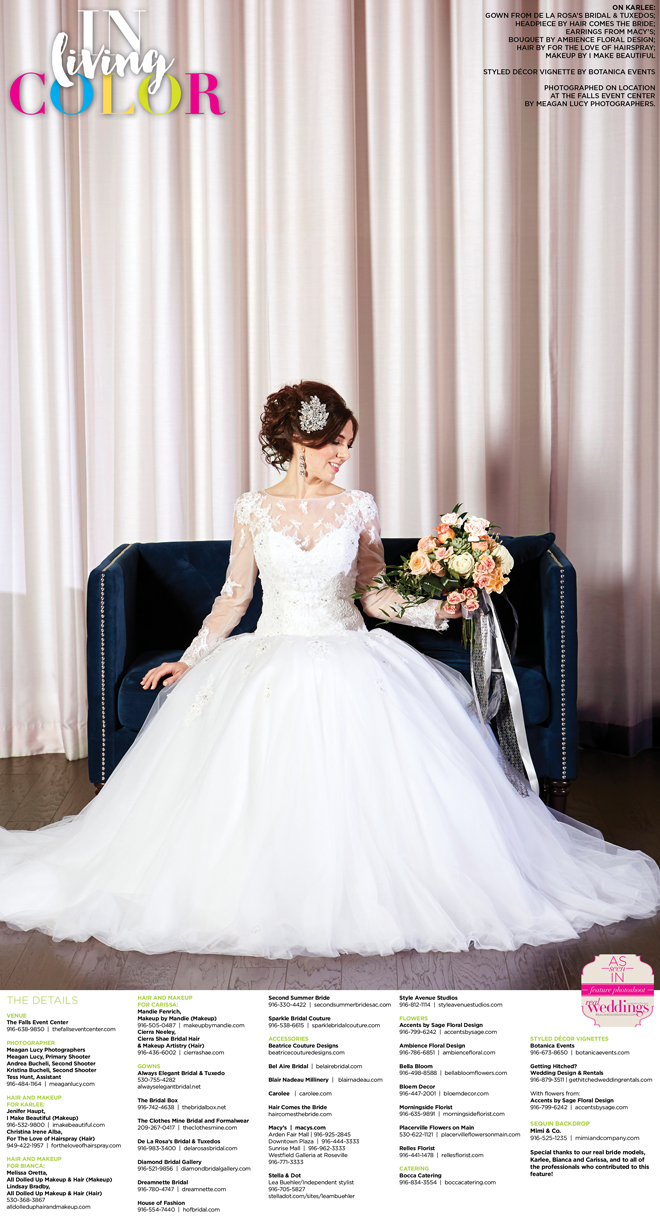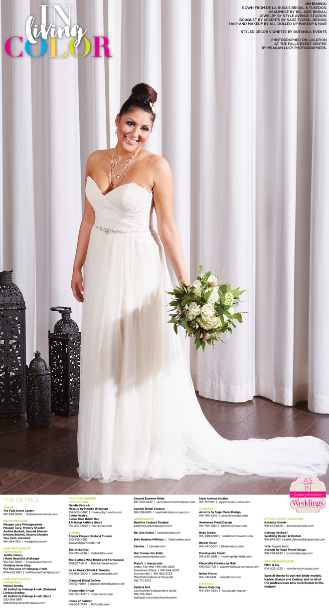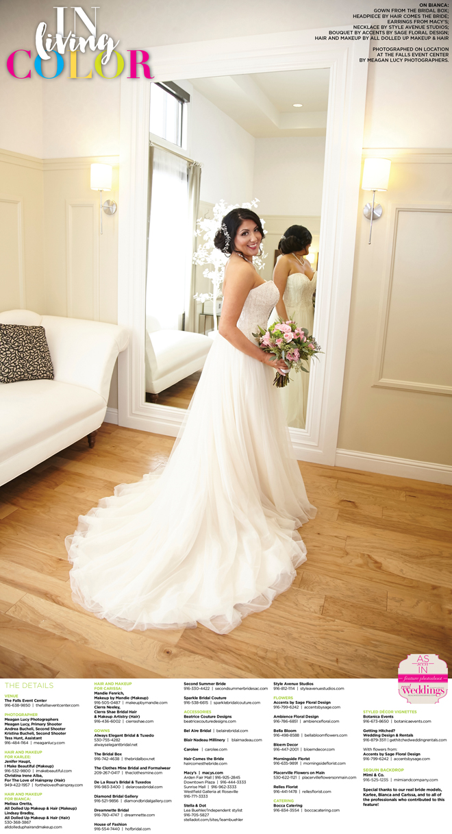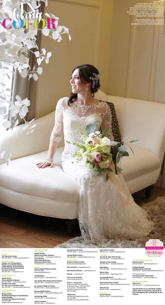 Stay tuned…in the coming weeks, you’ll get to see all of the gorgeous gowns, the amazing locale, the beautiful bouquets, the fabulous hair and makeup, and all of the wonderful accessories all caught by Meagan Lucy Photographers, in our upcoming blog post series, “In Living Color.”
