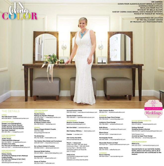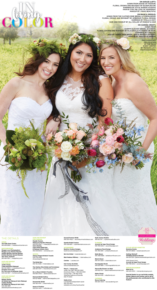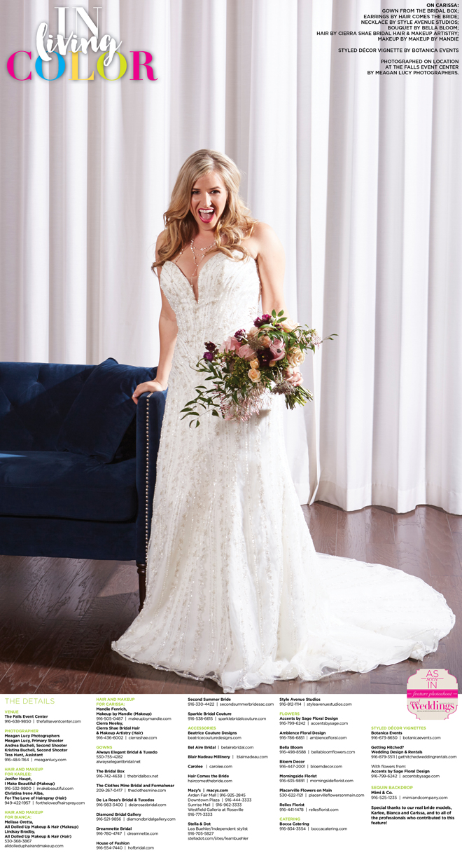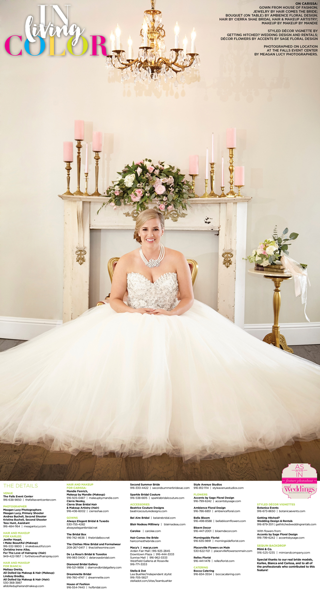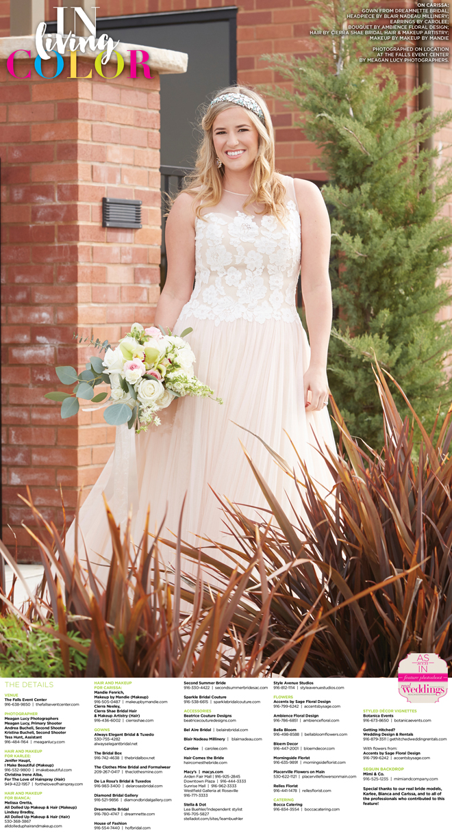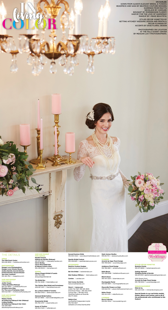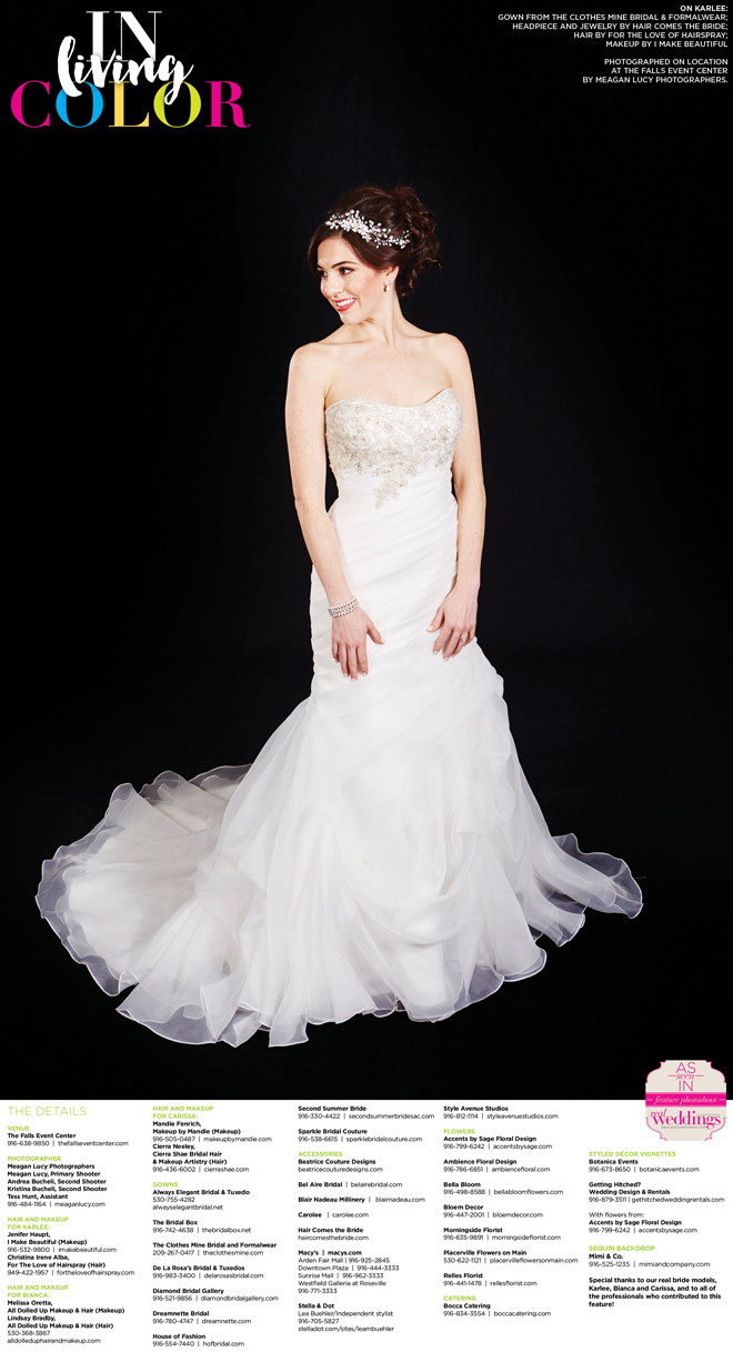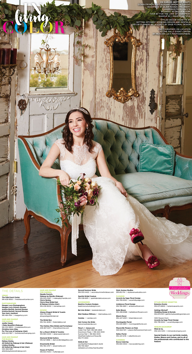 Stay tuned…in the coming weeks, you’ll get to see all of the gorgeous gowns, the amazing locale, the beautiful bouquets, the fabulous hair and makeup, and all of the wonderful accessories all caught by Meagan Lucy Photographers, in our upcoming blog post series, “In Living Color.”