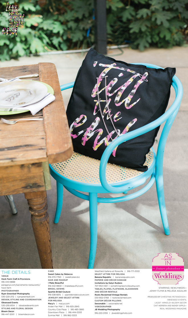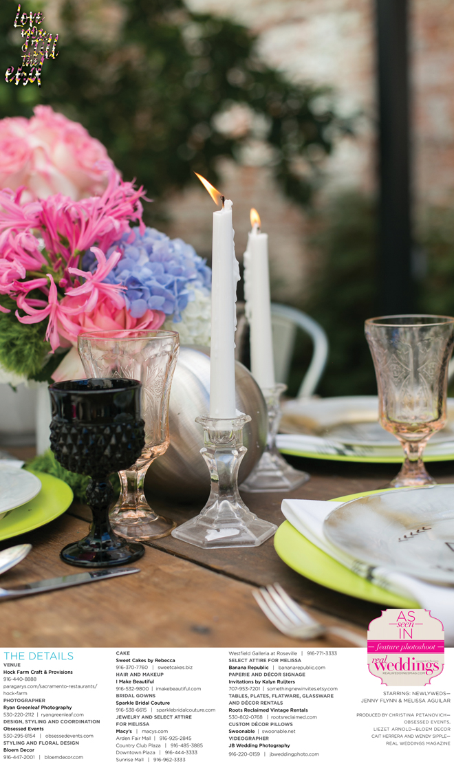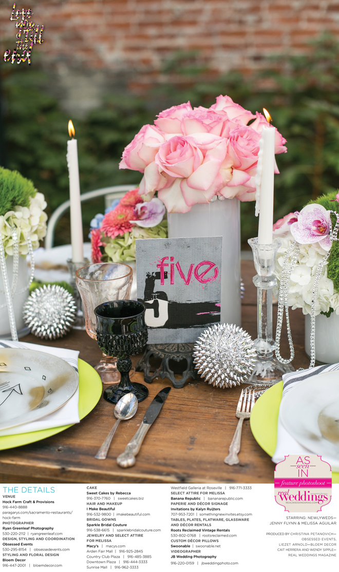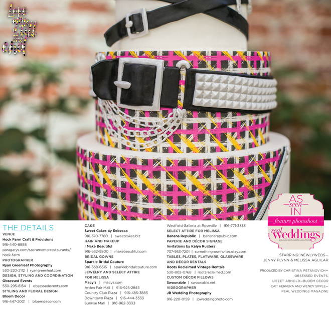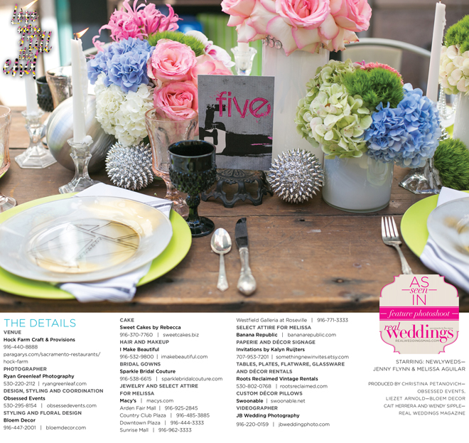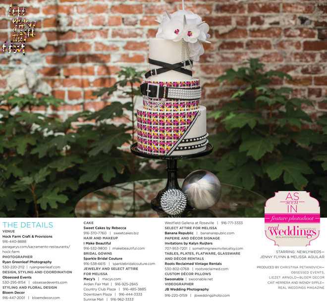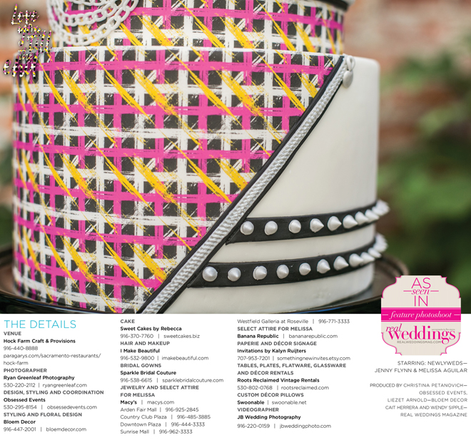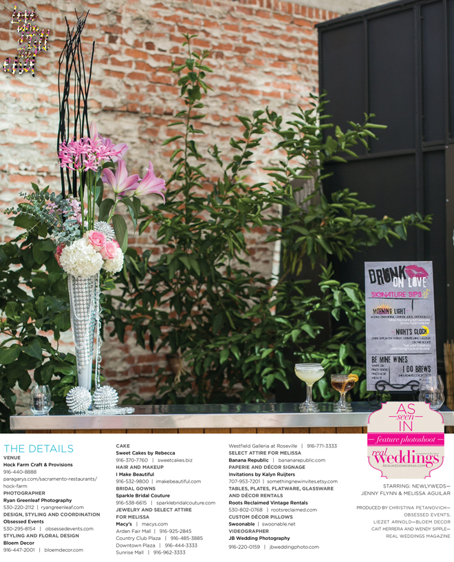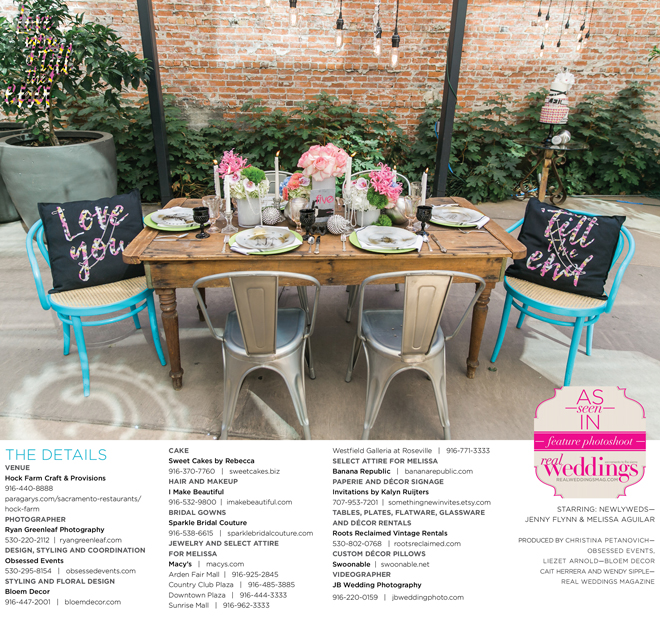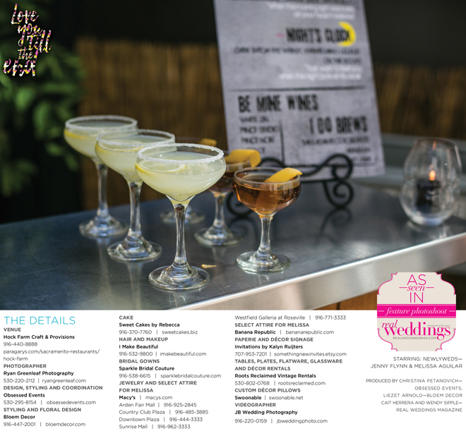 Special thanks to our real couple models, Jenny Flynn and Melissa Aguilar, and to all of the professionals who contributed to this feature!