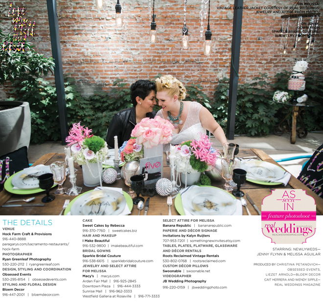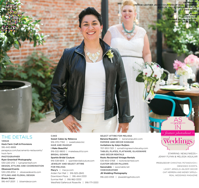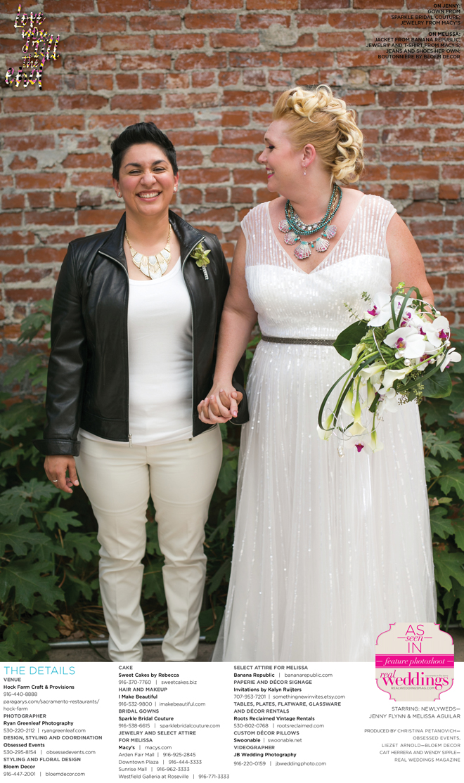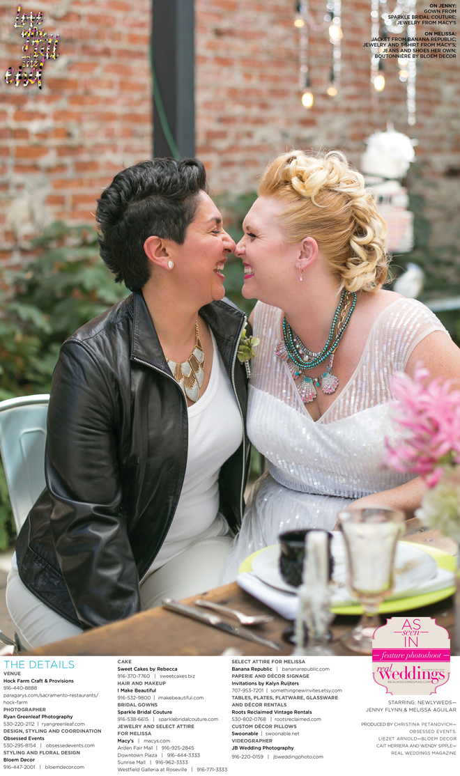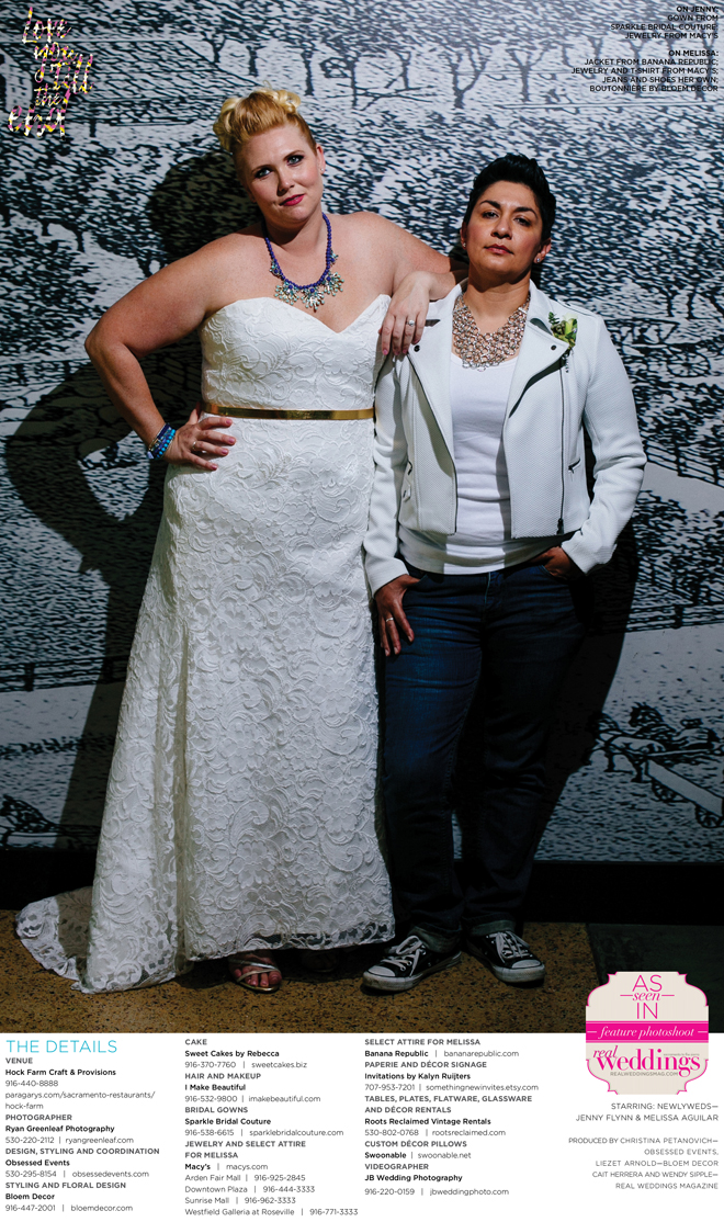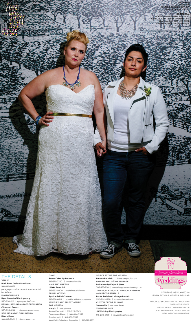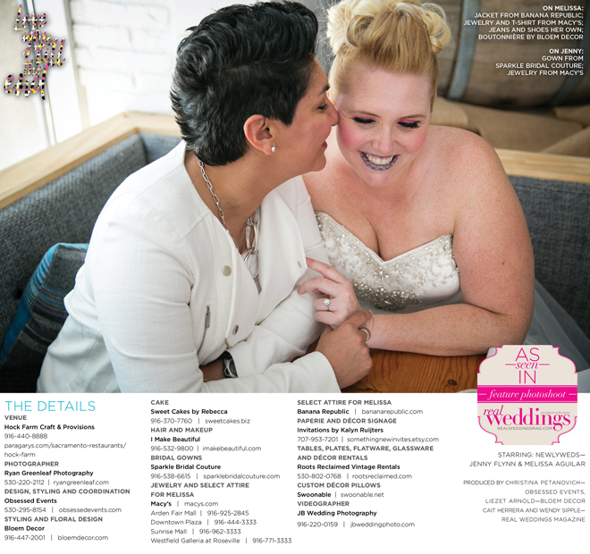 Special thanks to our real couple models, Jenny Flynn and Melissa Aguilar, and to all of the professionals who contributed to this feature!