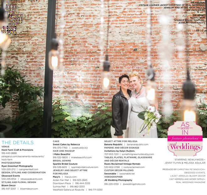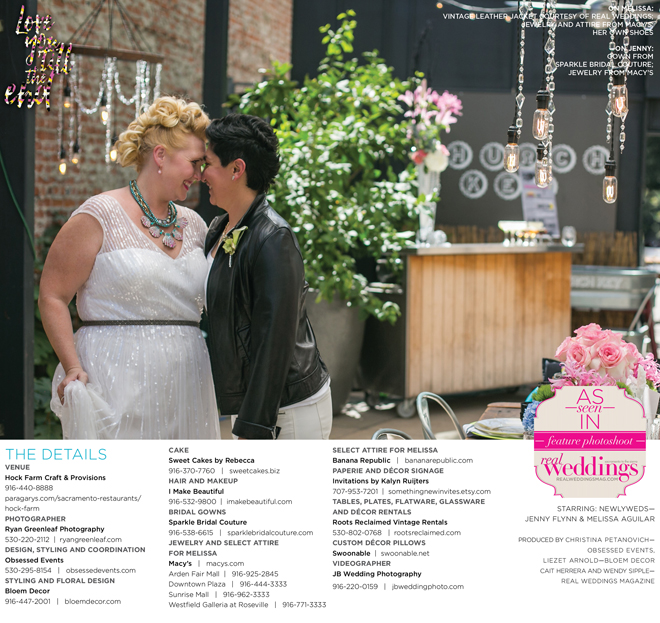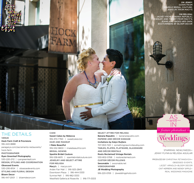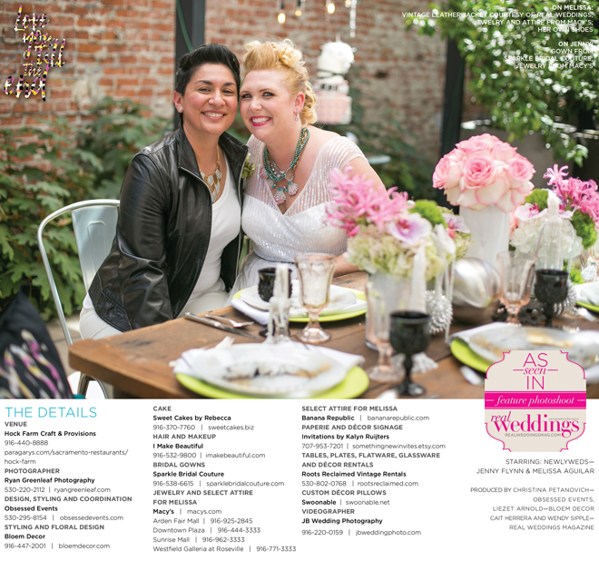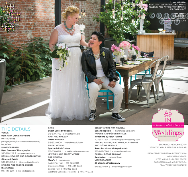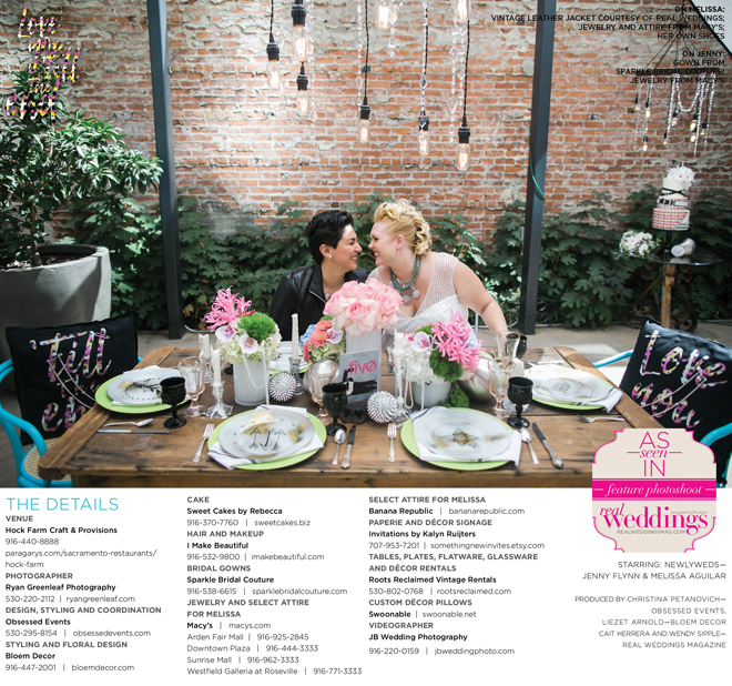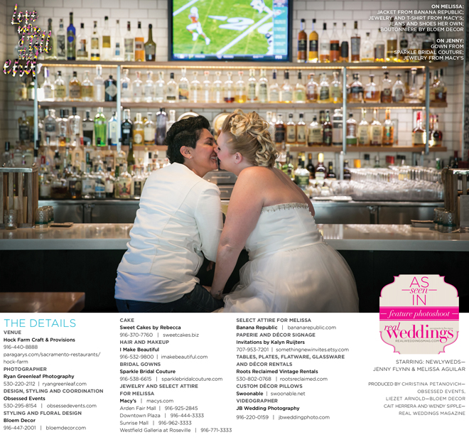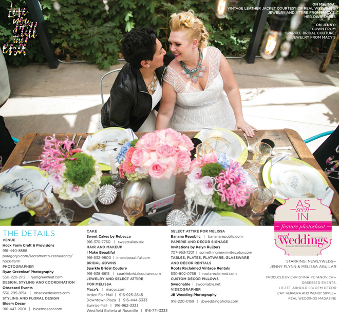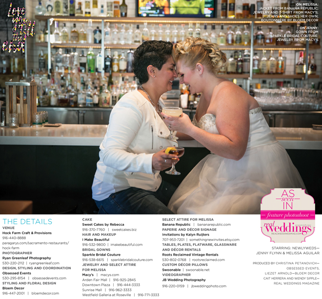 Special thanks to our real couple models, Jenny Flynn and Melissa Aguilar, and to all of the professionals who contributed to this feature!