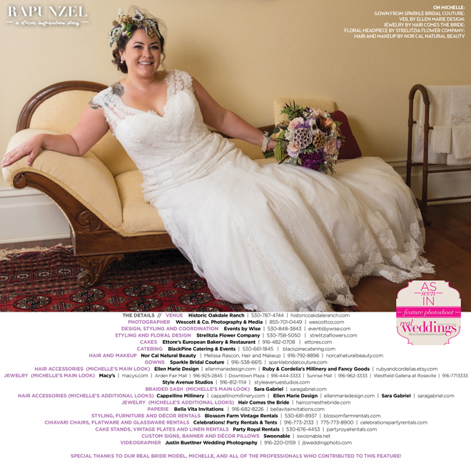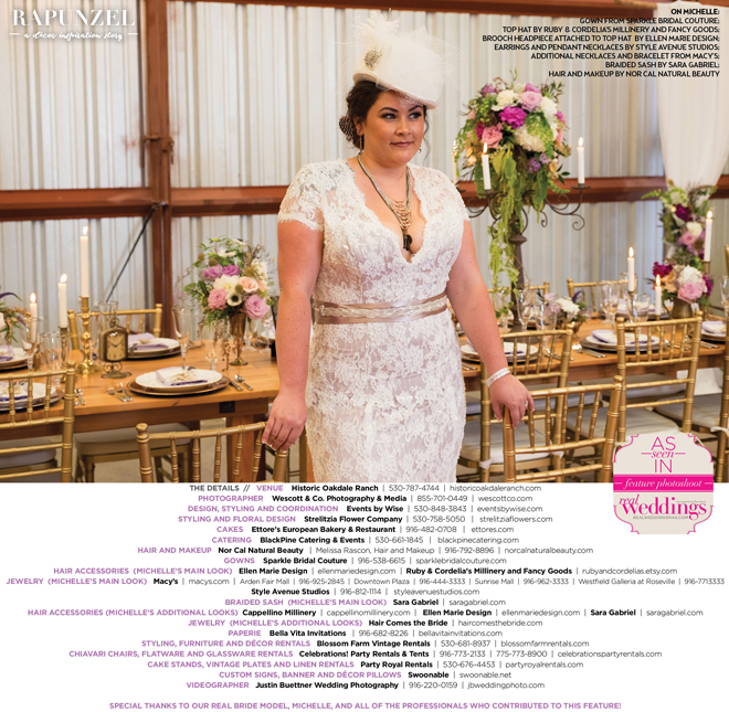 Special thanks to our real bride model, Michelle, and all of the professionals who contributed to this feature!