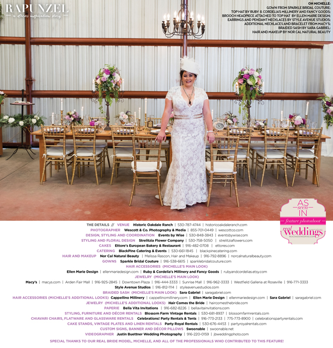 Special thanks to our real bride model, Michelle, and all of the professionals who contributed to this feature!