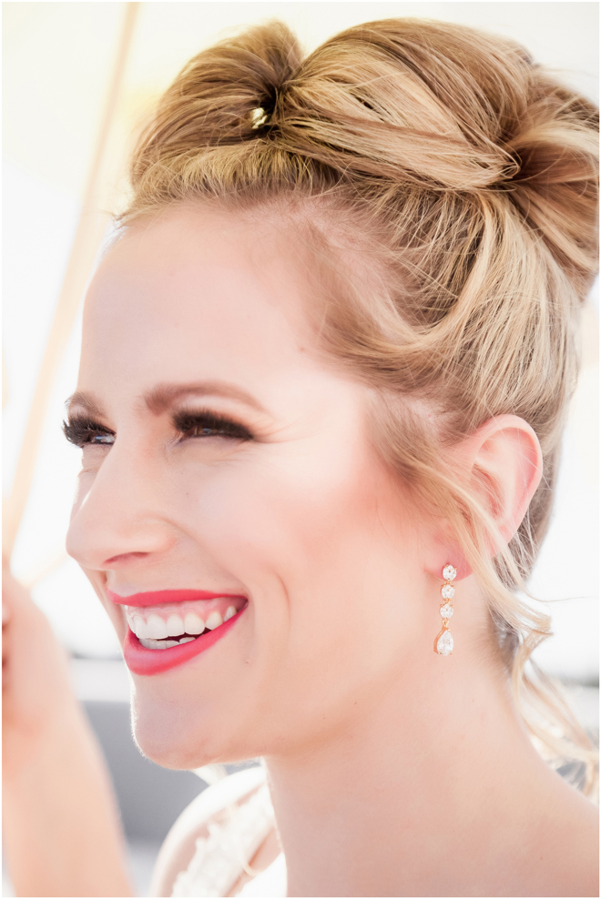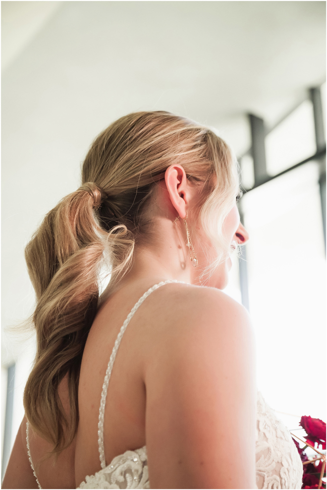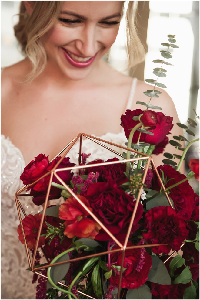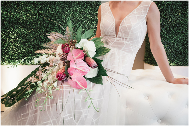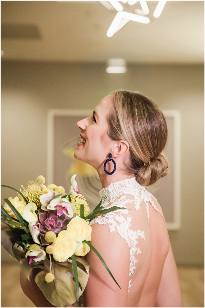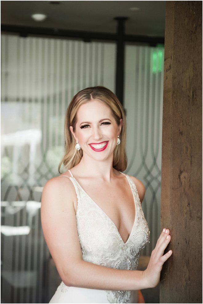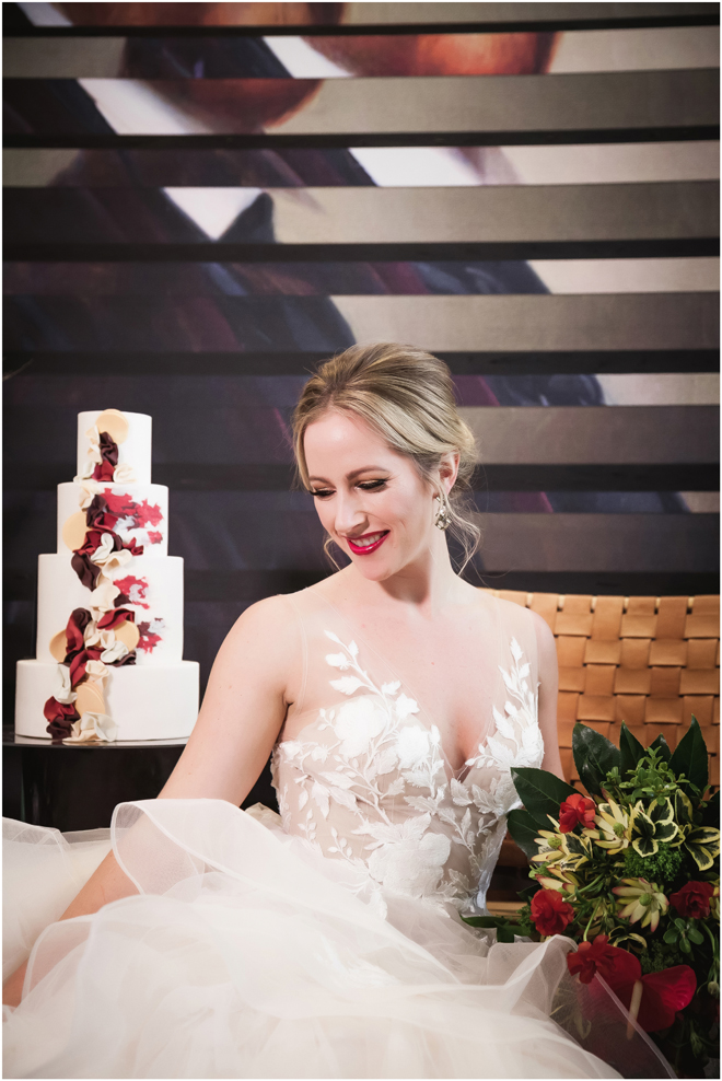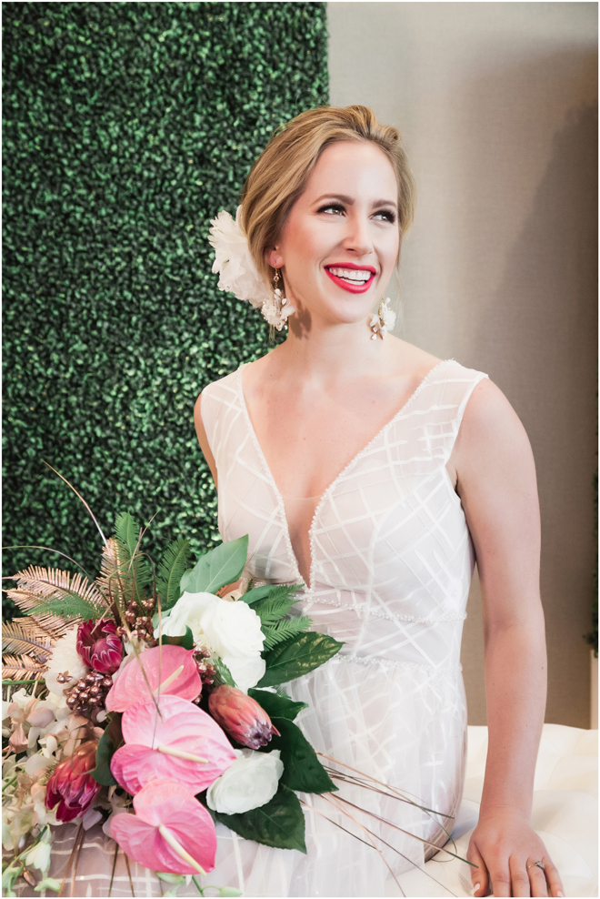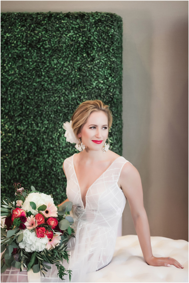 Gown from The Clothes Mine; Earrings from Macy’s; Bouquet by Visual Impact Design; Hair and makeup by All Dolled Up Hair and Makeup Artistry; Photo by 2 Girls 20 Cameras, on location at Kimpton Sawyer Hotel