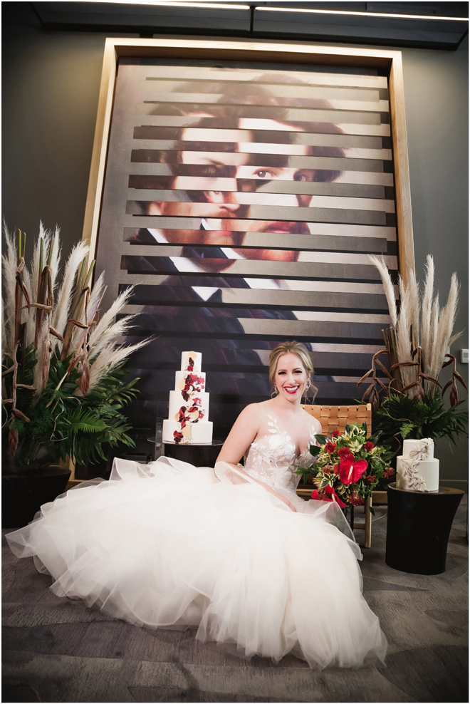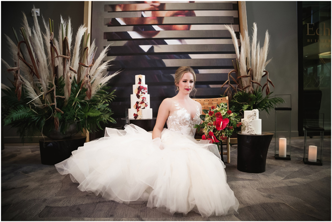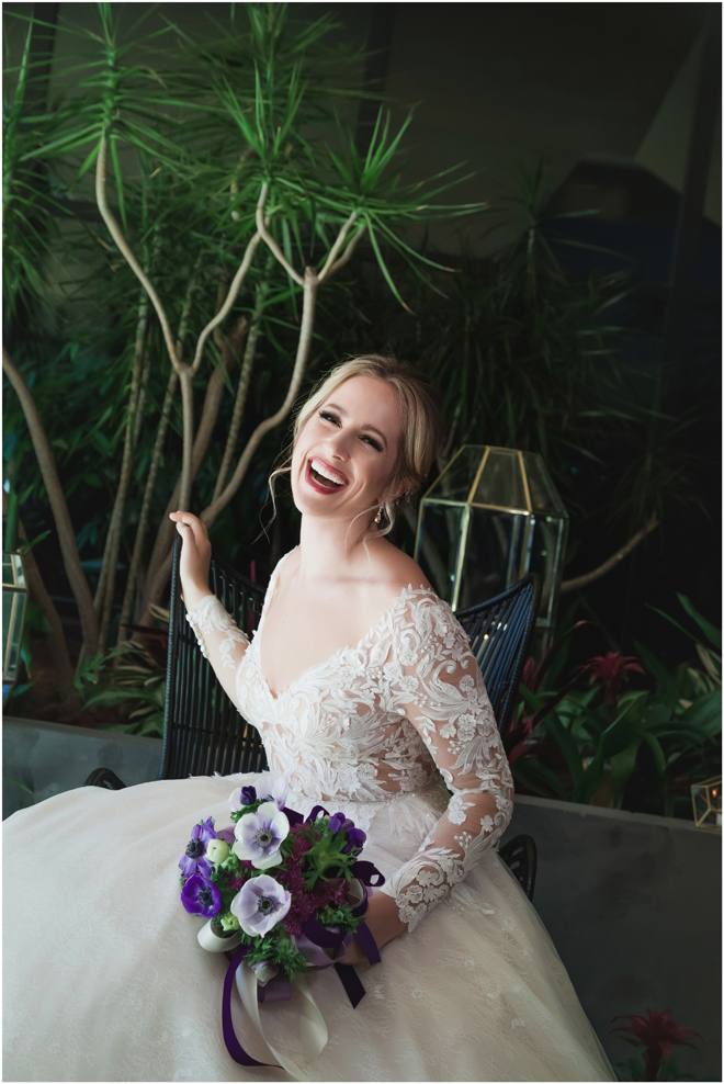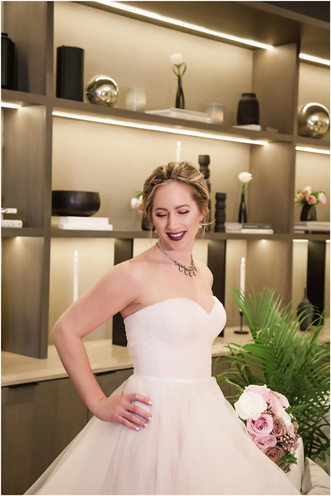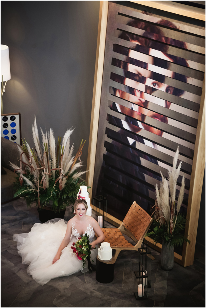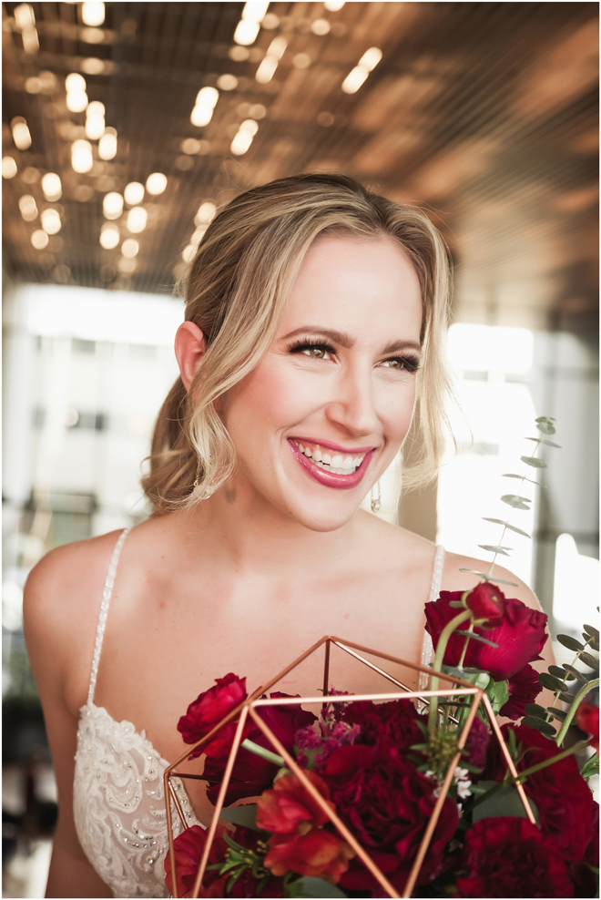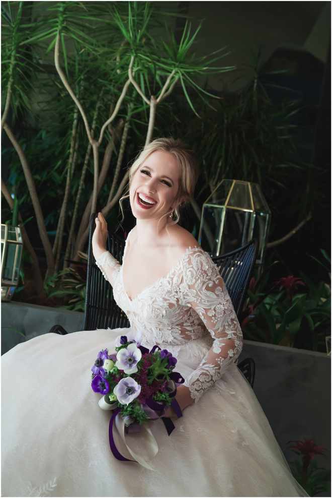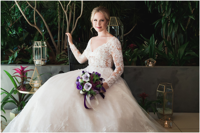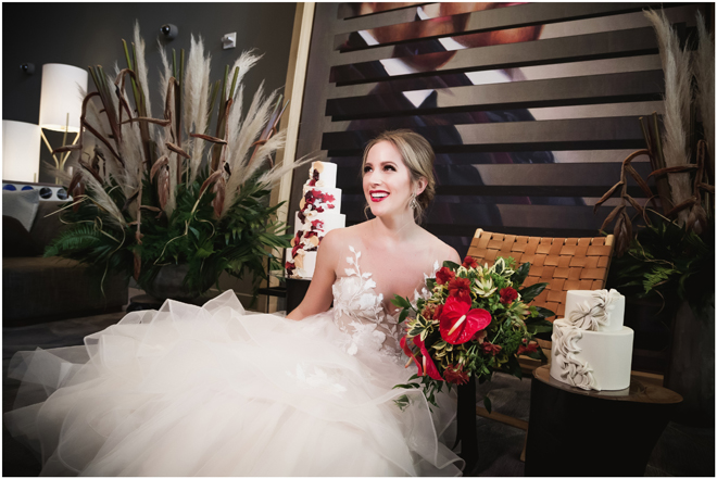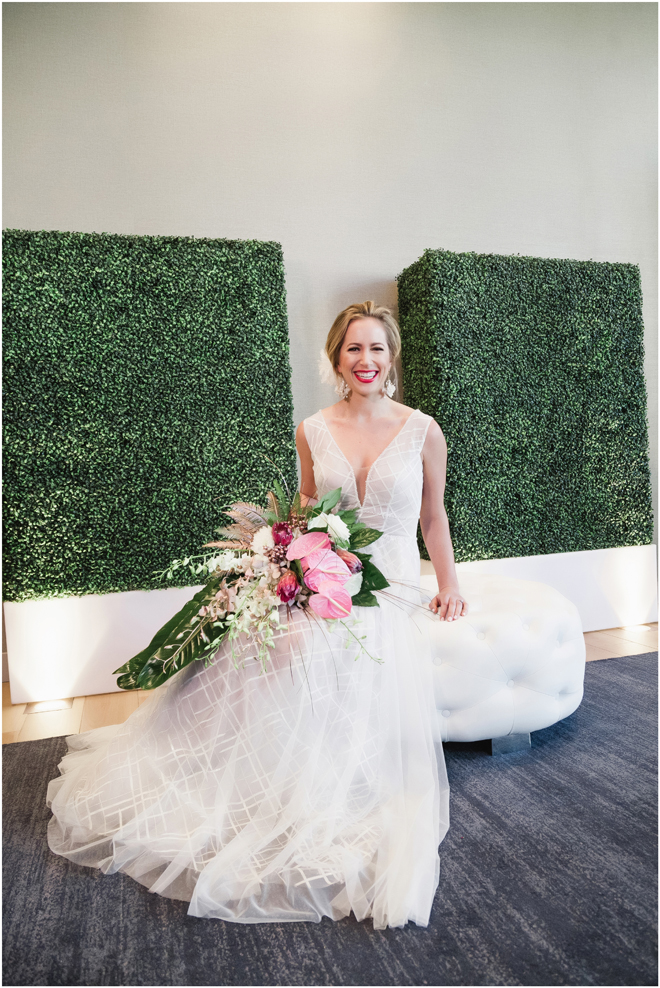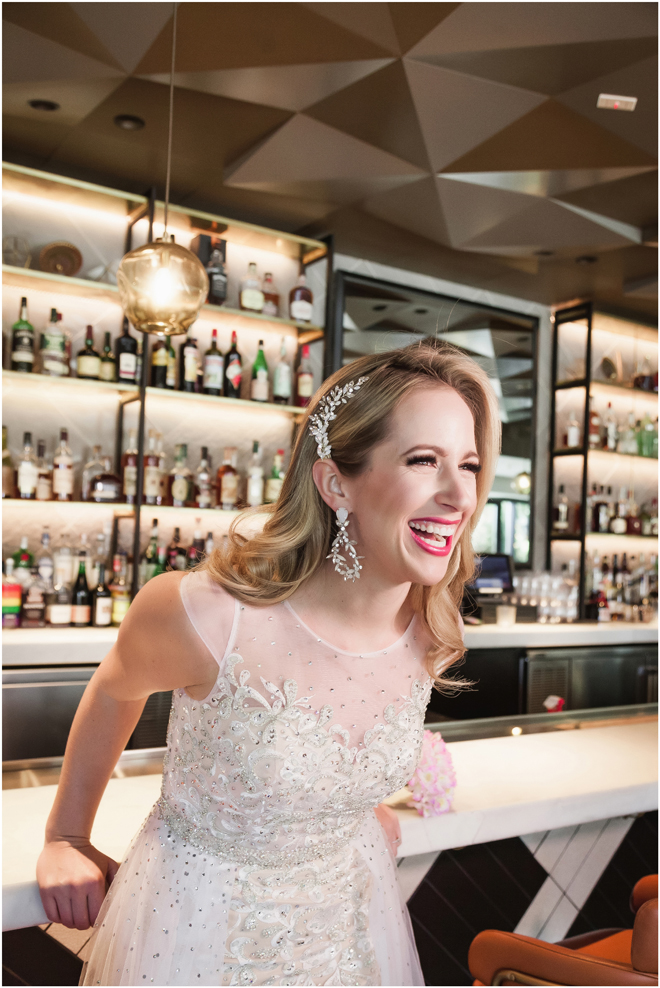 Gown from The Bridal Box; Earrings by Luxurious Bridal; Bouquet by Hillside Blooms Floristry; Hair and makeup by All Dolled Up Hair and Makeup Artistry; Photo by 2 Girls 20 Cameras, on location at Kimpton Sawyer Hotel. Balloons by The Party Concierge