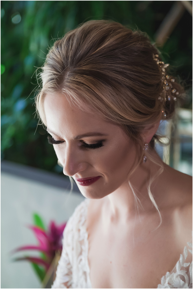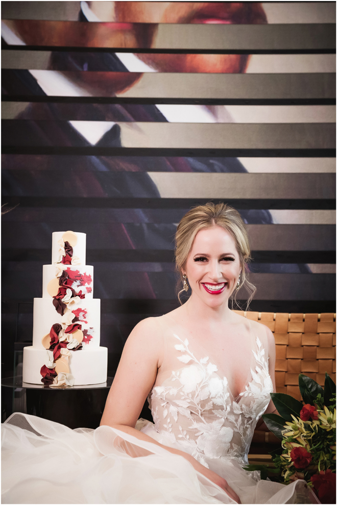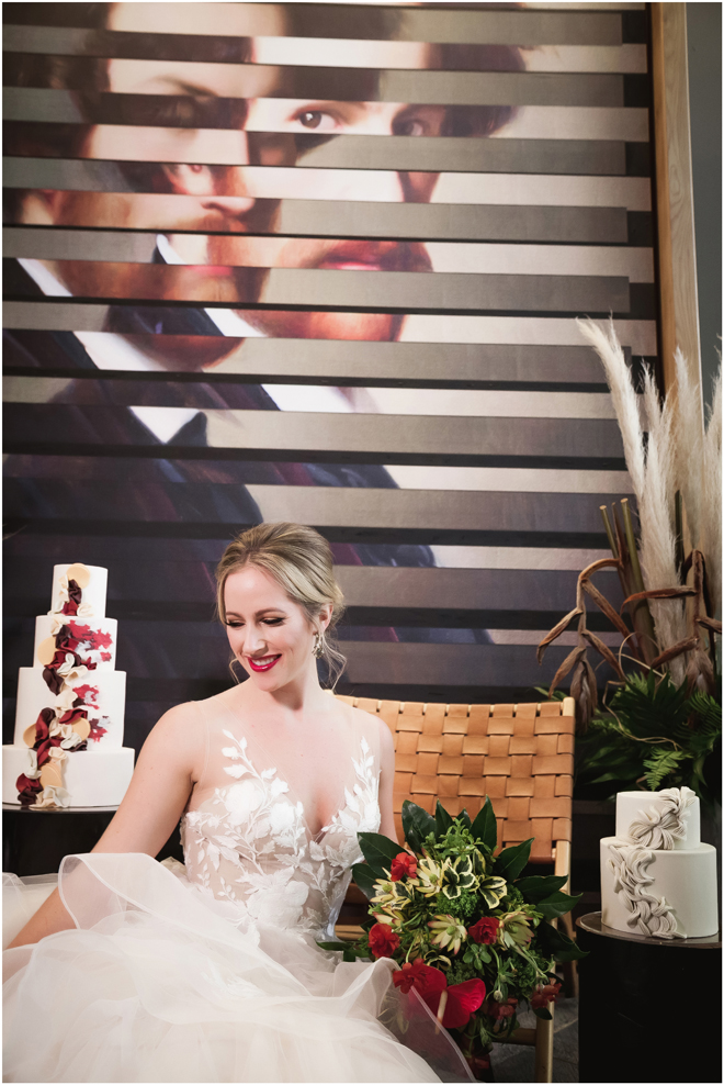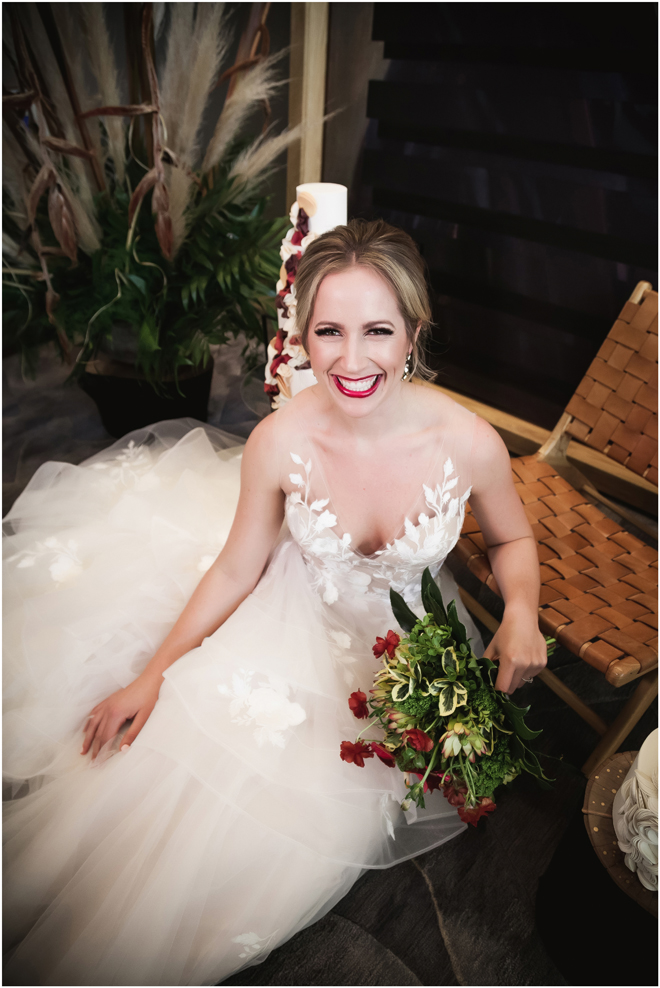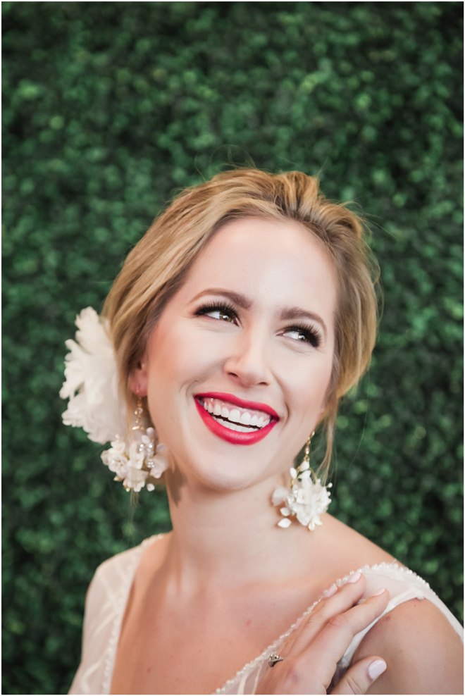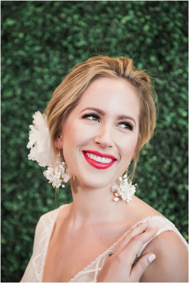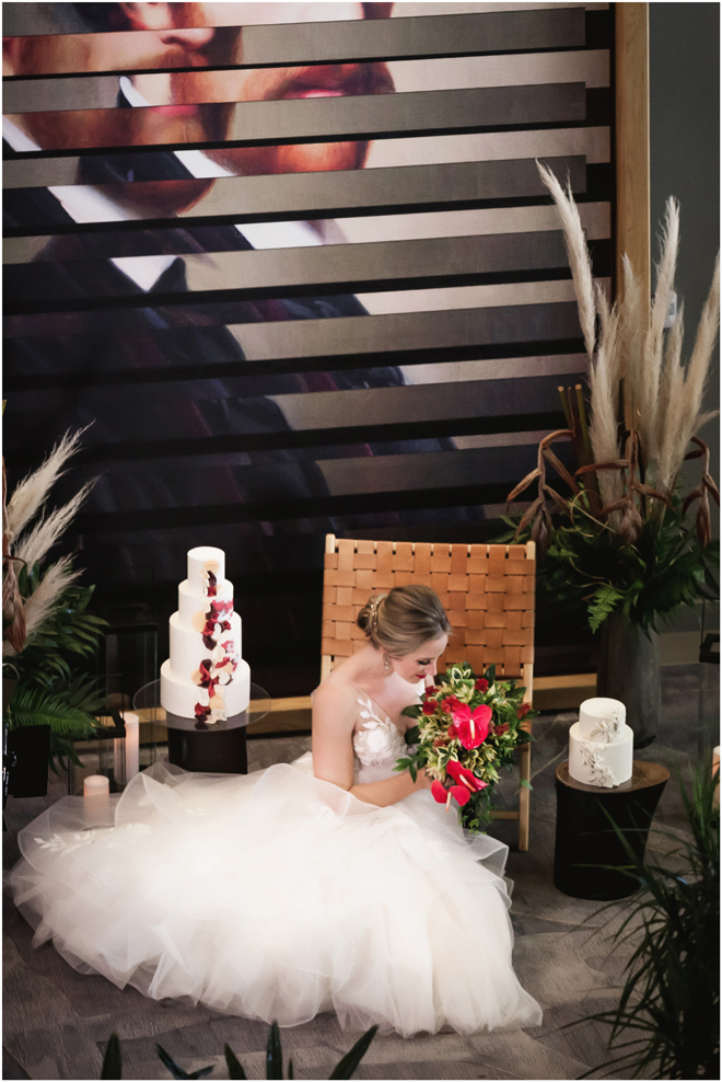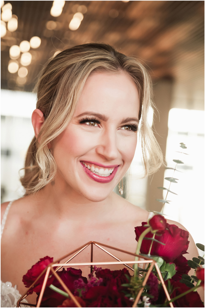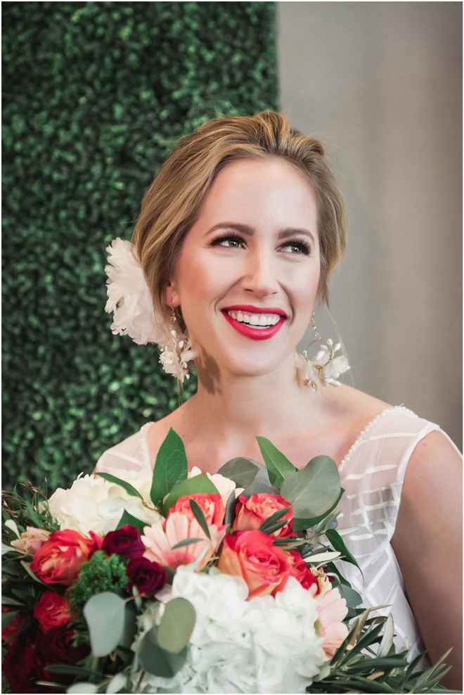 Gown from The Bridal Box; Earrings by Luxurious Bridal; Bouquet by Hillside Blooms Floristry; Hair and makeup by All Dolled Up Hair and Makeup Artistry; Photo by 2 Girls 20 Cameras, on location at Kimpton Sawyer Hotel. Balloons by The Party Concierge