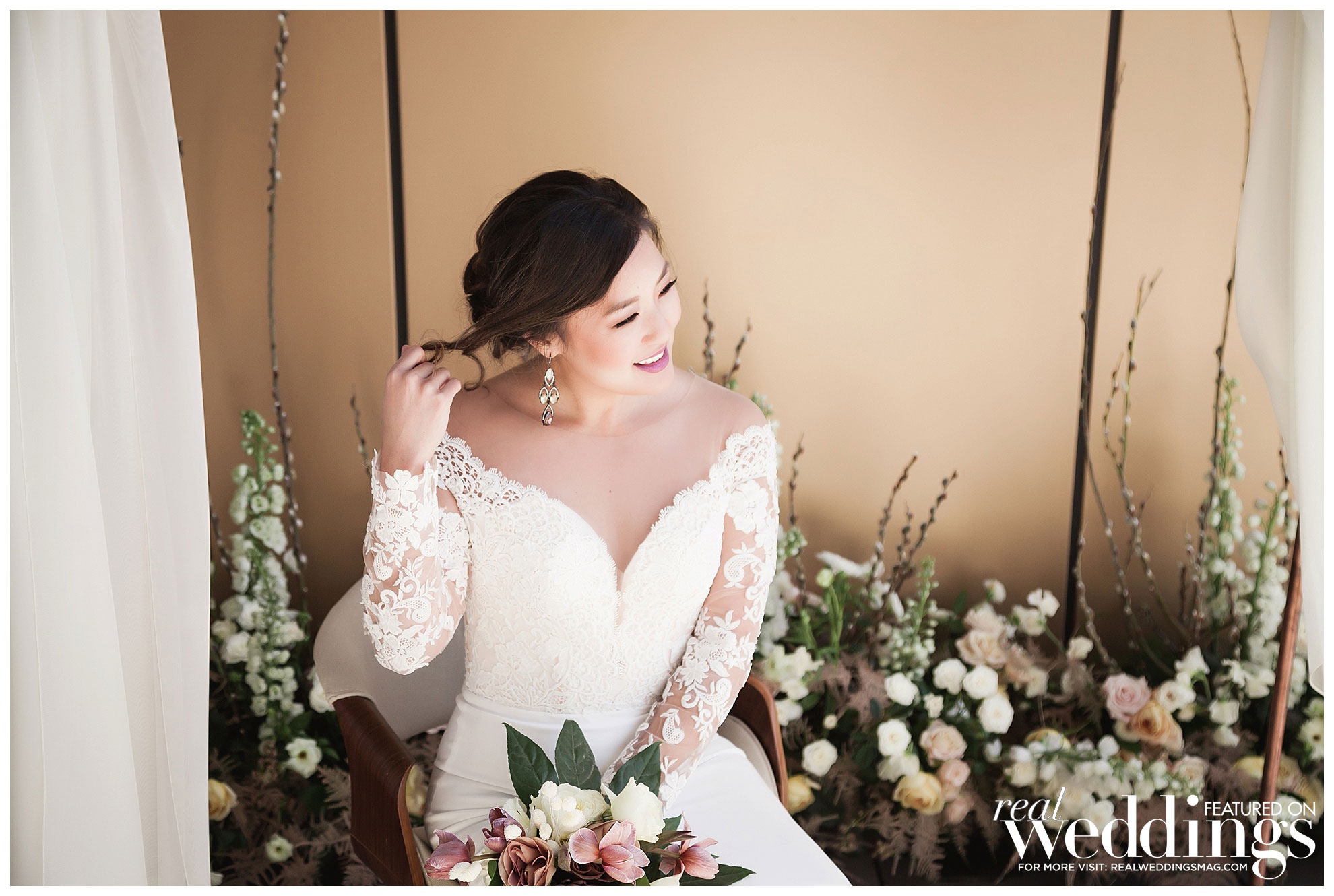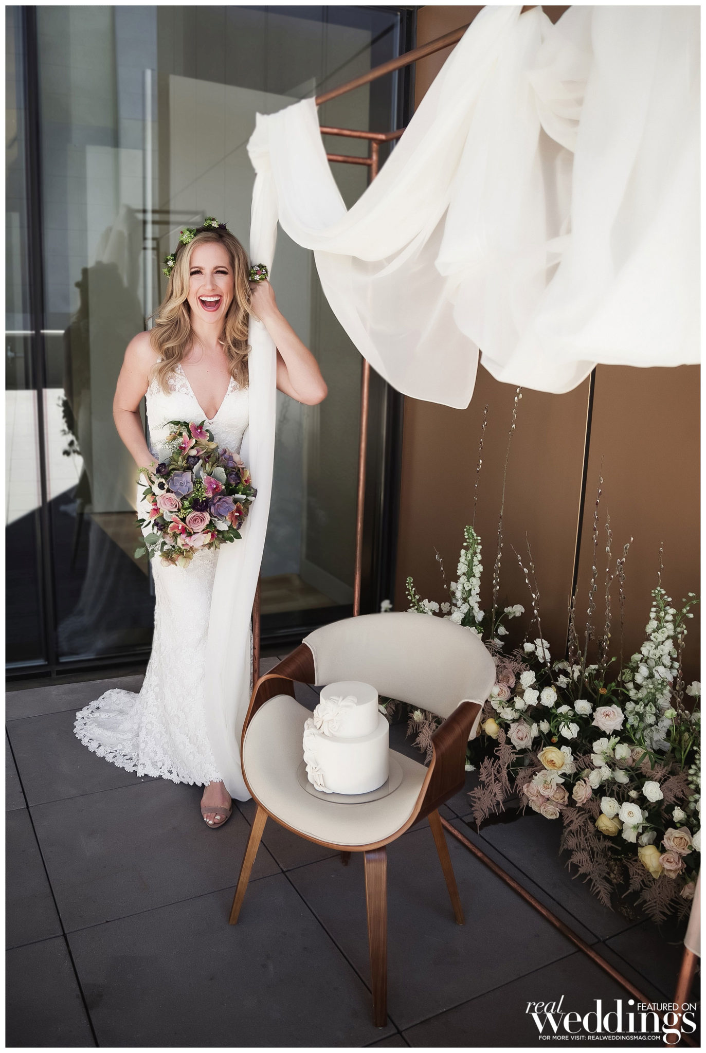 We have so much gorgeousness to share with you! Our first Cover Model Contest Photo Shoot featured real, local brides Olivia and Ericka and incredible sets by Ames Haus Design, and it was all captured by 2 Girls 20 Cameras. We had help from other talented local vendors so be sure to see The Details to see all the amazing contributors we had!