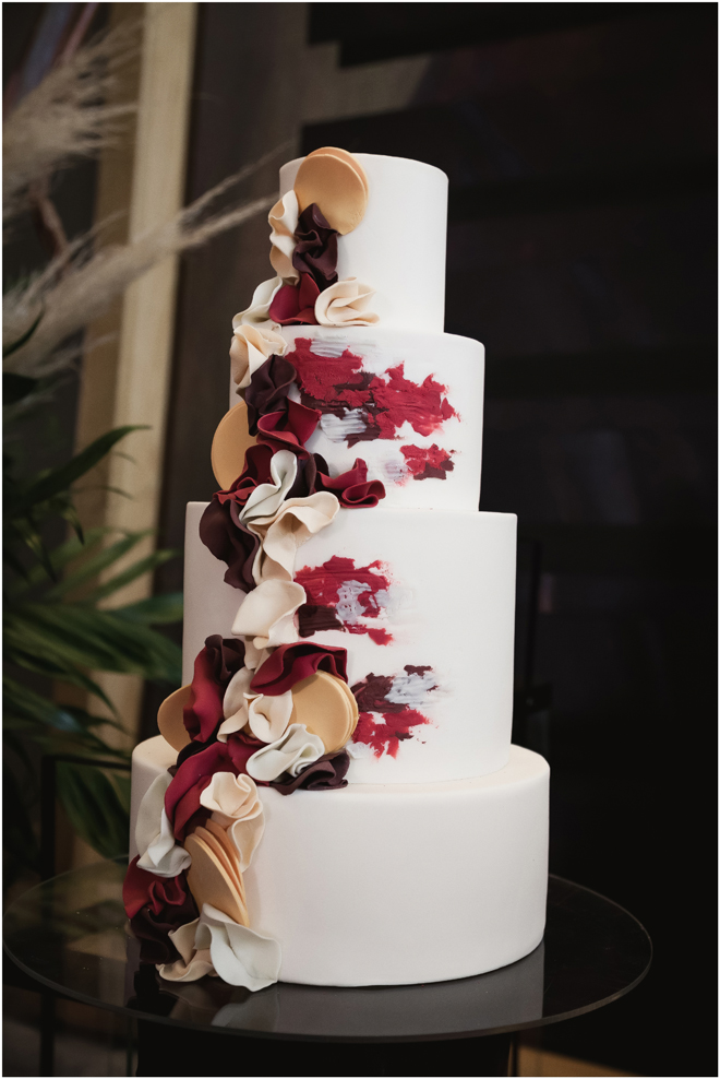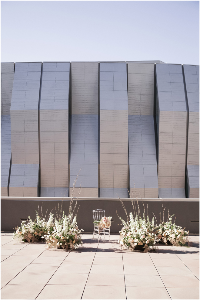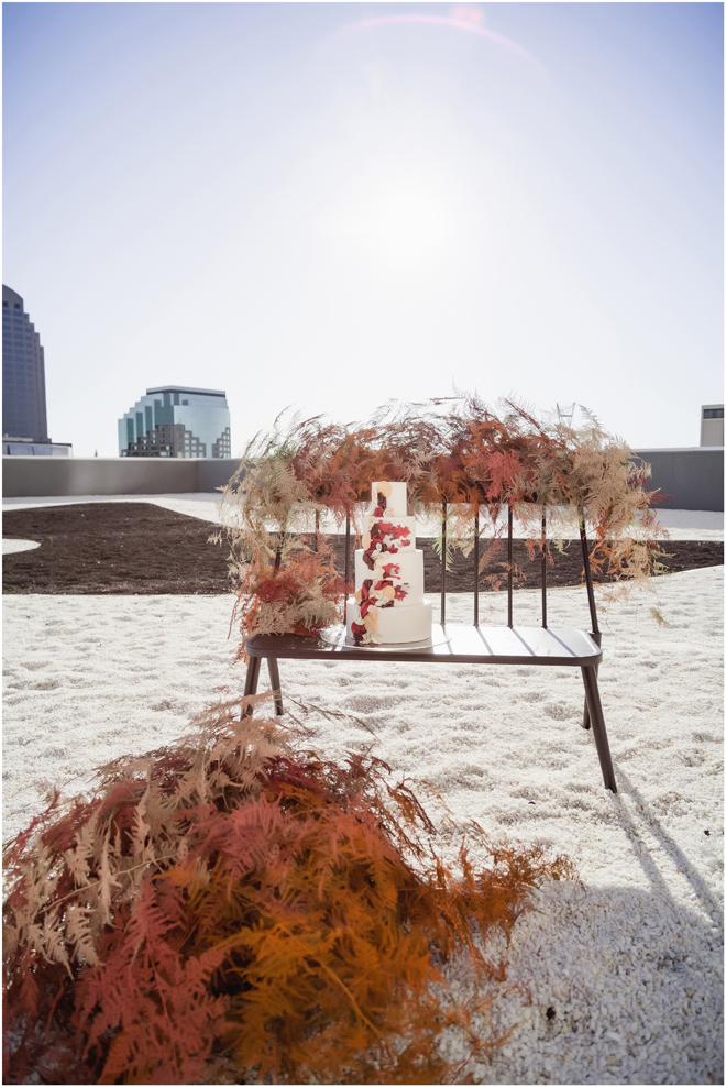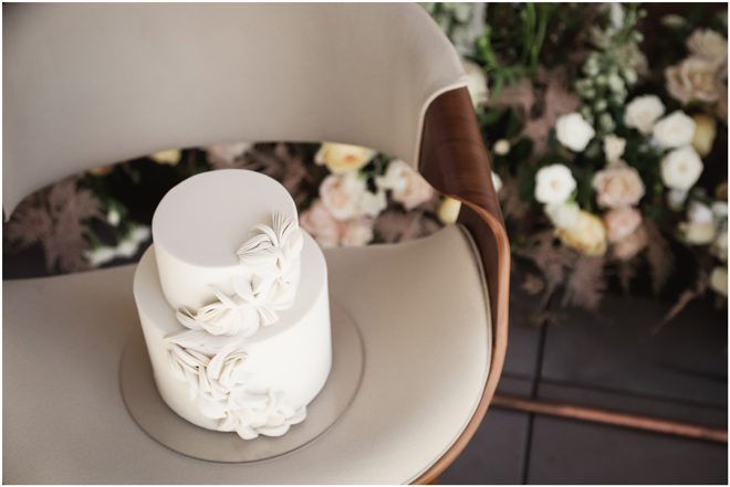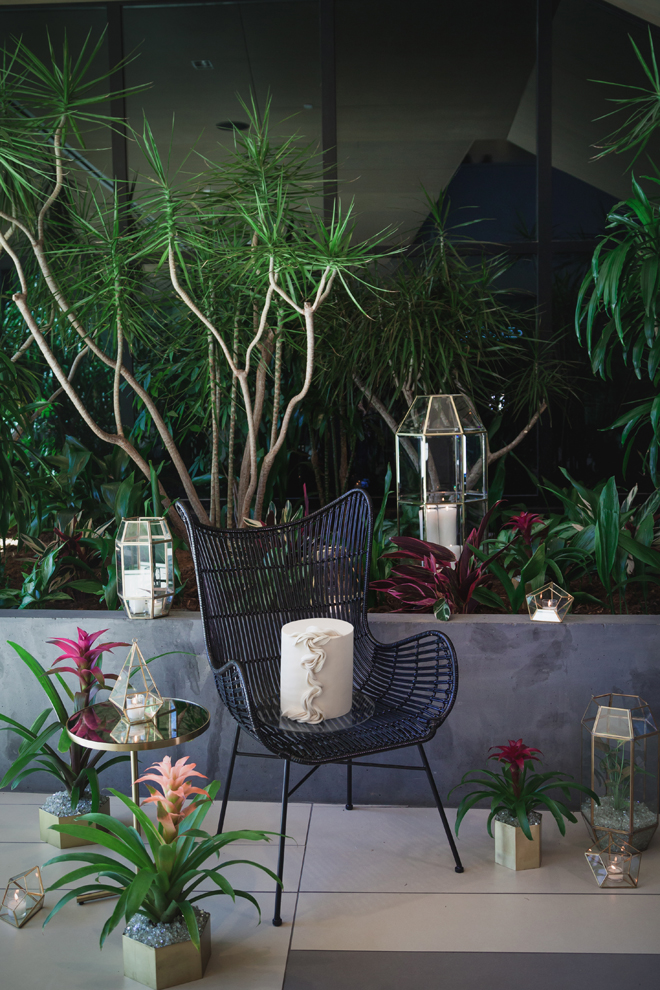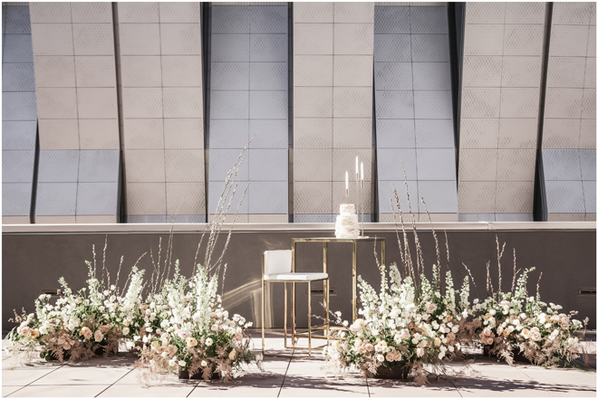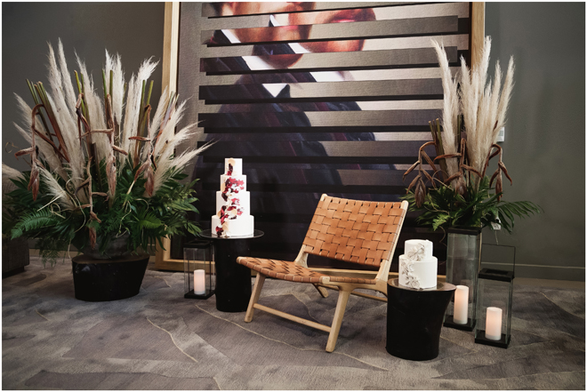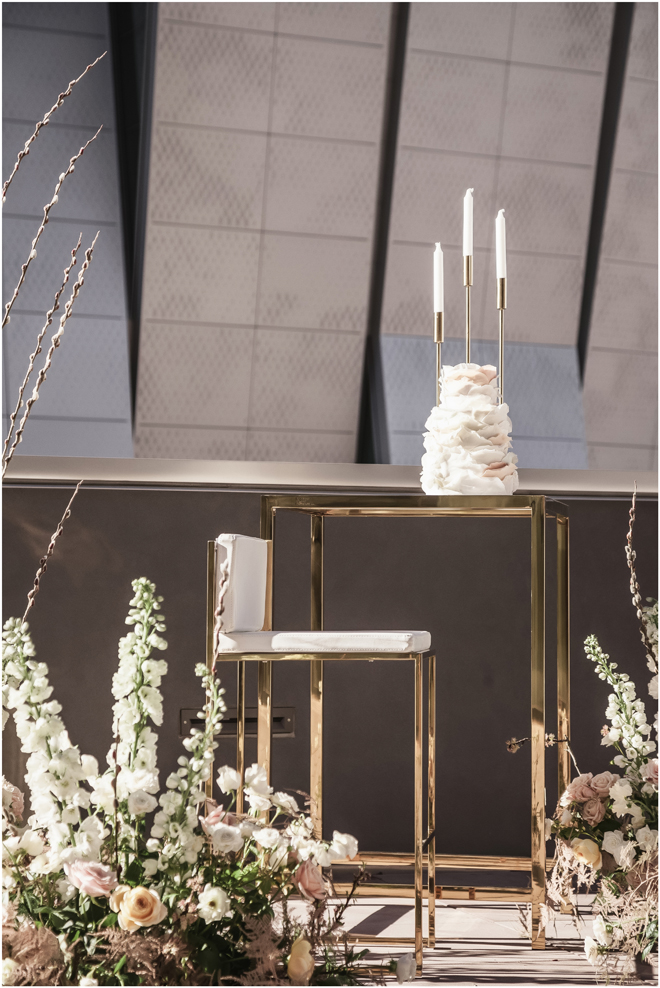 Set design by Ames Haus Design; Set flowers by Ames Haus Design with wholesale flowers from FiftyFlowers.com; Set cake by Batter Up Cakery