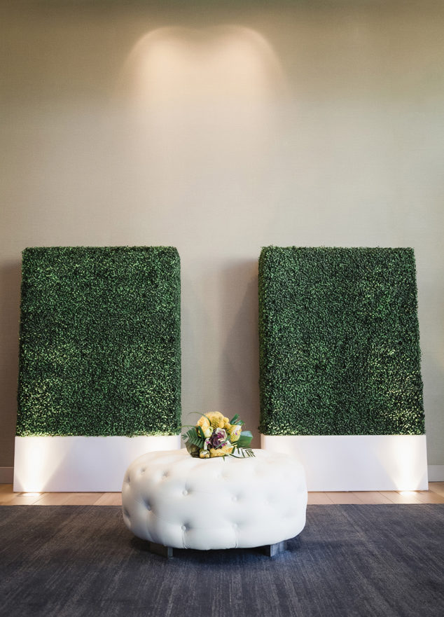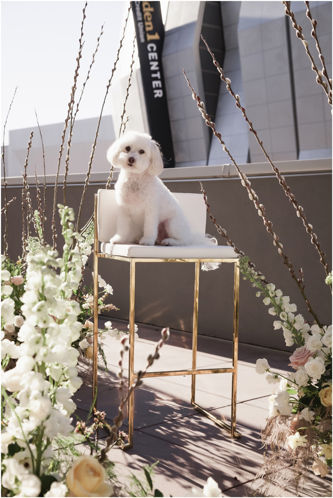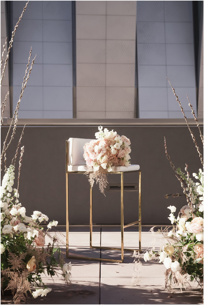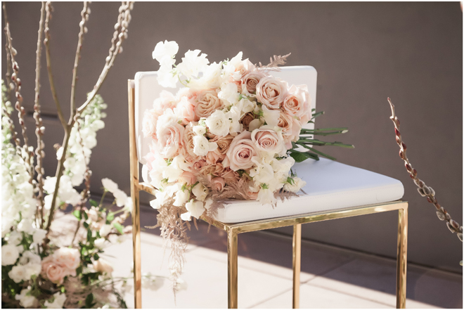 Set design by Ames Haus Design; Set furniture and boxwoods from Sacramento Event Co.; Bouquet by Bloem Decor
