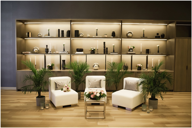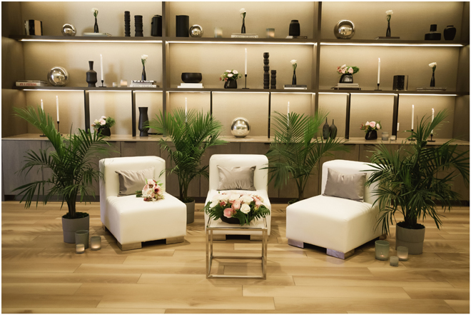 Set design by Ames Haus Design; Set flowers by Ames Haus Design with wholesale flowers from FiftyFlowers.com; Set furniture by Standard Party Rentals