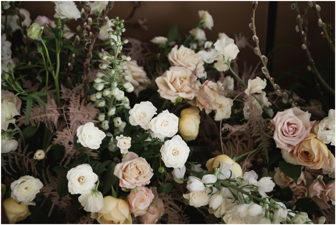 Set design by Ames Haus Design; Set flowers by Ames Haus Design with wholesale flowers from FiftyFlowers.com; Set decor from Blossom Farm Vintage Rentals; Set furniture from Sacramento Event Co.