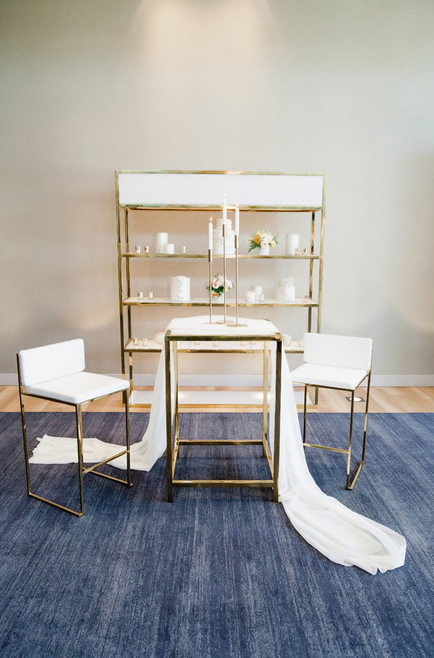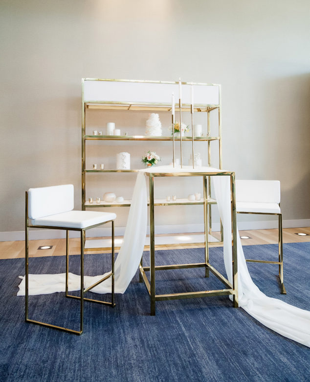 Set design by Ames Haus Design; Set flowers by Ames Haus Design with wholesale flowers from FiftyFlowers.com; Set decor from Blossom Farm Vintage Rentals; Set furniture from Sacramento Event Co.; Set cake by Batter Up Cakery