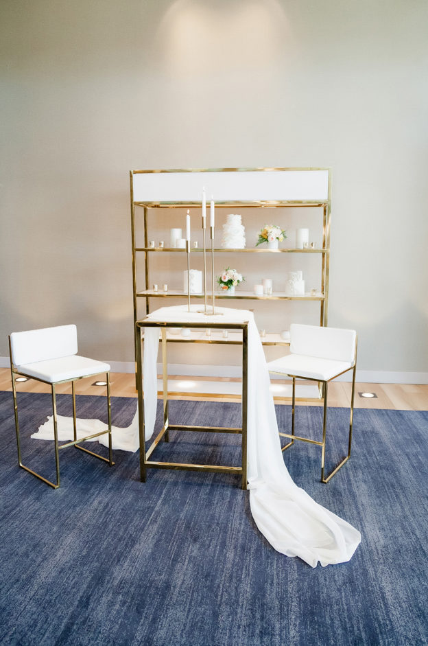 Set design by Ames Haus Design; Set flowers by Ames Haus Design with wholesale flowers from FiftyFlowers.com; Set decor from Blossom Farm Vintage Rentals; Set furniture from Sacramento Event Co.; Set linens from Creative Coverings; Set cake by Batter Up Cakery