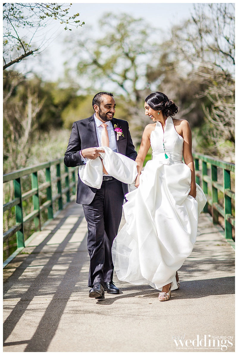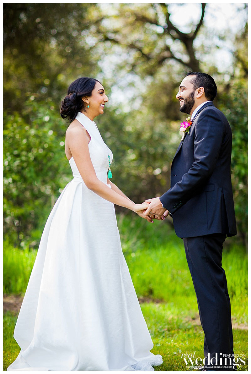 Before Raj proposed, he asked my parents for their blessing. He proposed at Scoma’s in Sausalito. We were at lunch, enjoying the view of San Francisco, and he gave me a scrapbook. The scrapbook contained monthly calendars spanning our relationship. He had entries for each date we went on and each time we were together. There were corresponding photos. It was obvious he put a lot of thought and effort into the scrapbook. He proposed on one knee and it was beautiful. Afterwards, he planned a surprise celebratory dinner with our families. It was very thoughtful.