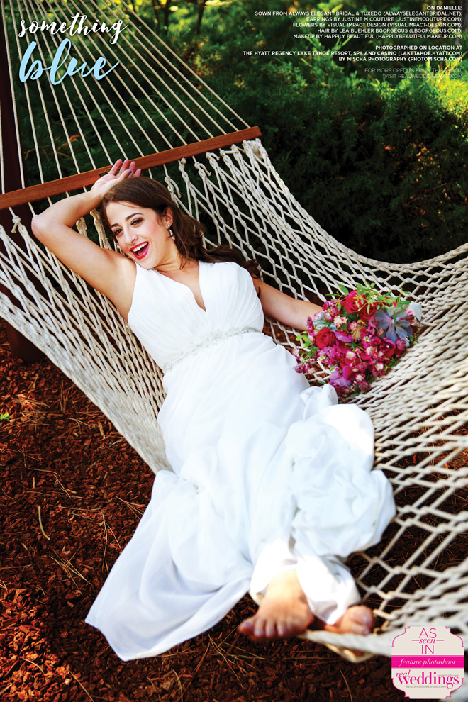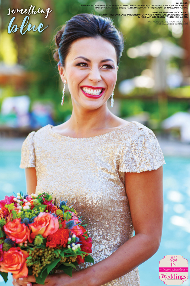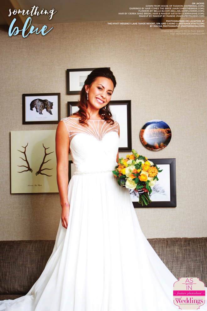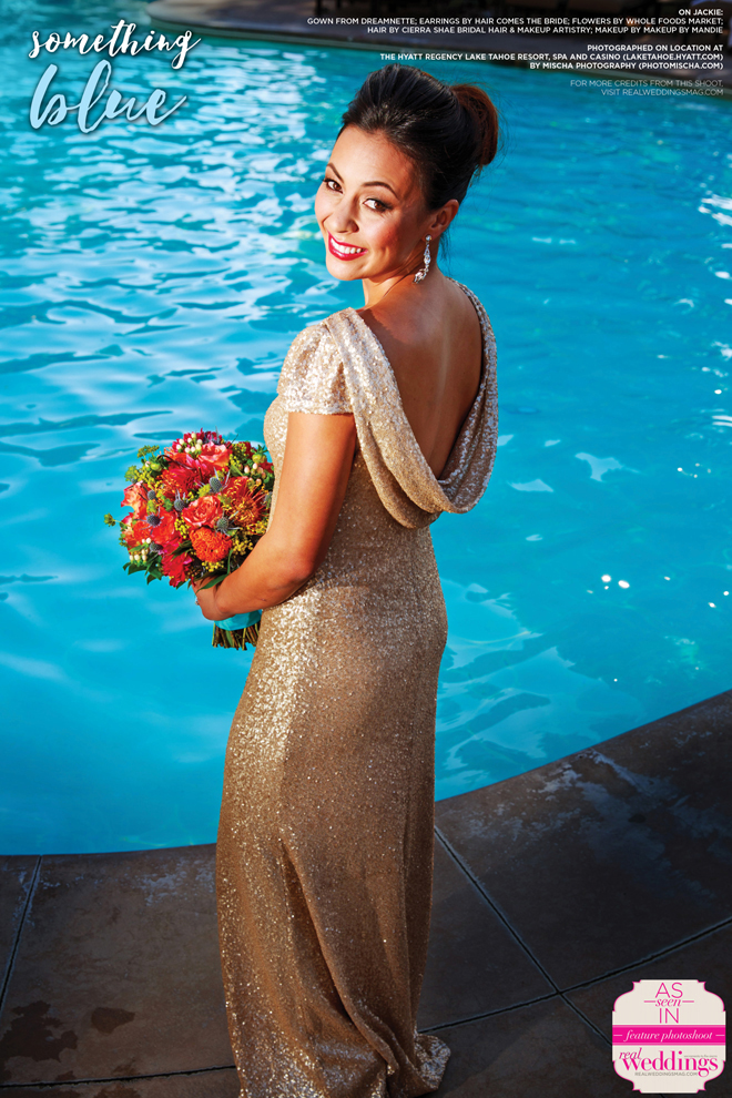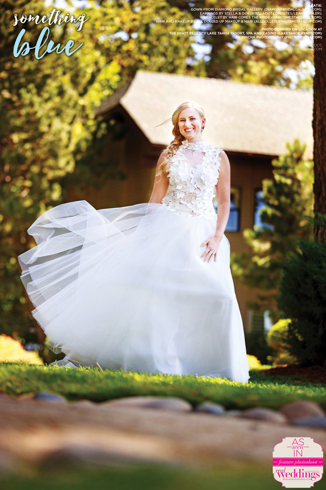 Jackie really appreciated the entire process, especially the application questions. She found that it really forced her to slow down a bit and reflect on this amazing time in her life. The morning she learned she was a top 10 finalist, she was en route to hike Mt. Tallac in Tahoe with Adam and a friend. She says that the excitement gave her the energy to complete the grueling hike. The day of the shoot, Jackie immediately connected with her hair and make-up team. So much so, that they are going to be her beauty team for her own wedding! She was exhausted at the end of the shoot, but was lucky enough to be joined by her fiancé and mom for a weekend of relaxation in beautiful Lake Tahoe. Now that is the way to wrap up a photo shoot!