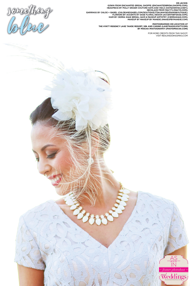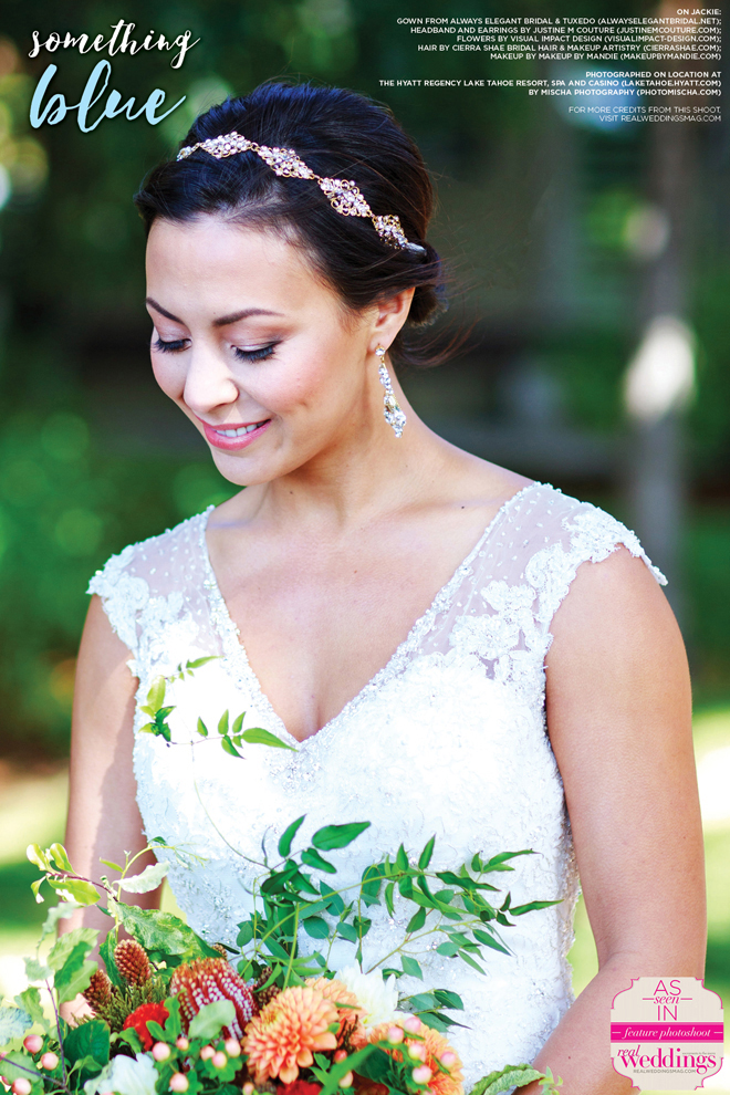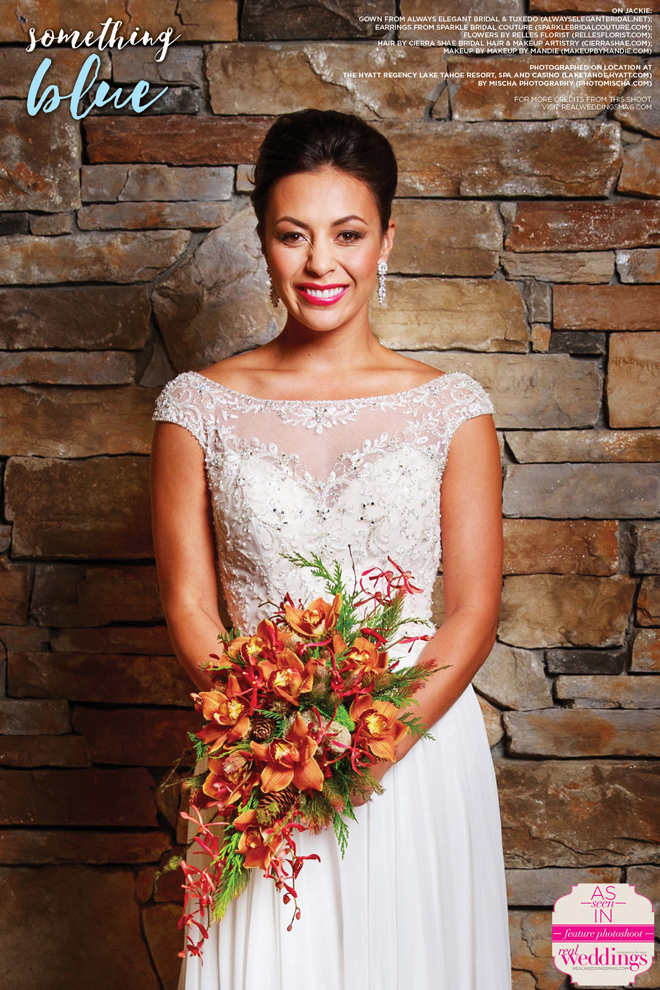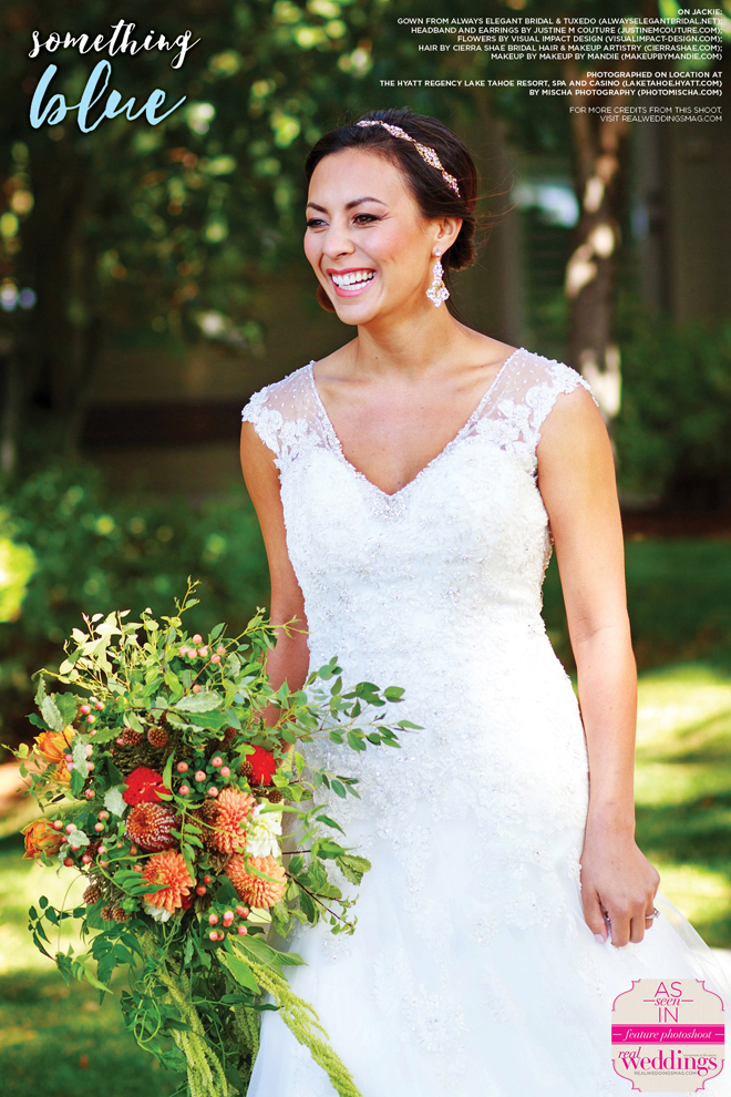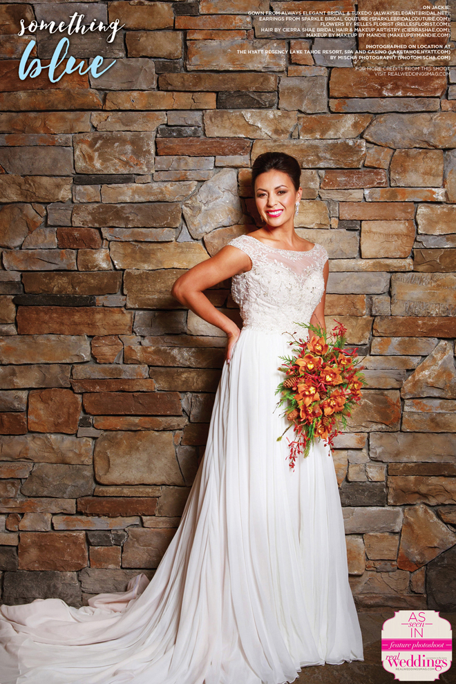As seen in the “Something Blue” cover model contest finalist photo shoot in the Winter/Spring 2016 issue Real Weddings Magazine, www.realweddingsmag.com