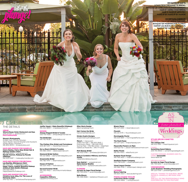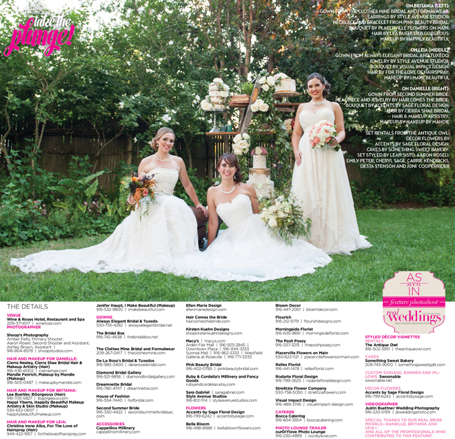 Special thanks to our real bride models, Danielle, Britania and Leia, and to all of the professionals who contributed to this feature!