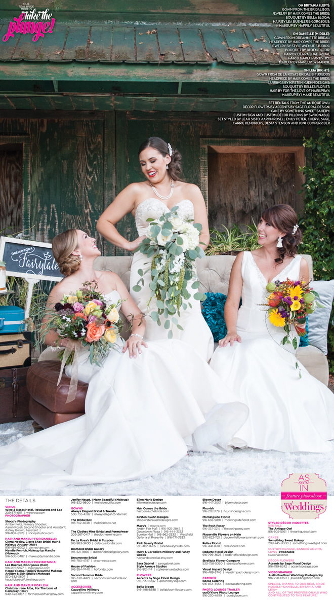 When Real Weddings Magazine was started in 2007, we held our first ever Cover Model Contest at Wine & Roses Hotel, Restaurant and Spa, so what better way to commemorate 10 great years back at where we started! In addition to the great venue, we were lucky enough to work with some of the most talented vendors in our area – from hair & makeup and dresses to flowers, cakes and decor rentals, we had everything we needed to produce this fun photo shoot.