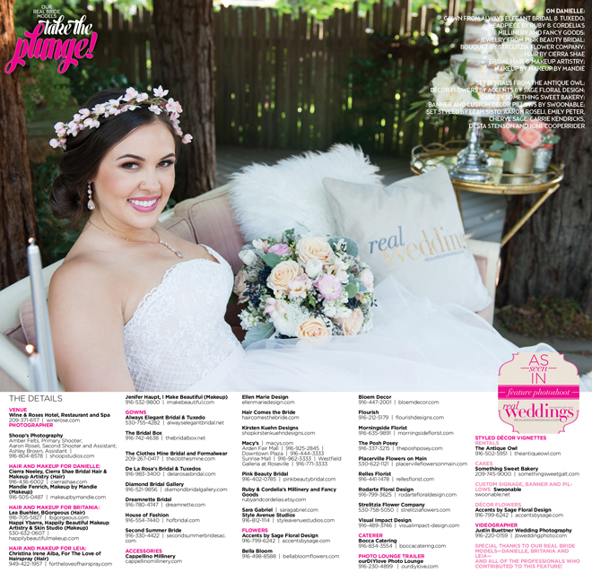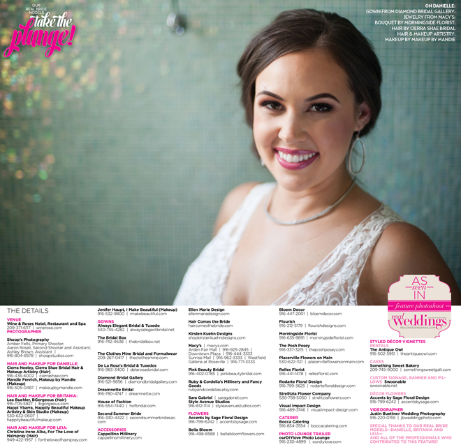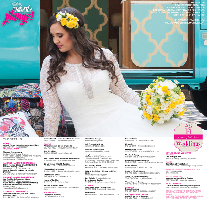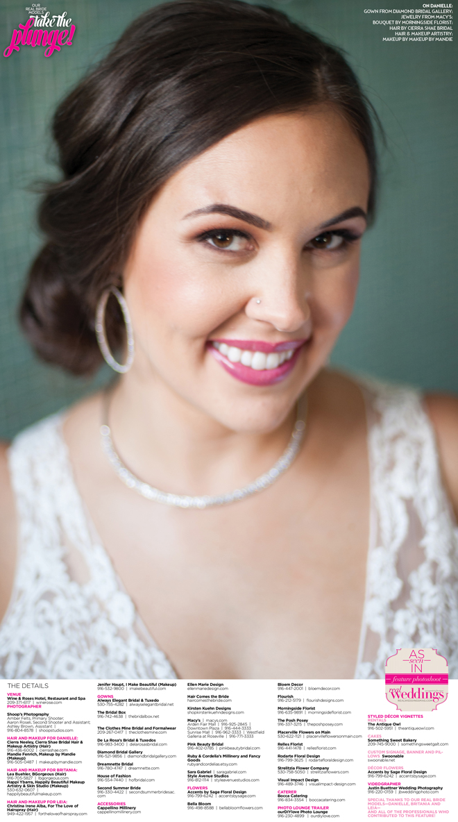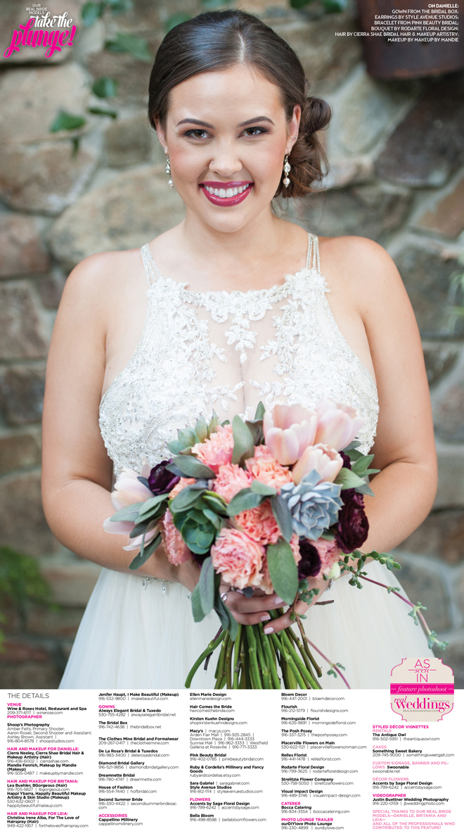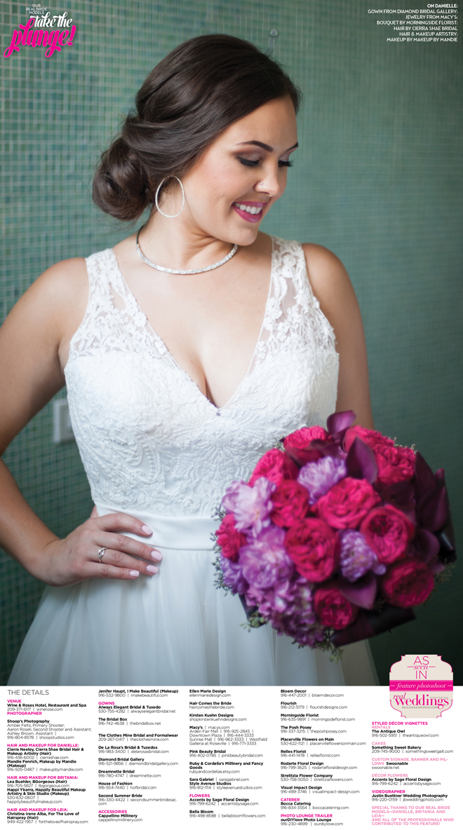 Special thanks to our real bride models, Danielle, Britania and Leia, and to all of the professionals who contributed to this feature!