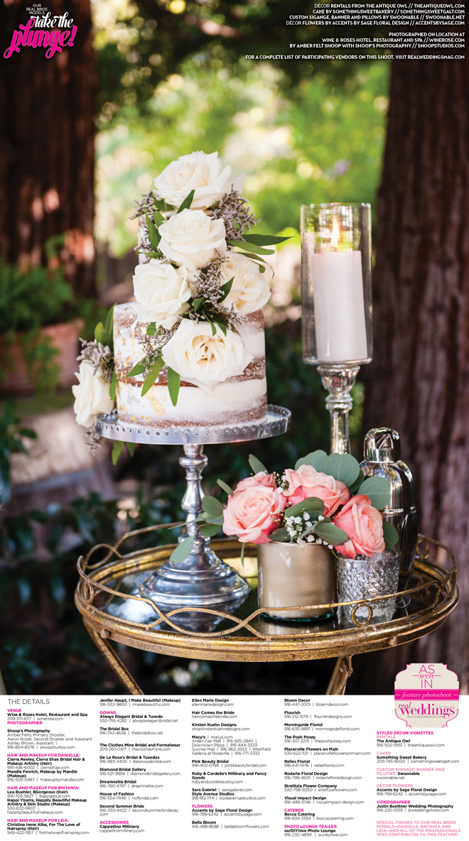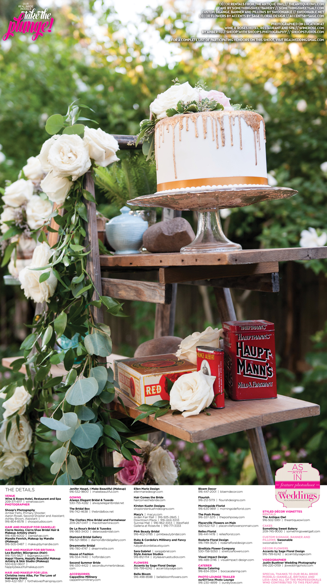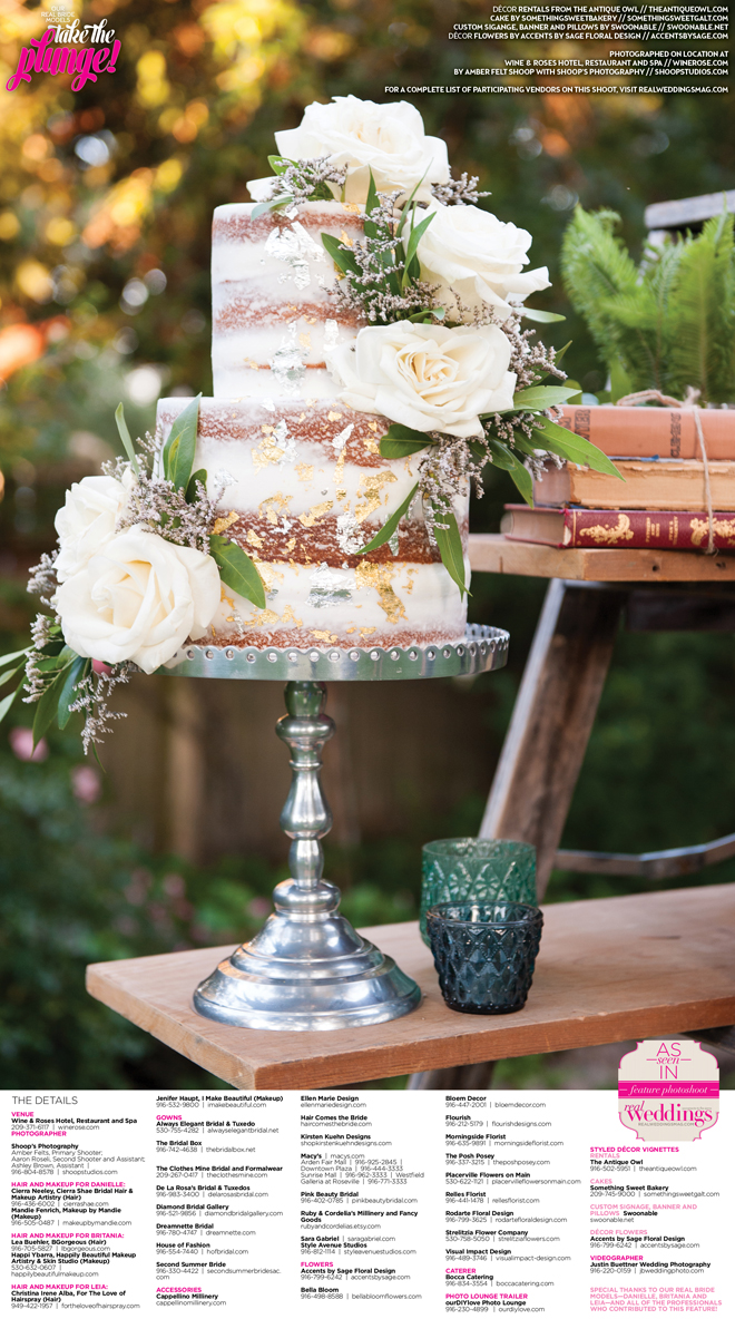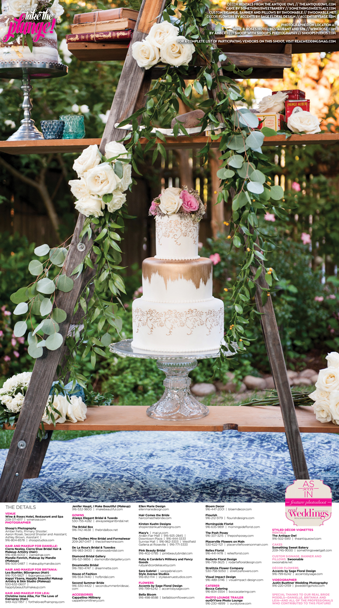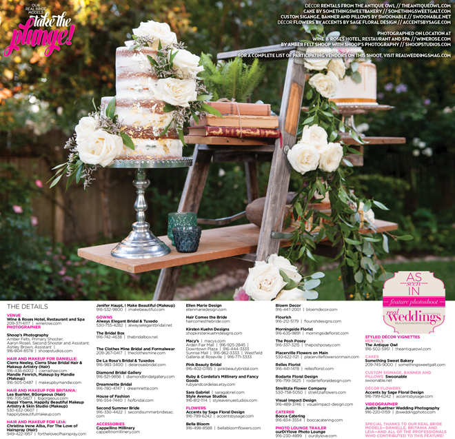 Who doesn’t love decorating for a wedding?! Thanks to The Antique Owl, Accents by Sage Floral Design, Swoonable and Something Sweet Bakery (along with members of our amazing team) we were able to create gorgeous sets for our Take the Plunge Cover Model Contest Finalist Feature! We adore each detail and hope it can inspire you, our lovely readers, in your own wedding planning.