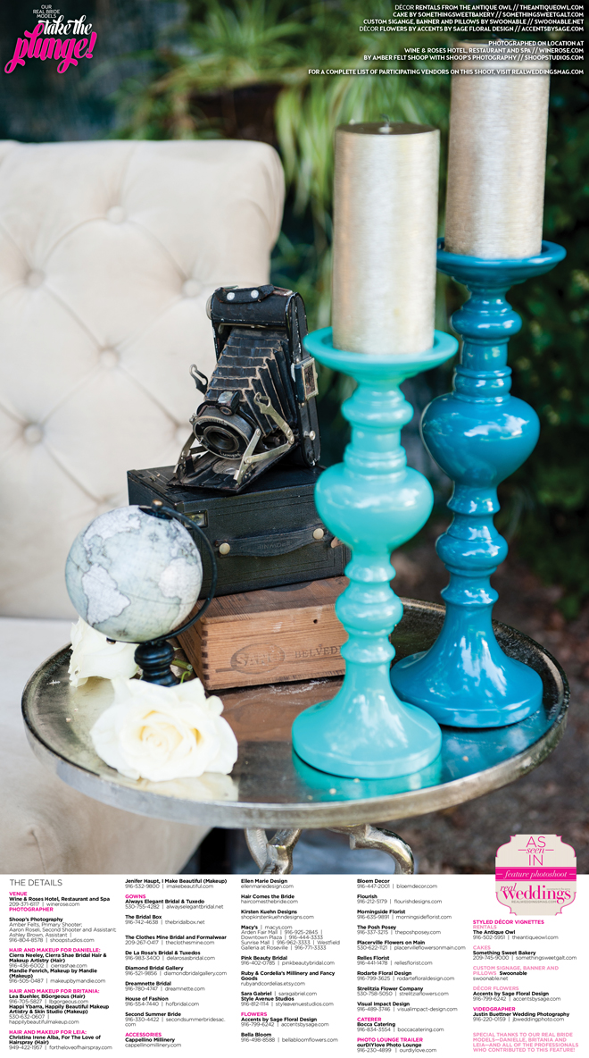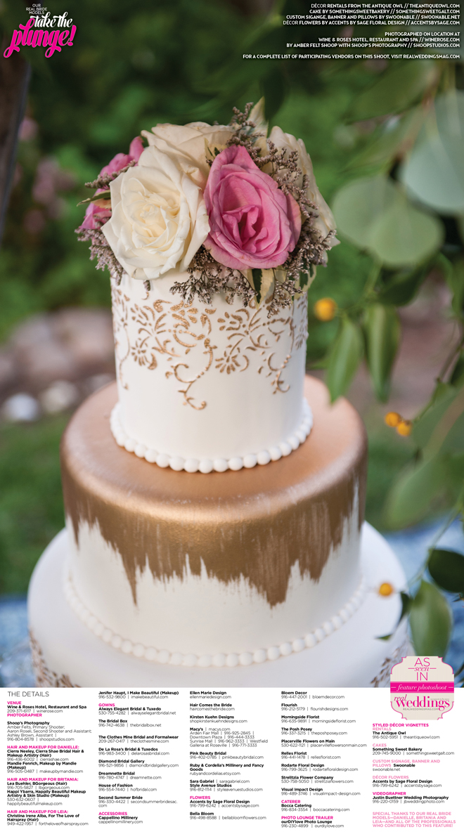 Special thanks to our real bride models, Danielle, Britania and Leia, and to all of the professionals who contributed to this feature!