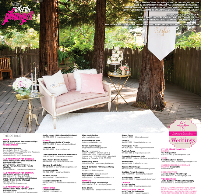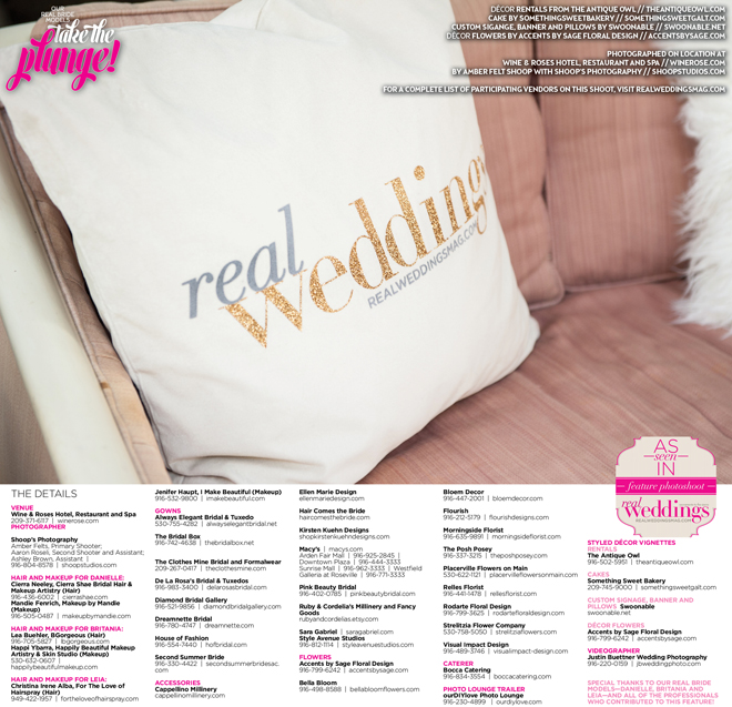 And, of course, thank you to all of the wedding professionals who contributed to our cover model finalist feature: