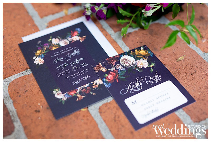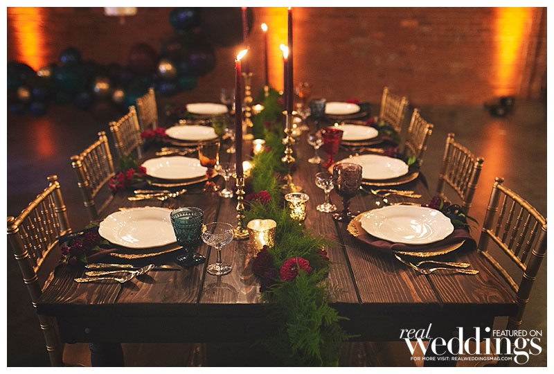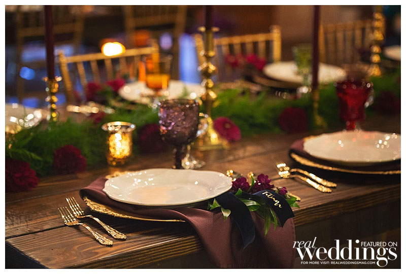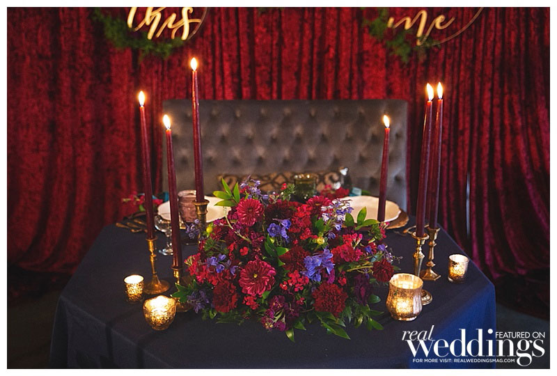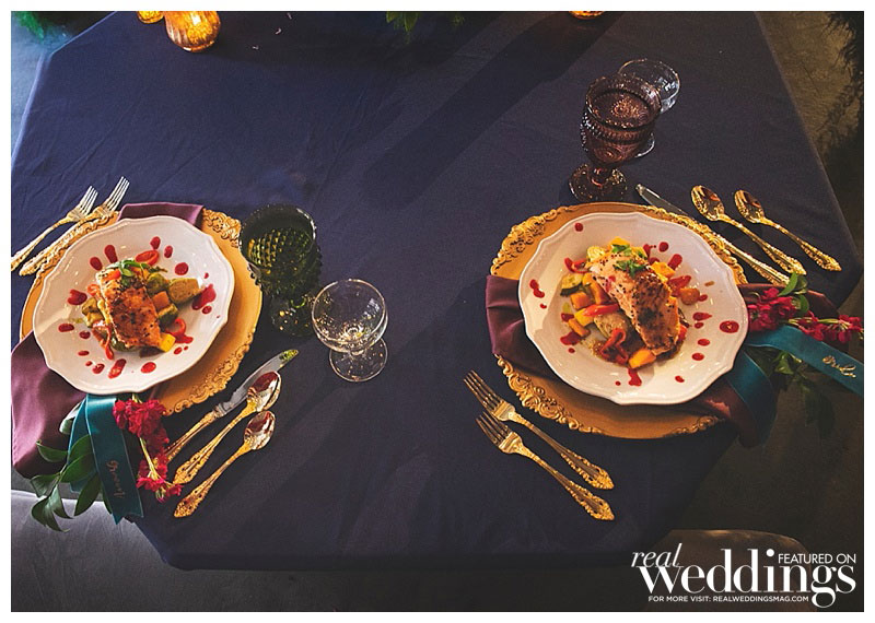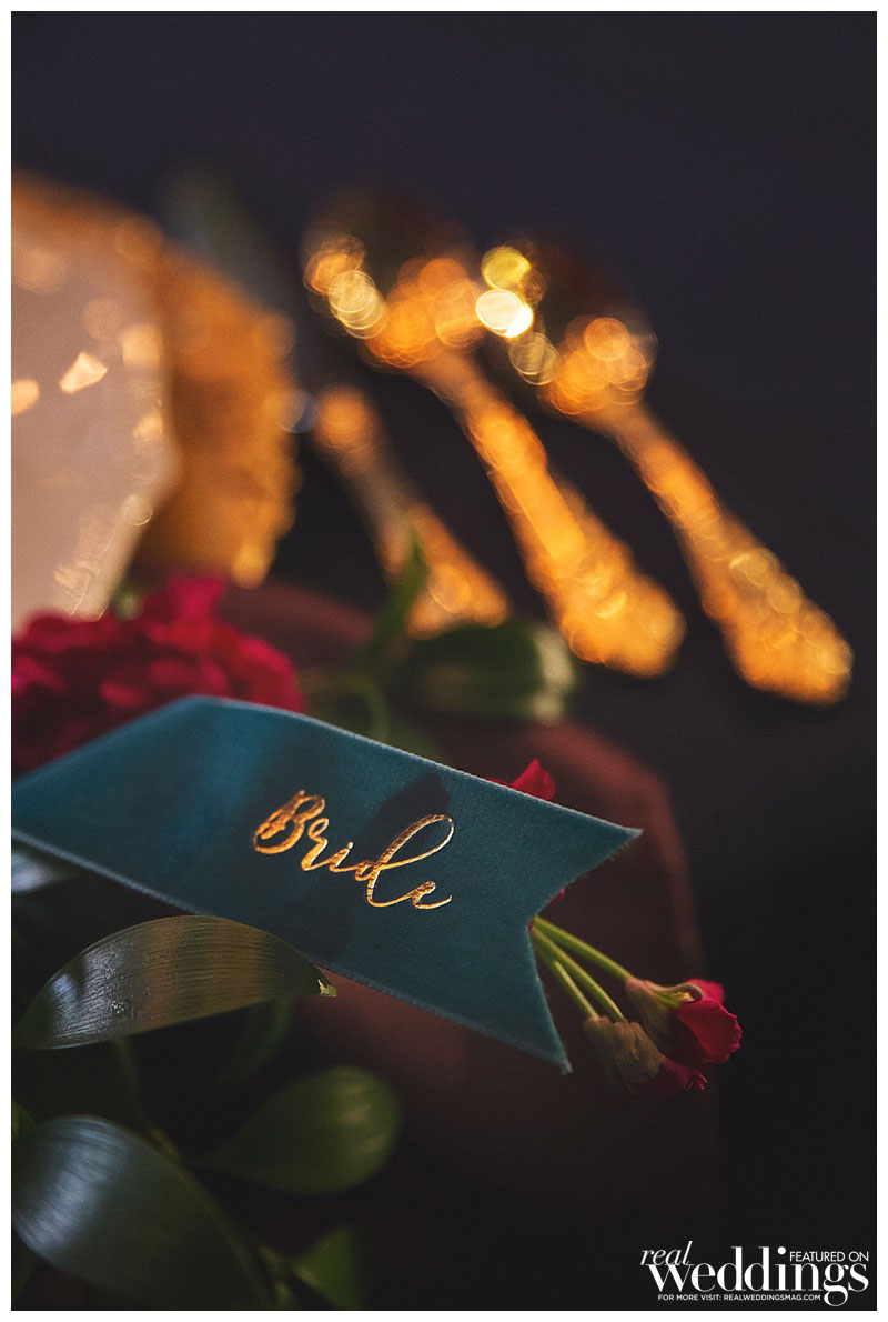 Special thanks to our real couple models Laura & Steve, our groomsmaid Le-Quyen, our ringmaster Chef Russ Landers from The Hidden Table and Moose the bulldog, and all of the professionals who contributed to this feature!