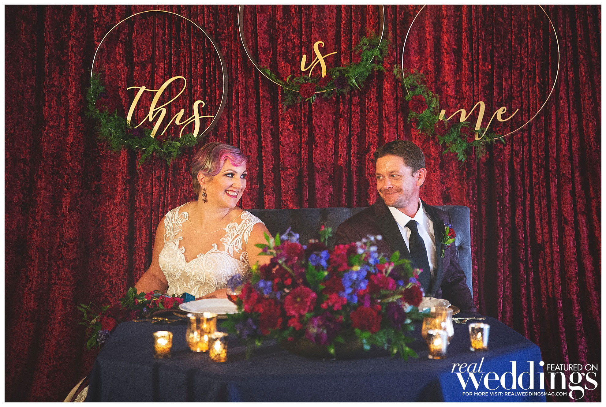 While the style of the shoot was not at all similar to our wedding, the concept of “This Is Me” very much was. When planning our wedding I wanted to make sure that it directly reflected us individually and us as a couple, so it was “This Is Me,” “This Is Him,” and “This Is Us.” I had a vision, and dove in headfirst with it. Our families know how particular I am, and trusted that whatever I did would look great, so they were behind us 100% with my décor and style ideas. I certainly did it my way, but overall, our wedding day was a direct reflection of both of us.