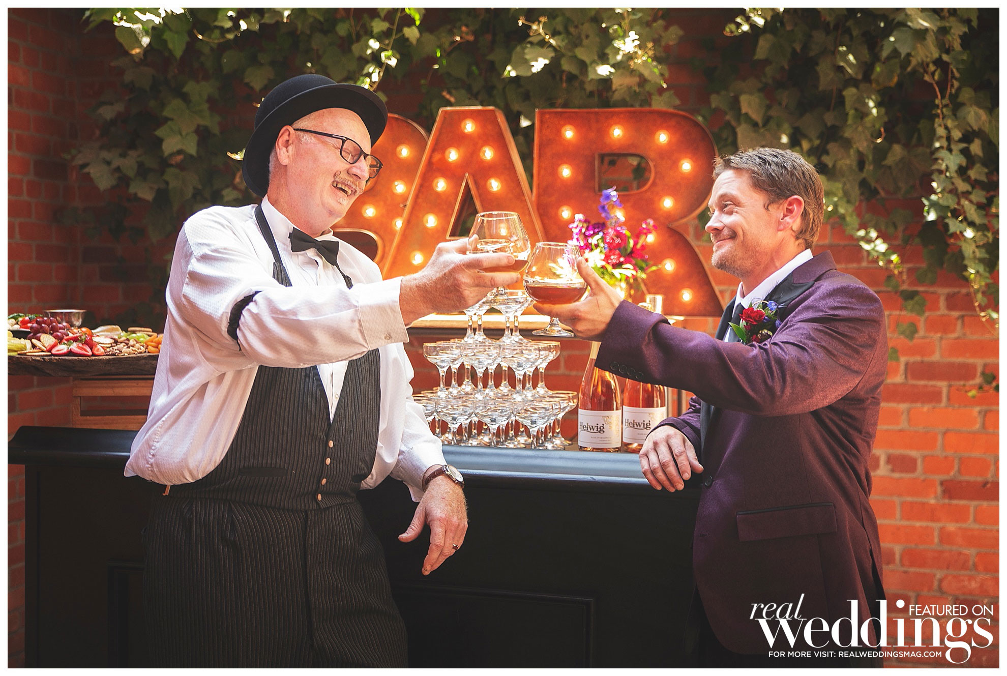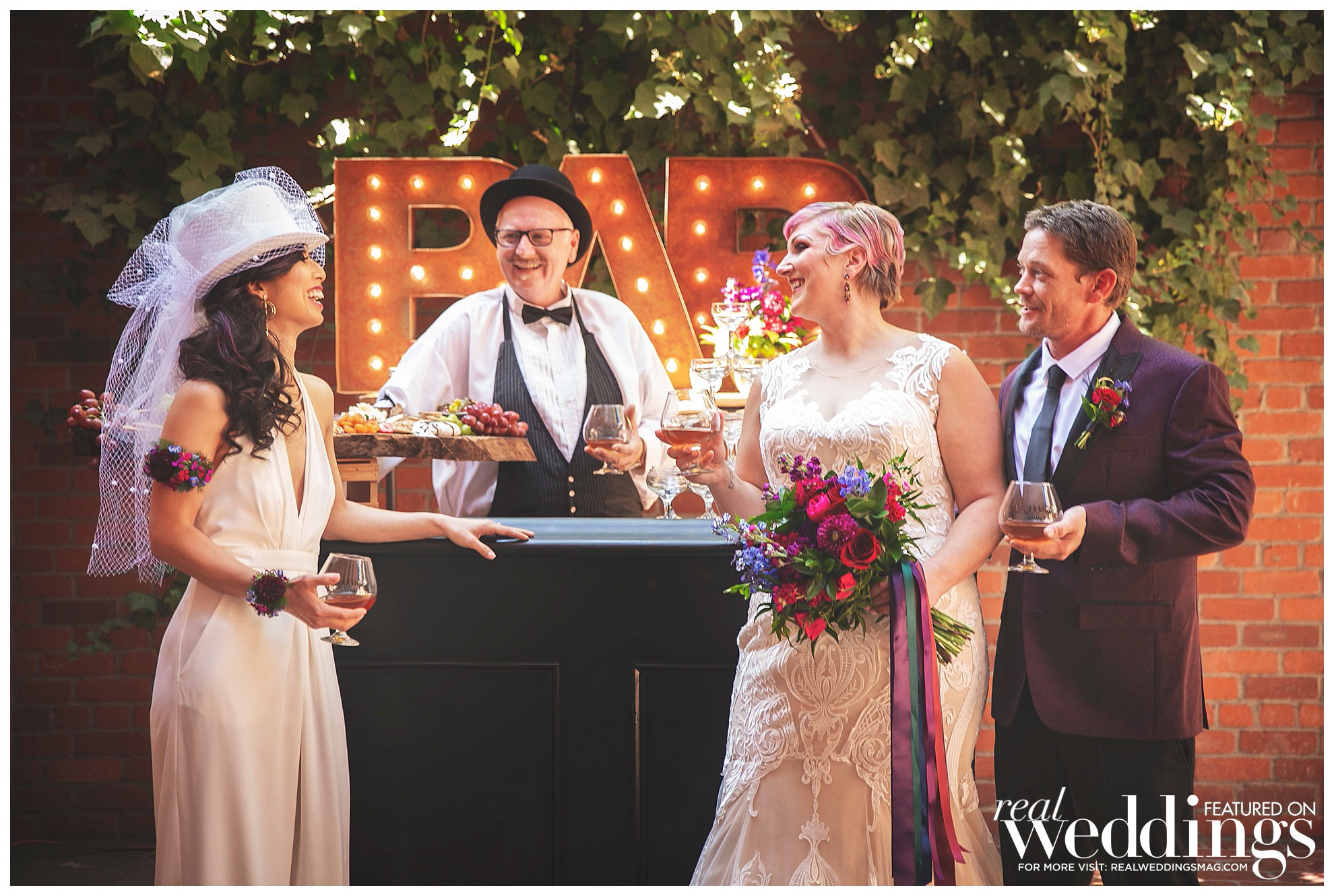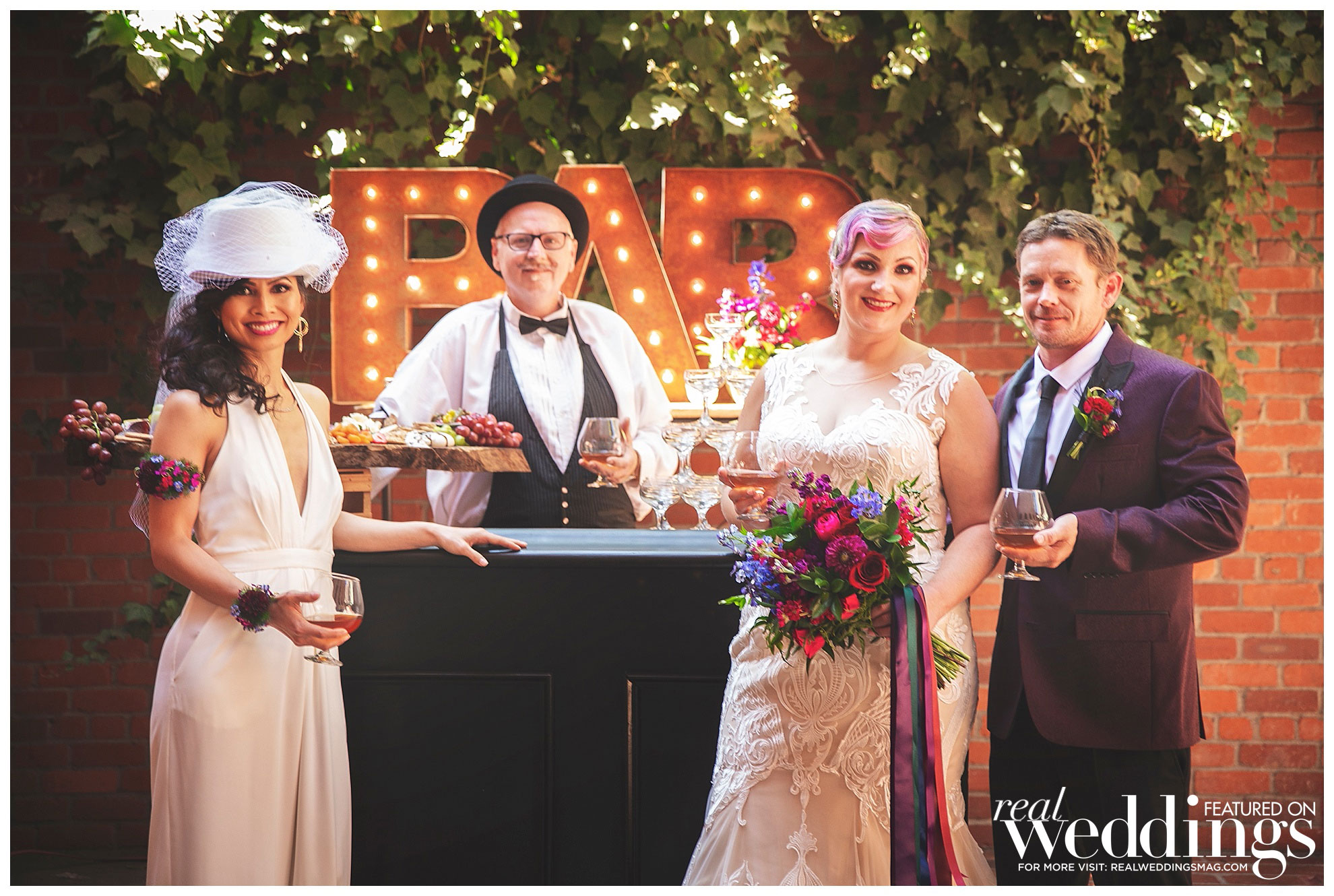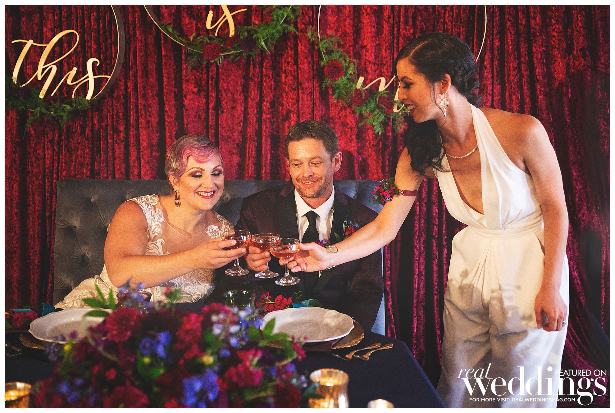 Special thanks to our real couple models Laura & Steve, our groomsmaid Le-Quyen, our ringmaster Chef Russ Landers from The Hidden Table and Moose the bulldog, and all of the professionals who contributed to this feature!